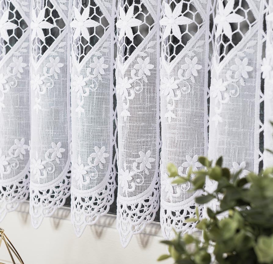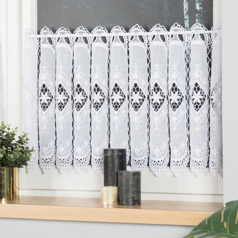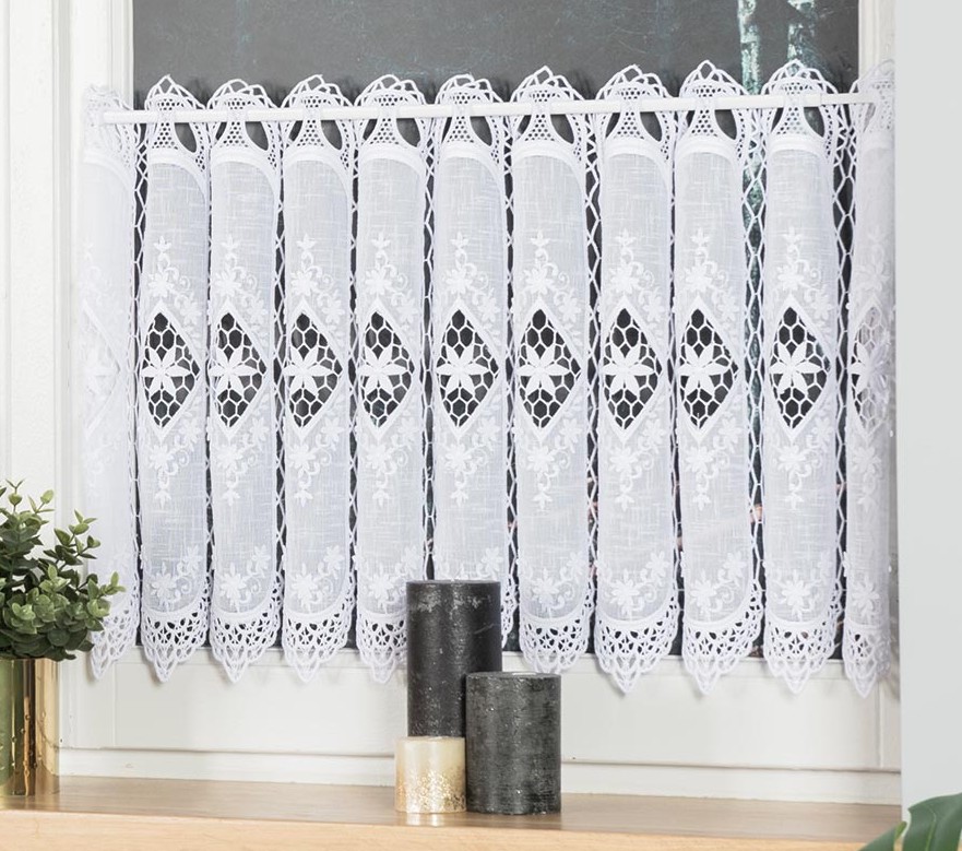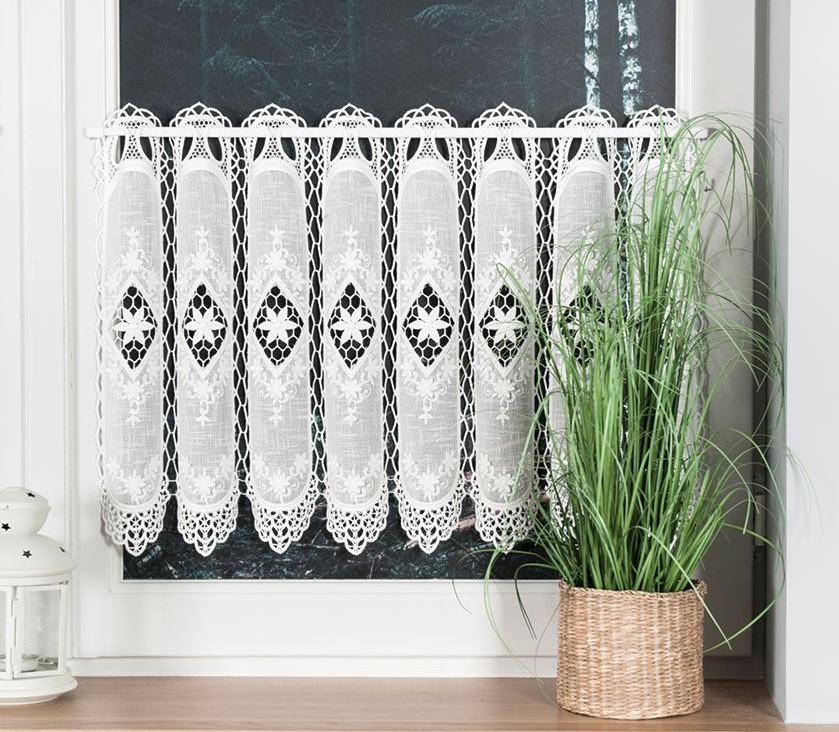 Zazdrostka kuchenna z ażurem doskonale sprawdzi się jako ozdoba okna w kuchni. Delikatna koroneczka z chwostem wprowadzi do kuchni nutę romantyzmu i przytulności, tworząc klimat.