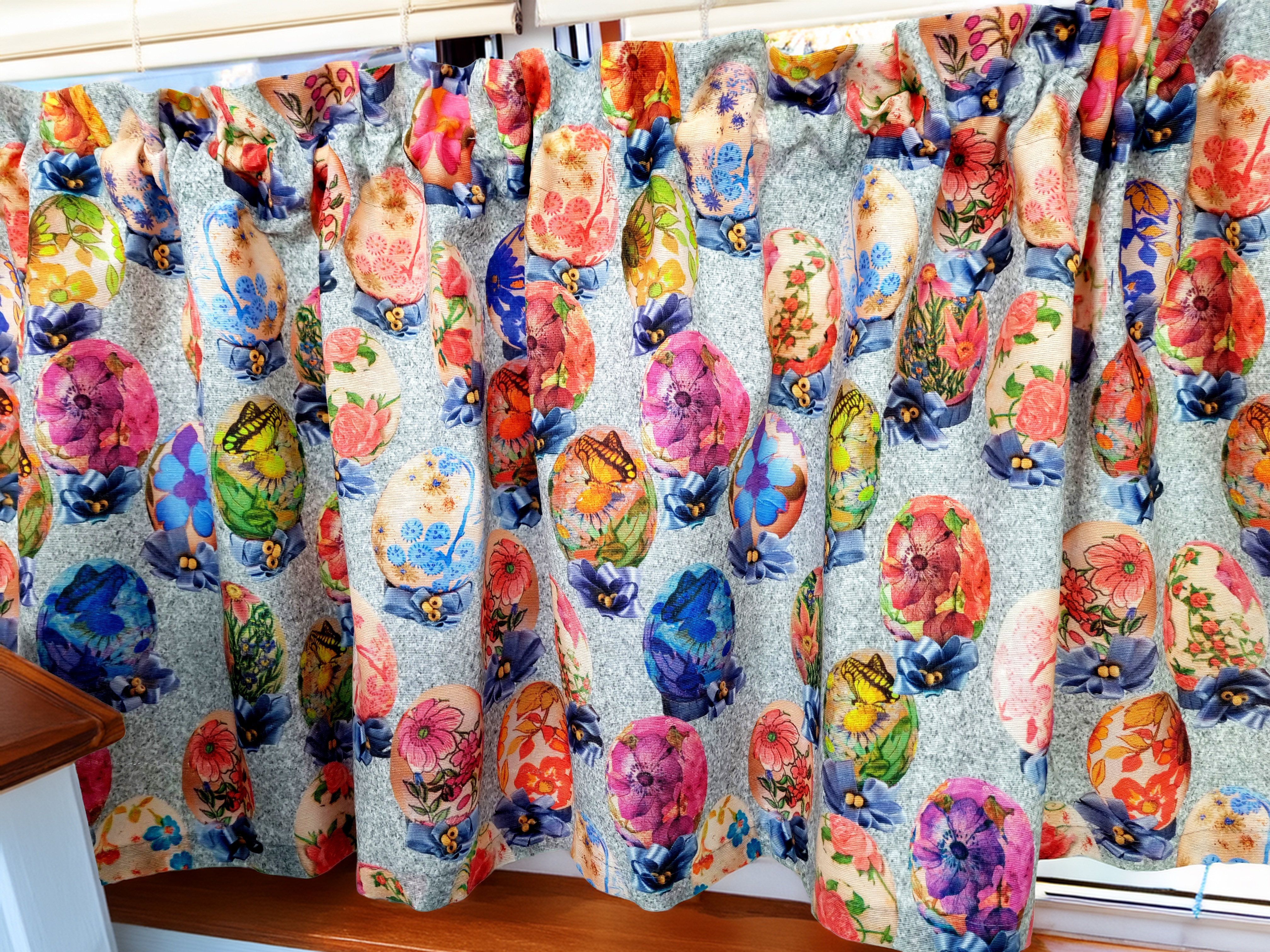 Szerokośc zazdrostki podana na prosto przed zmarszczeniem. Na marszczenie dodajesz od 50% do 100% szerokości okna/patyczka (przykład; okno ma 50cm szerokości - zamawiasz od 70cm do 100cm zazdrostki).