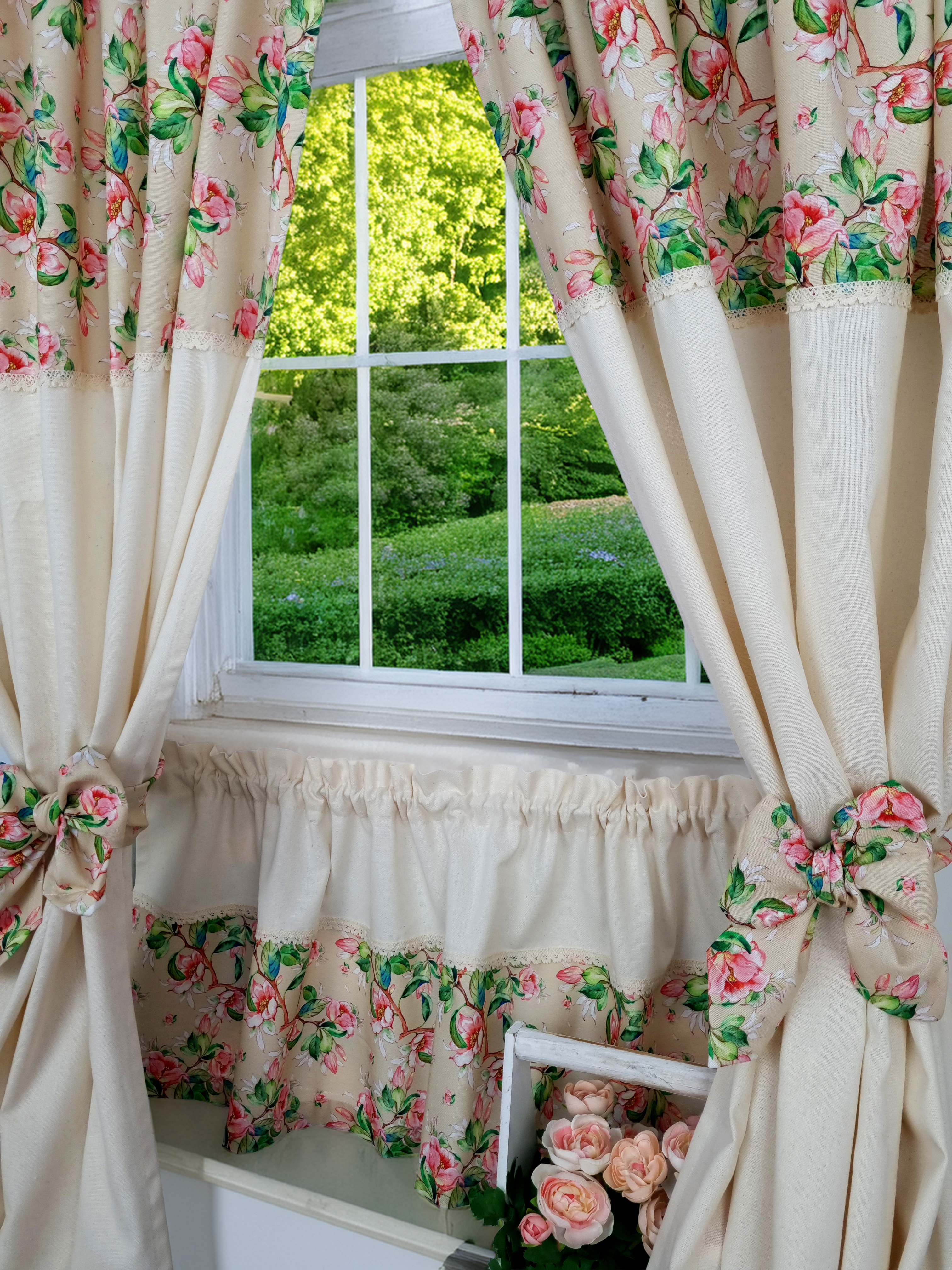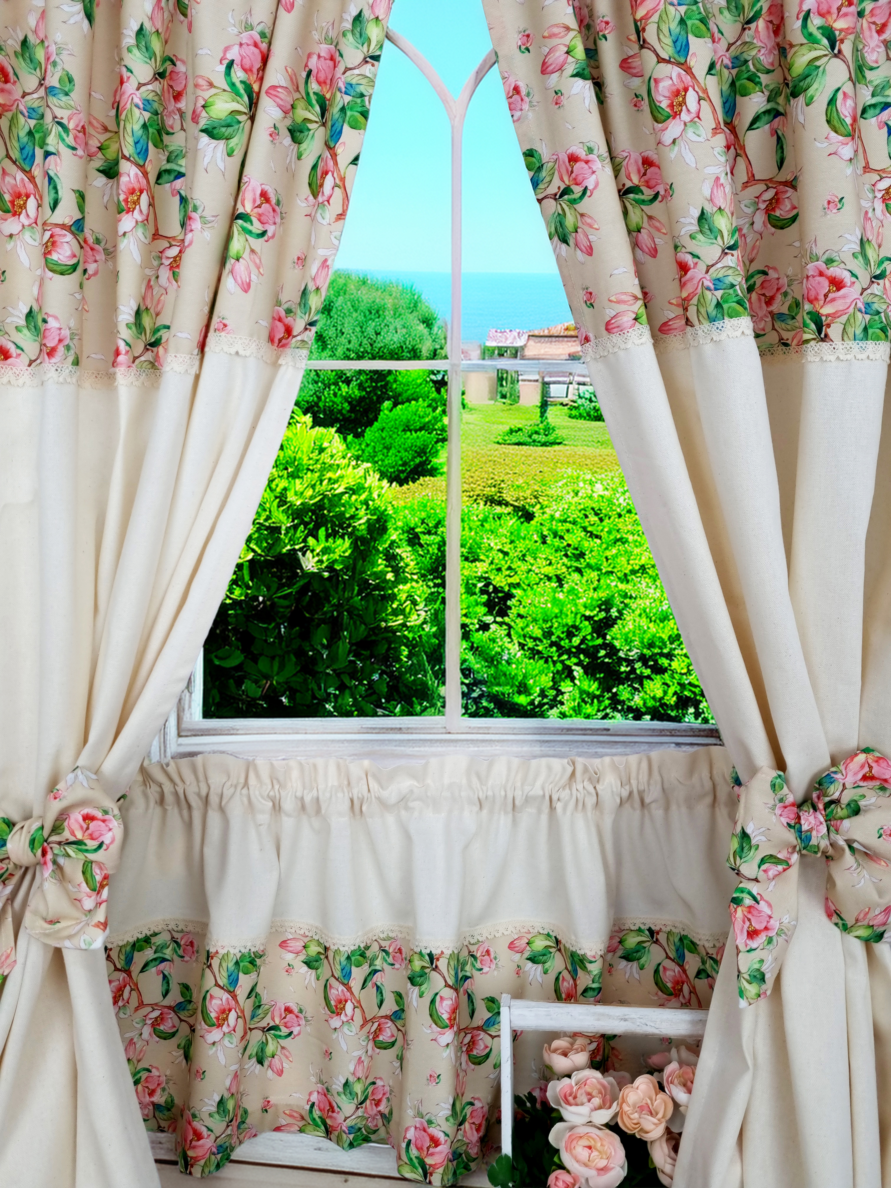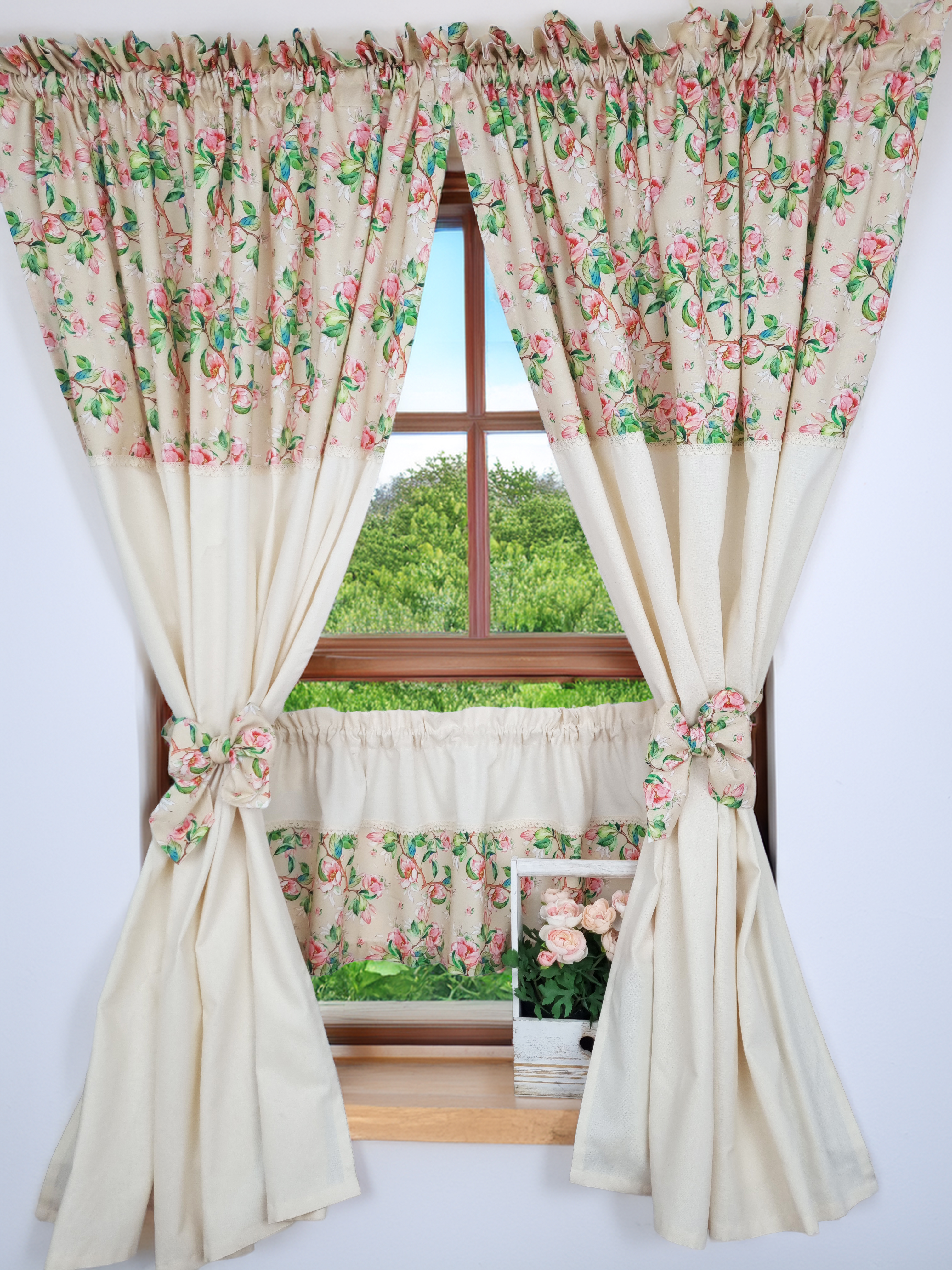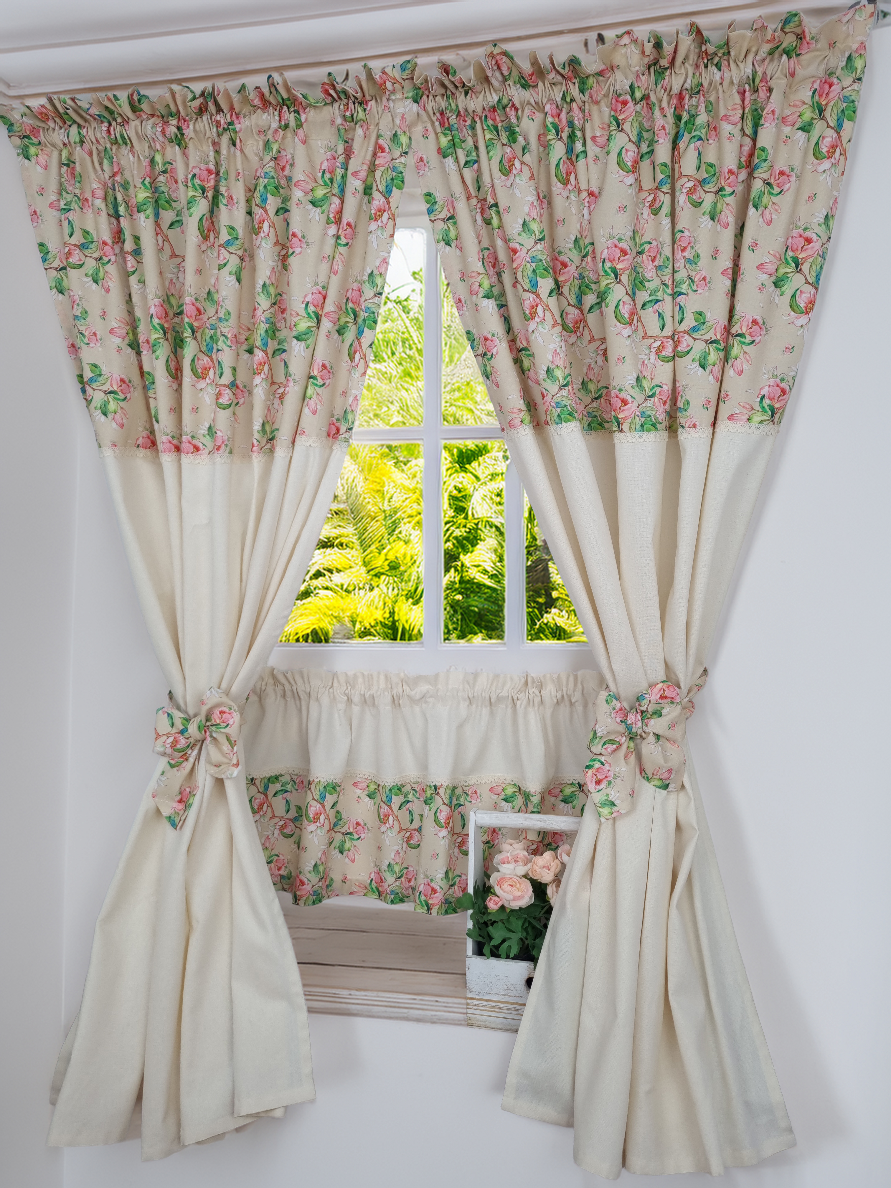 Zakostyl zasłony + zazdrostka jabłonie ecru shabby