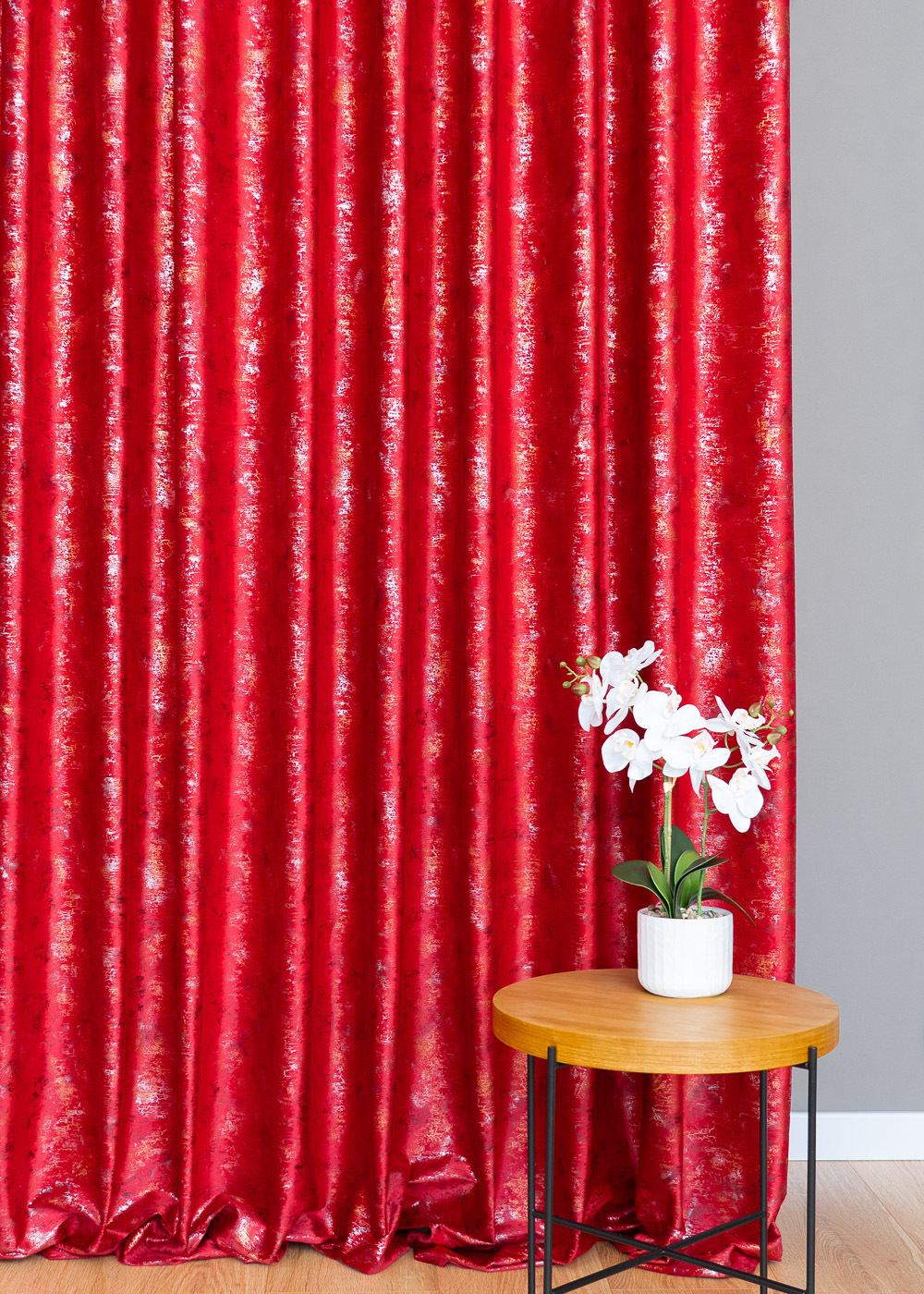 ZASŁONA VELVET CZERWONY GLAMOUR PRZECIERANE ZŁOTO SREBRO
