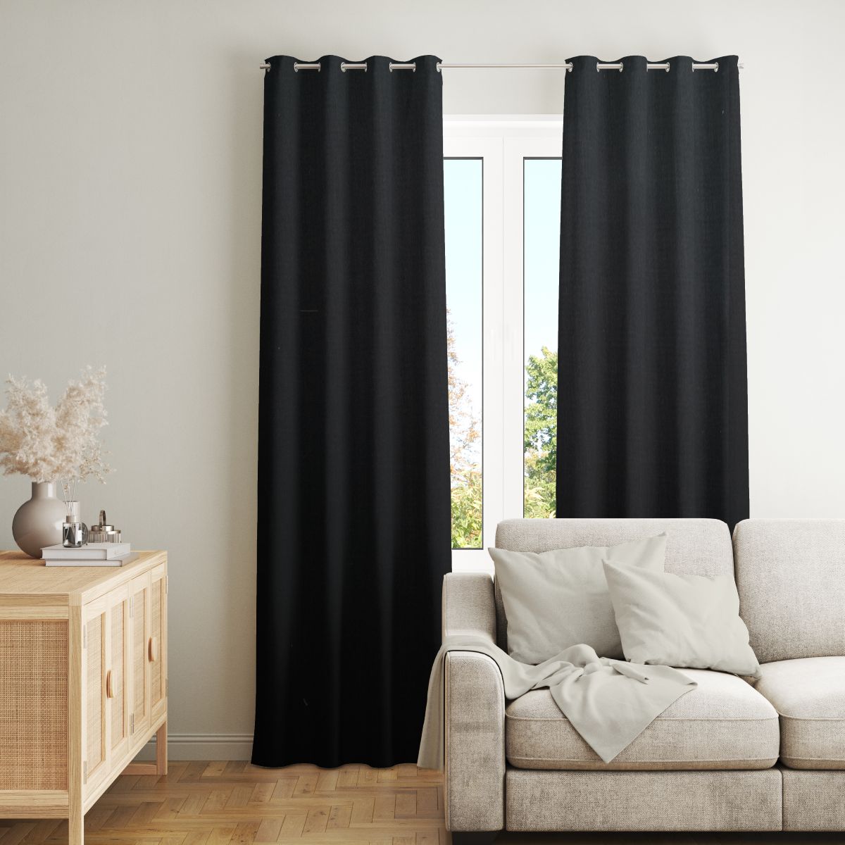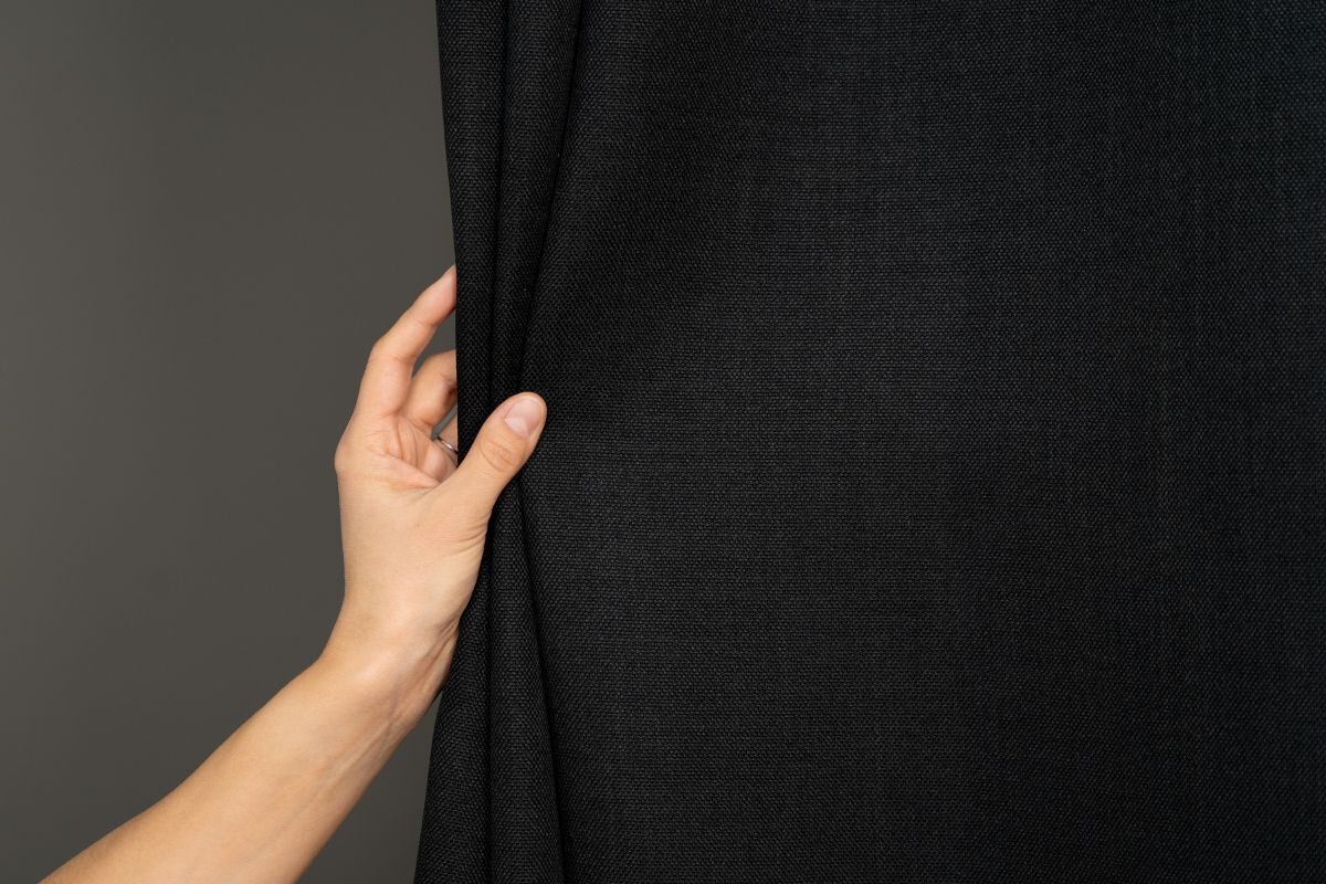Zasłona z tkaniny zaciemniającej o efektownej strukturze lnu. Tkanina bardzo fajnie się układa.