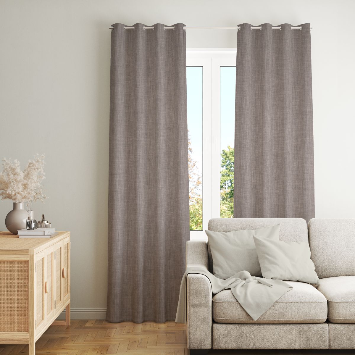 Zasłona z tkaniny zaciemniającej o efektownej strukturze lnu. Tkanina bardzo fajnie się układa.