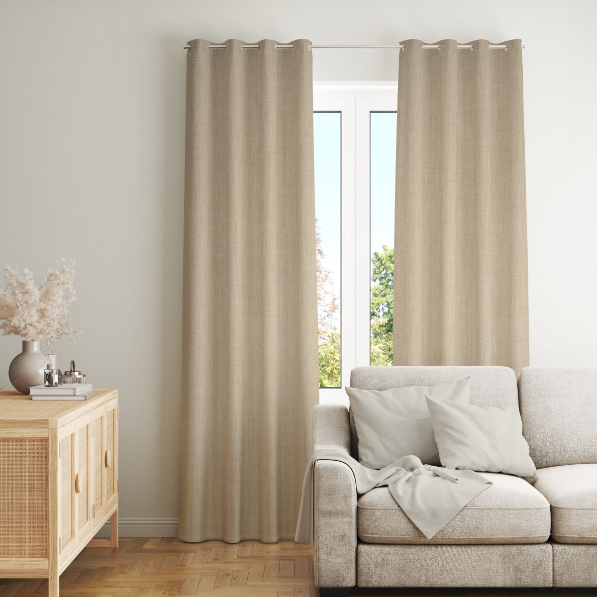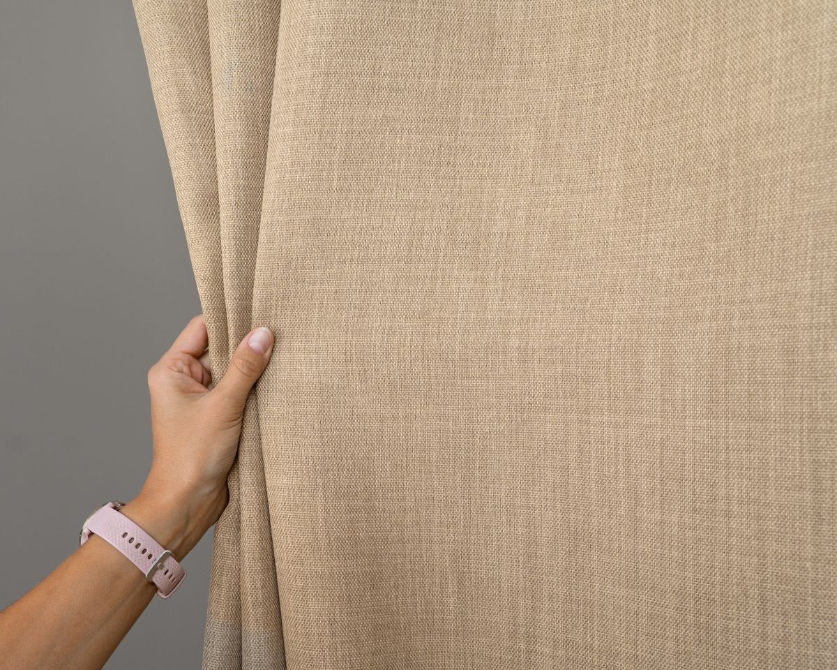 Zasłona z tkaniny zaciemniającej o efektownej strukturze lnu. Tkanina bardzo fajnie się układa.