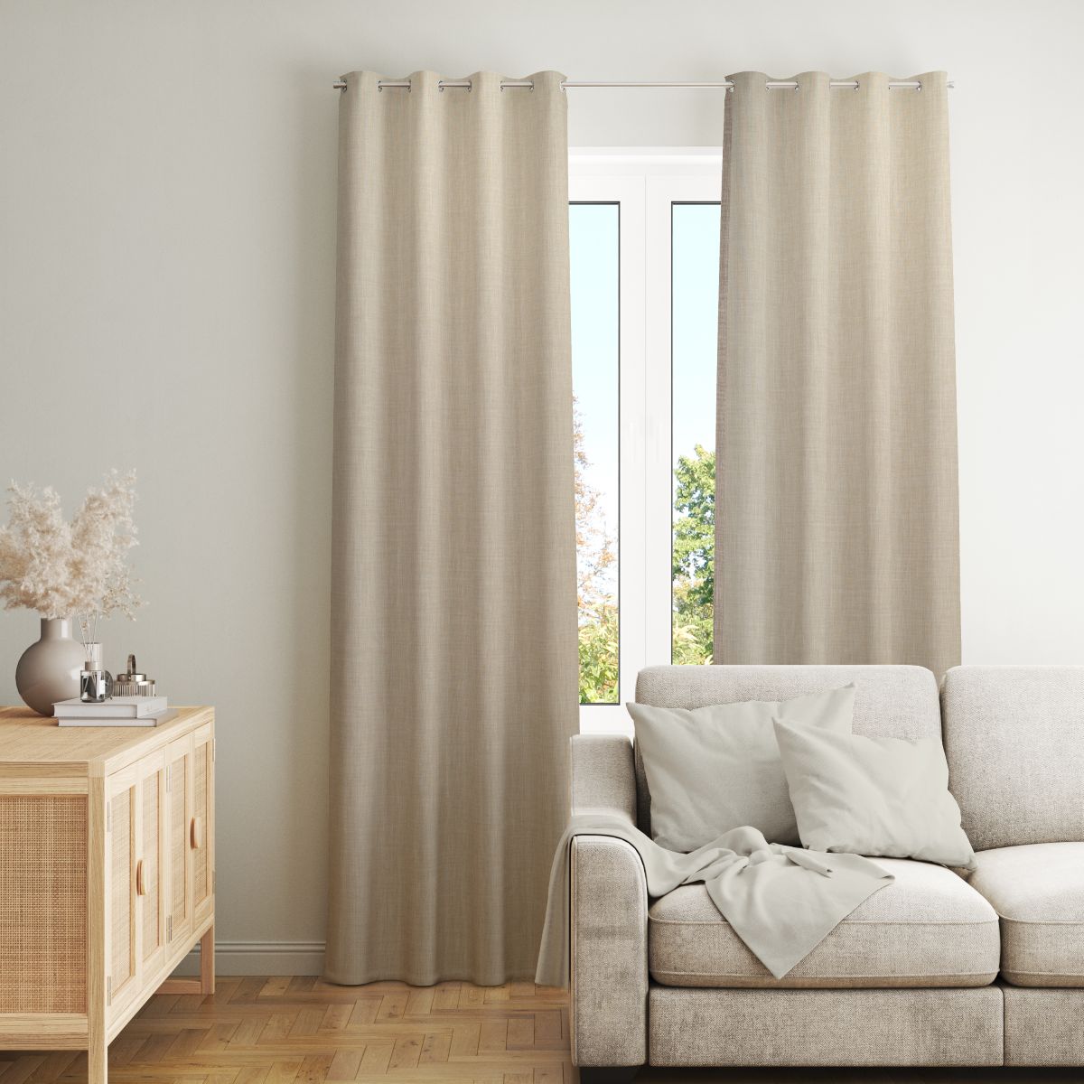 ZASŁONA O STRUKTURZE LNU ZACIEMNIAJĄCA BEŻOWY