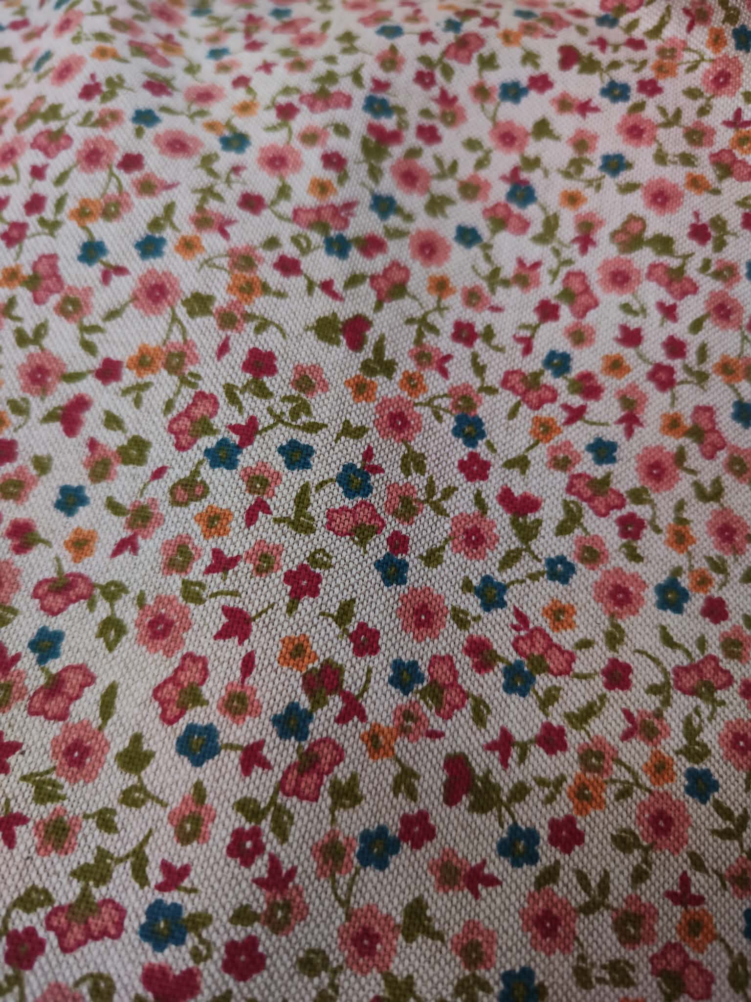 Prasowanie: Tkaninę prasujemy po lewej stronie materiału z podłożonym ręcznikiem, lekko rozgrzanym żelazkiem z użyciem pary.