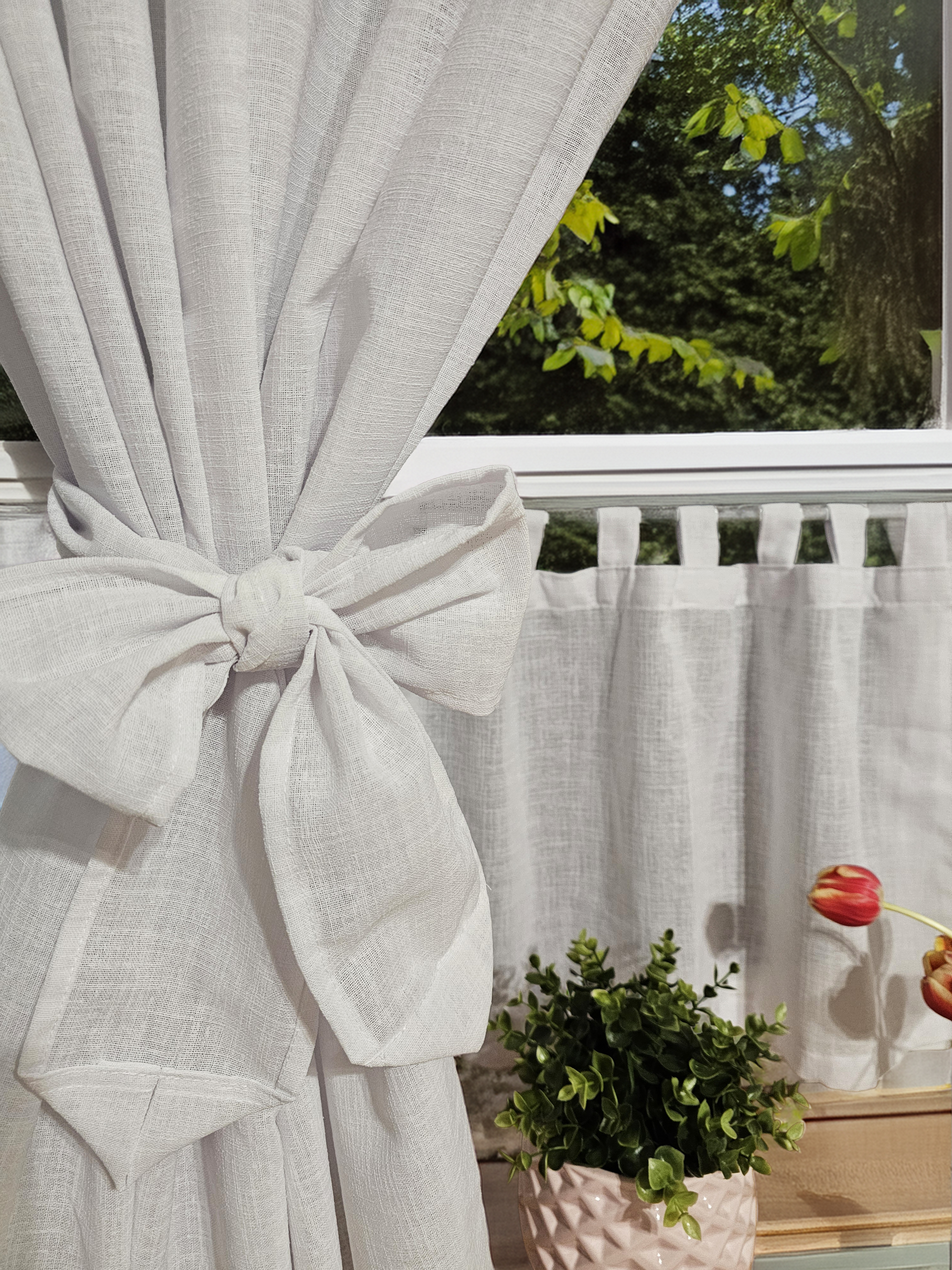 Zakostyl zasłony + zazdrostka białe splot len szelki