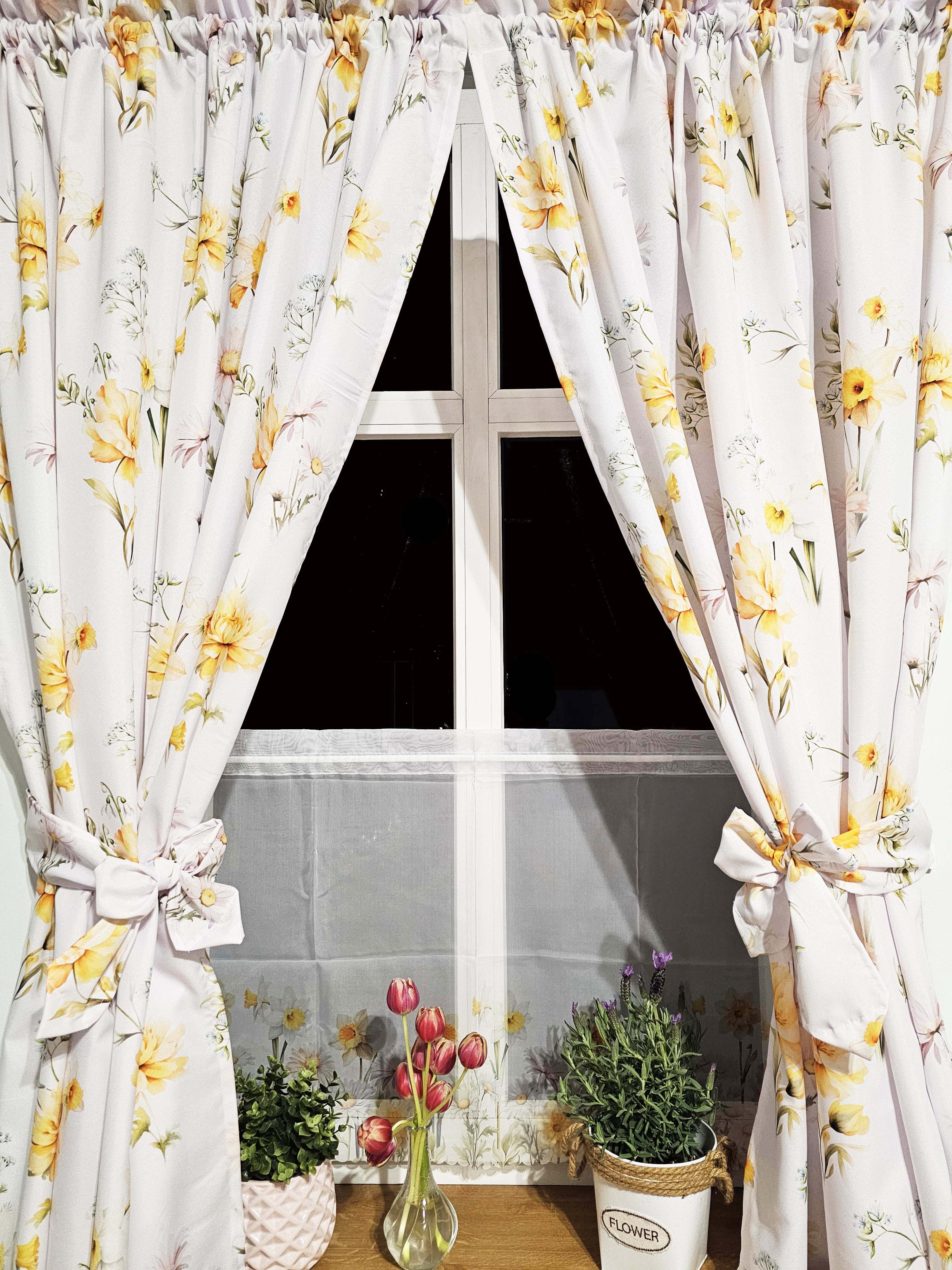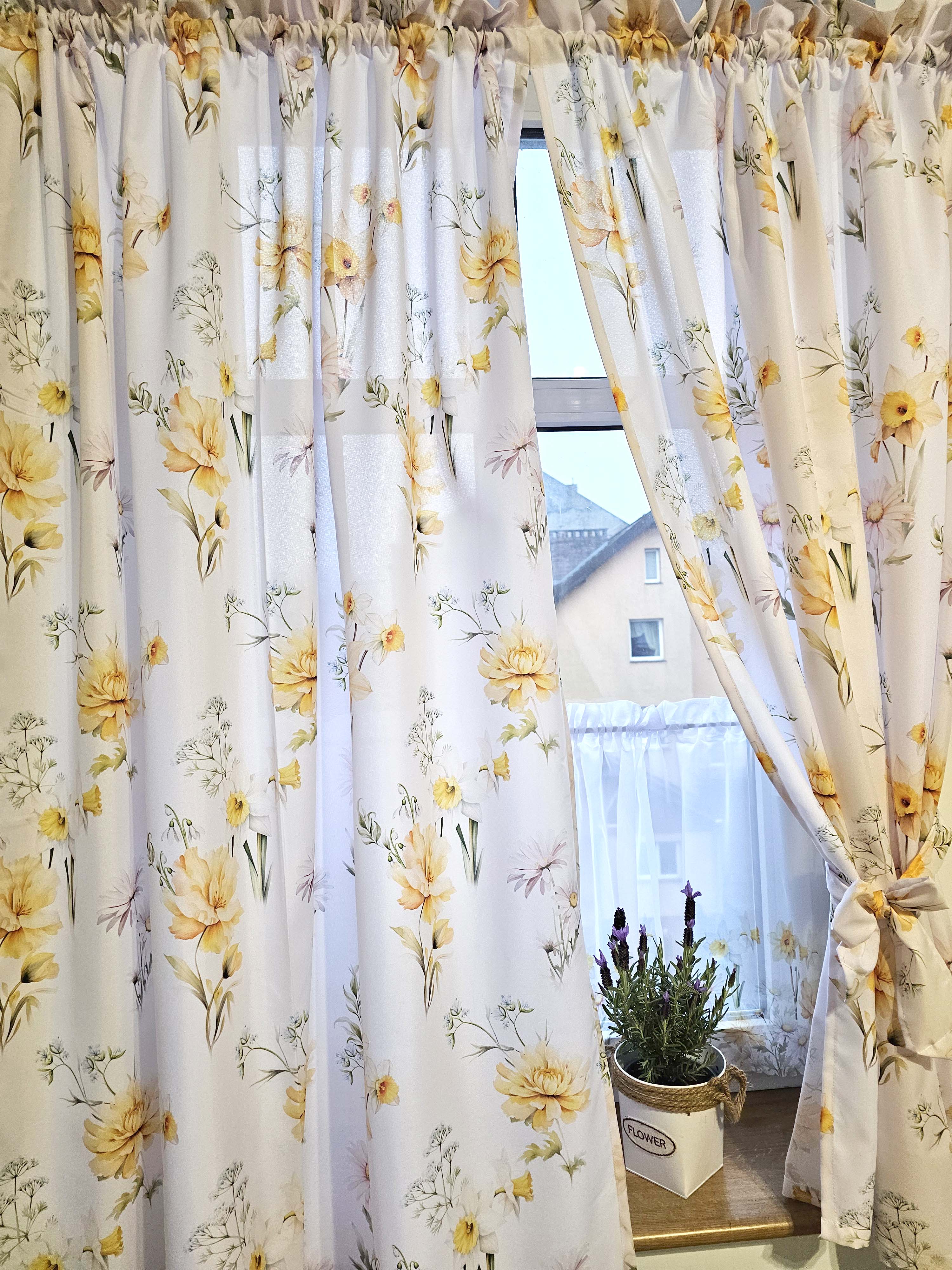 W cenie dwie sztuki zasłonek plus zazdrostka. Jest możliwość zakupienia do kompletu obrusów, poszewek.
