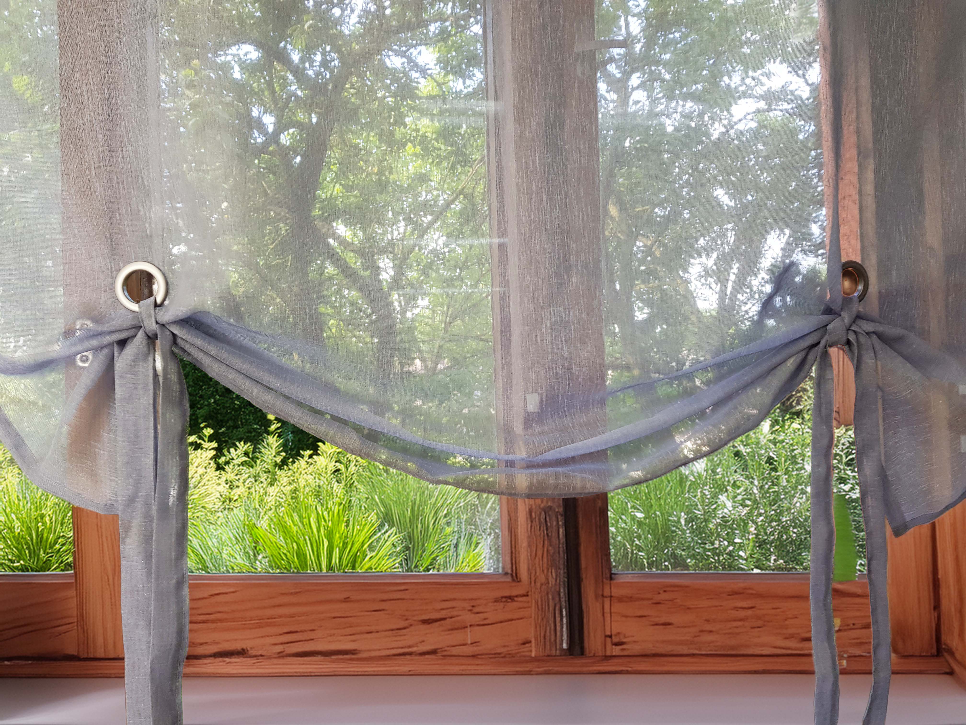 Roletę tubkę podwija się do oczek (przelotek) i podwiązuje paskami.