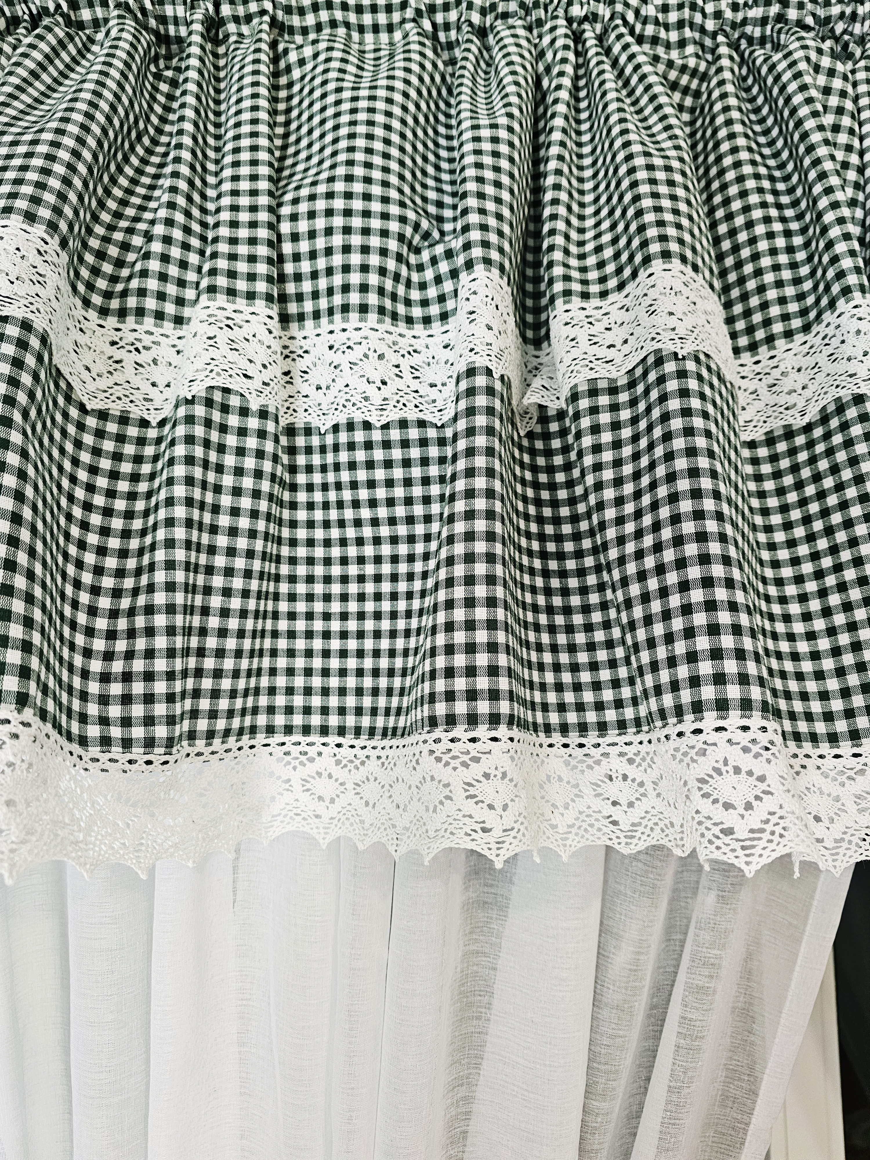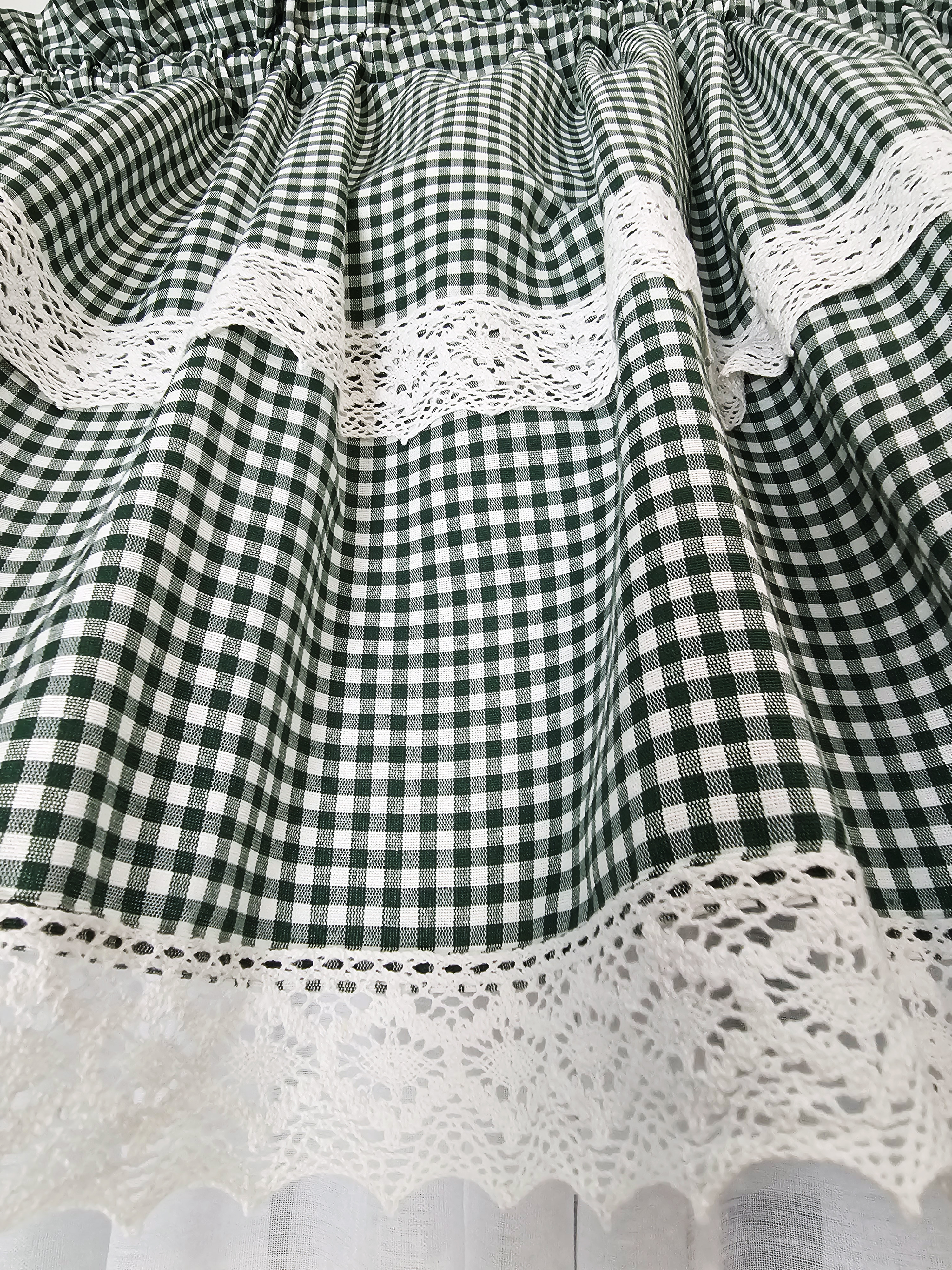 Lambrekin zielona krata vichy koronka