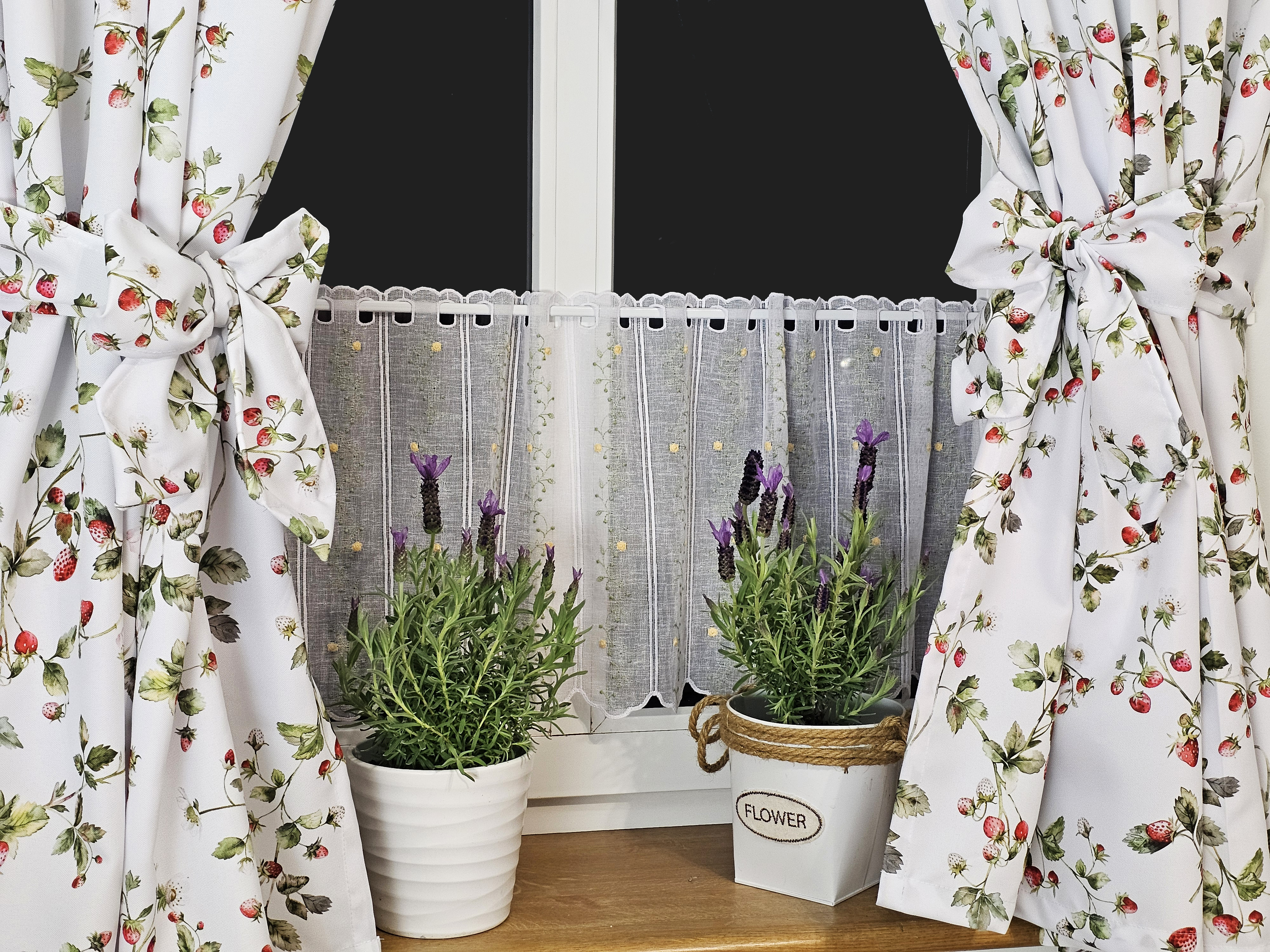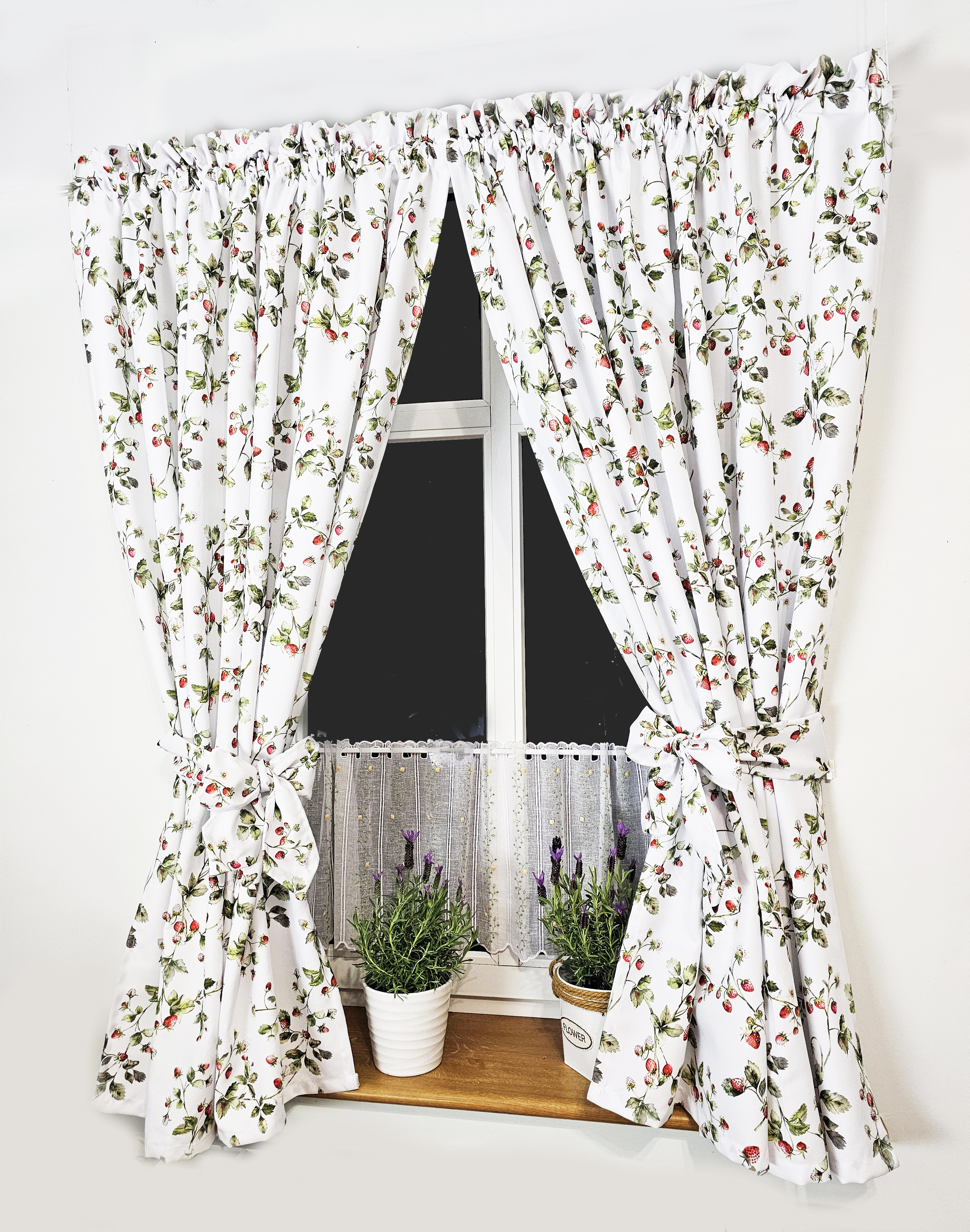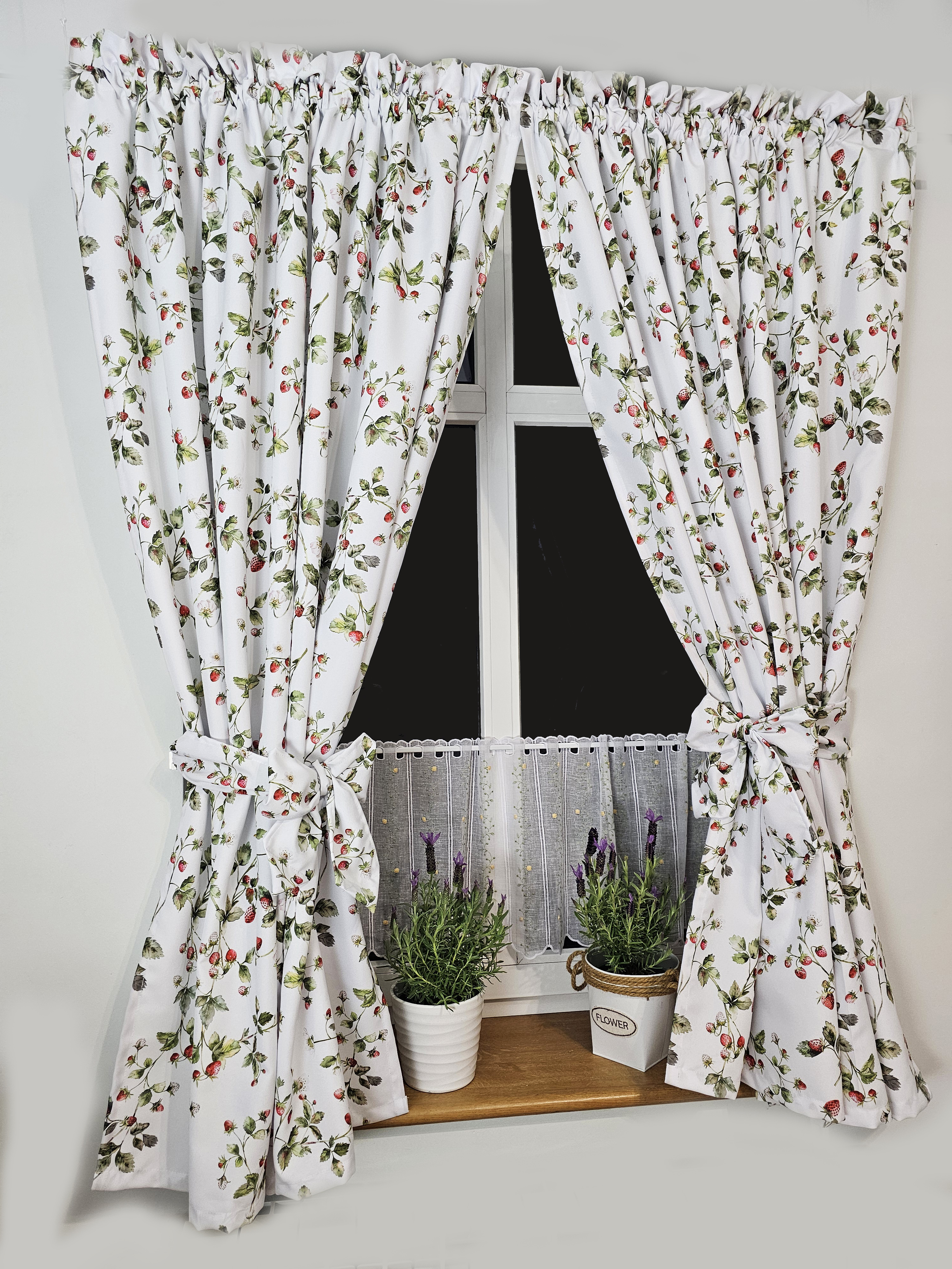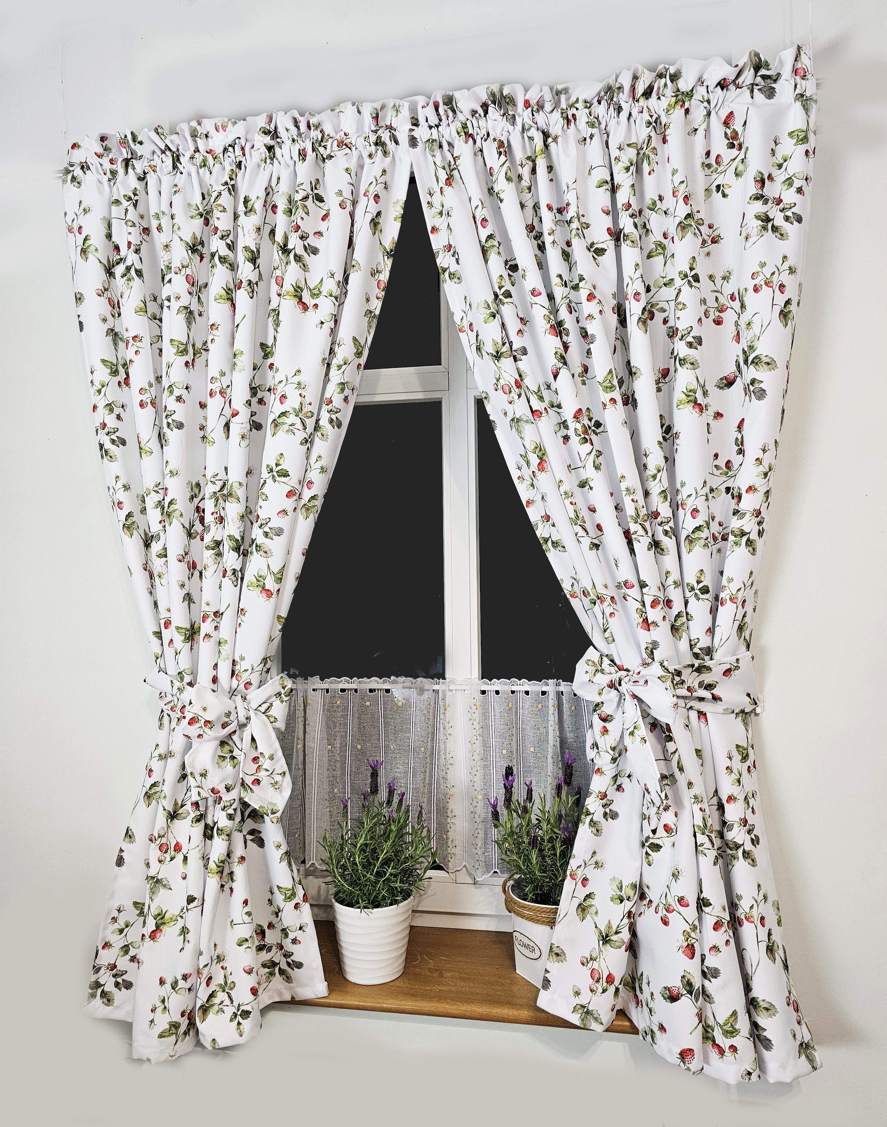 Zestaw zasłon+zazdrostka plamoodporny poziomki