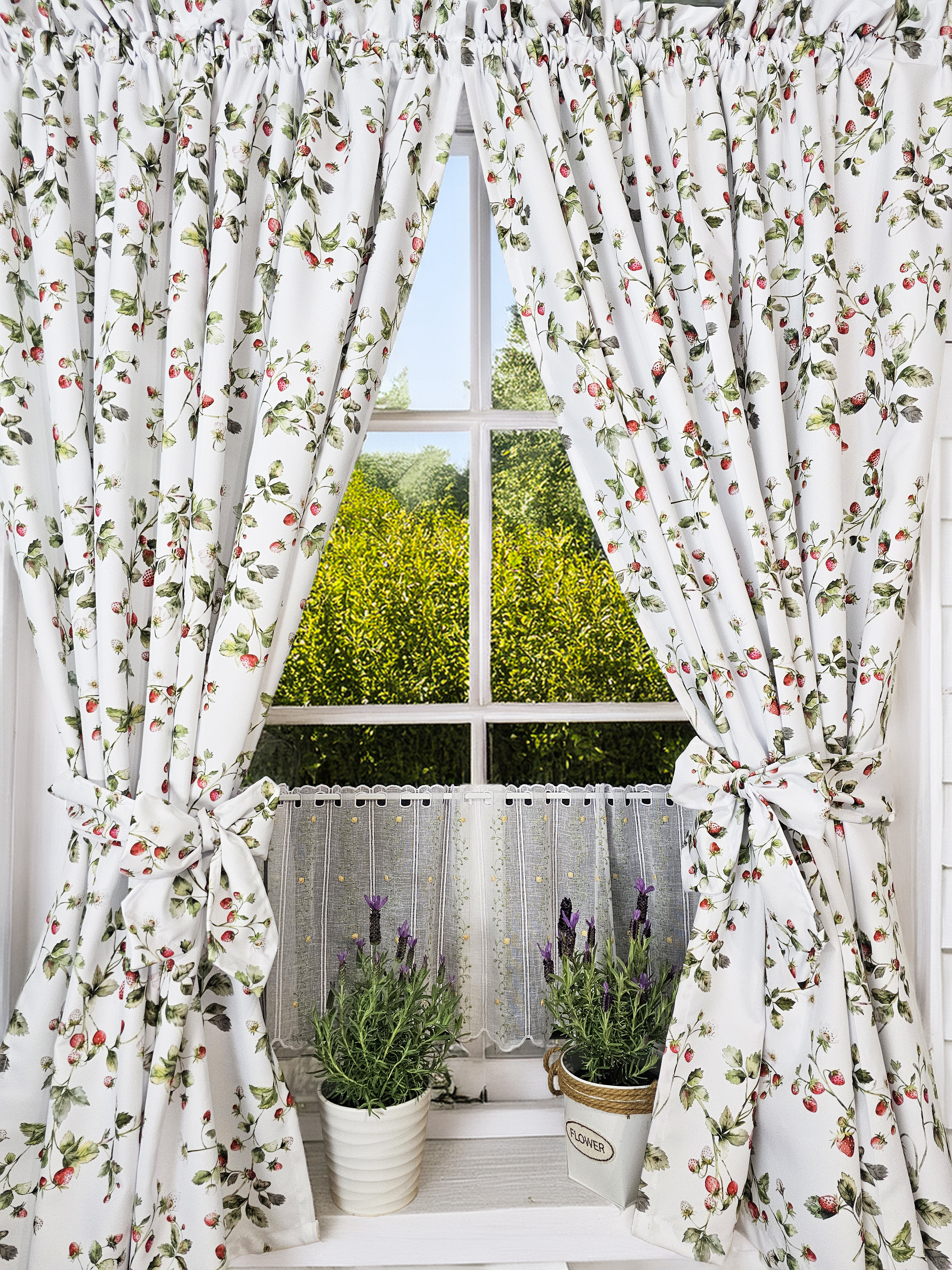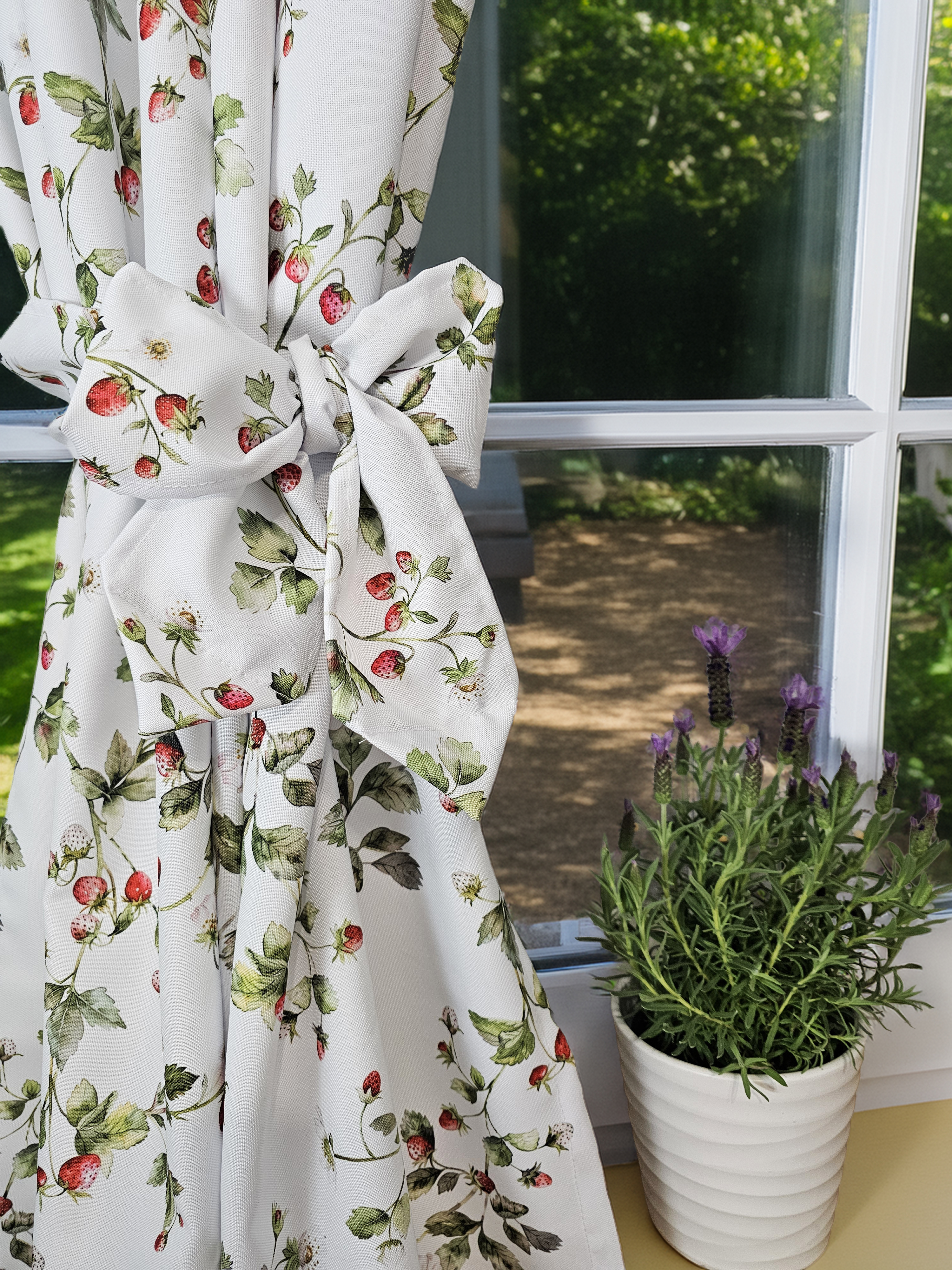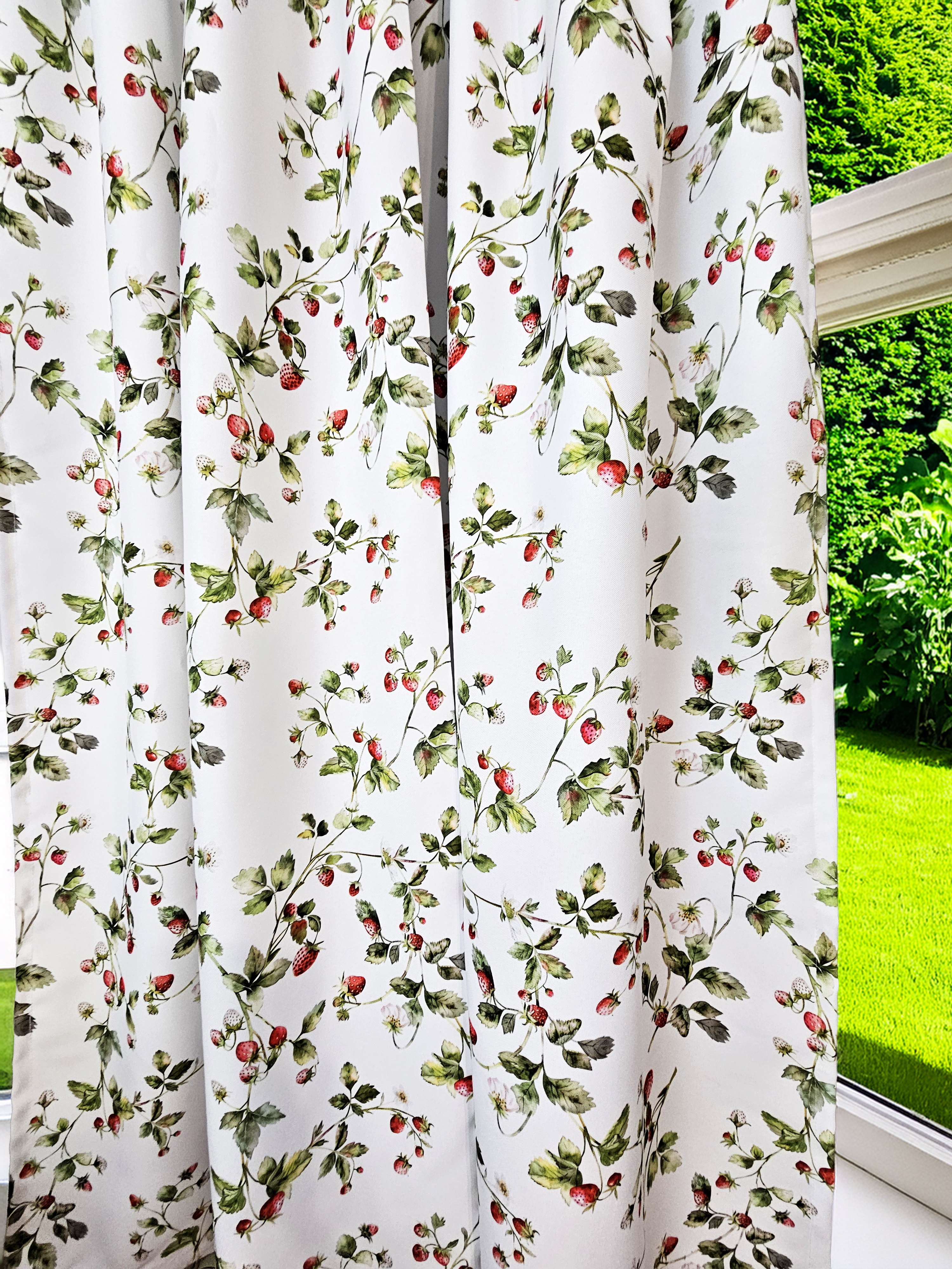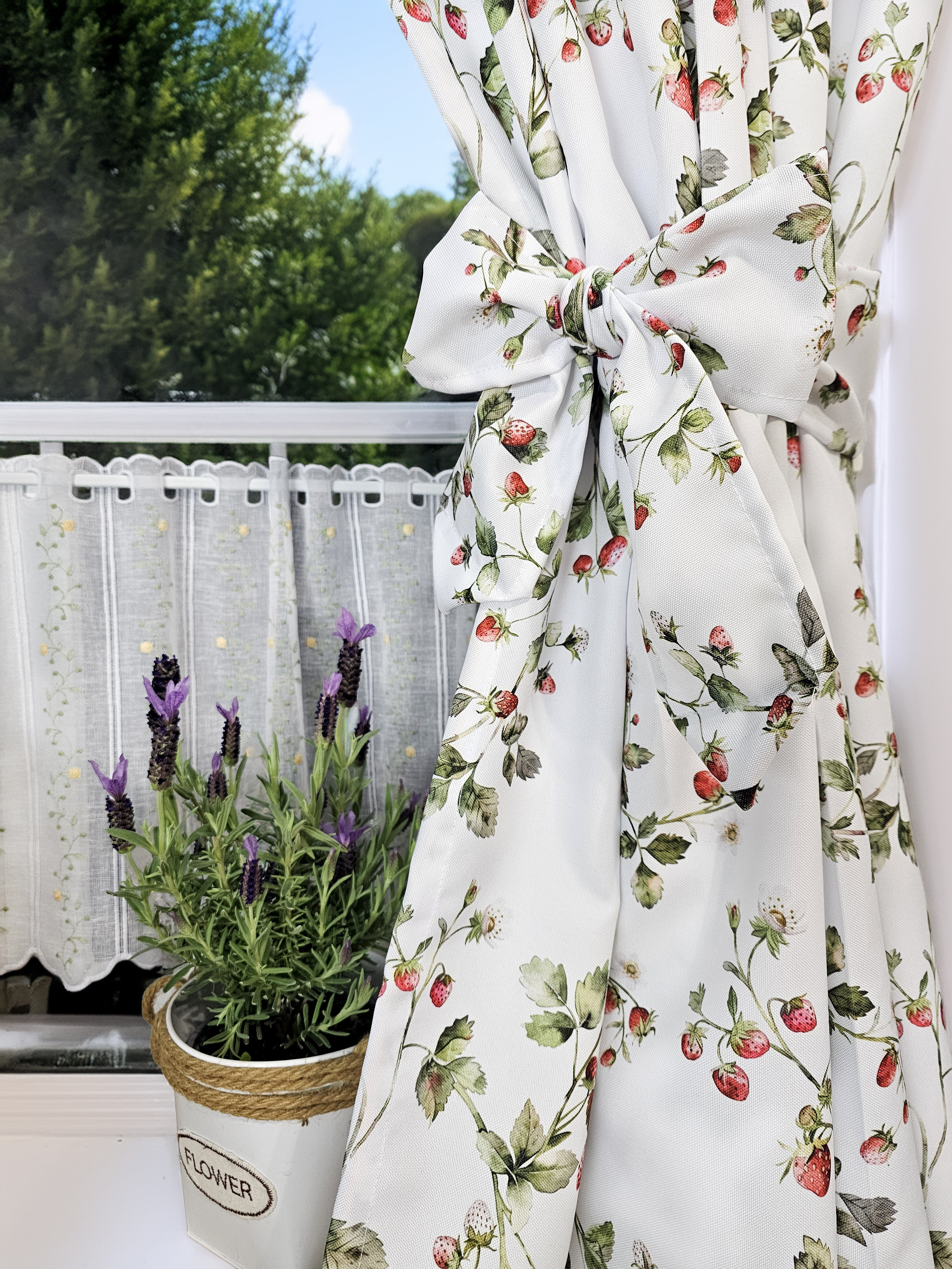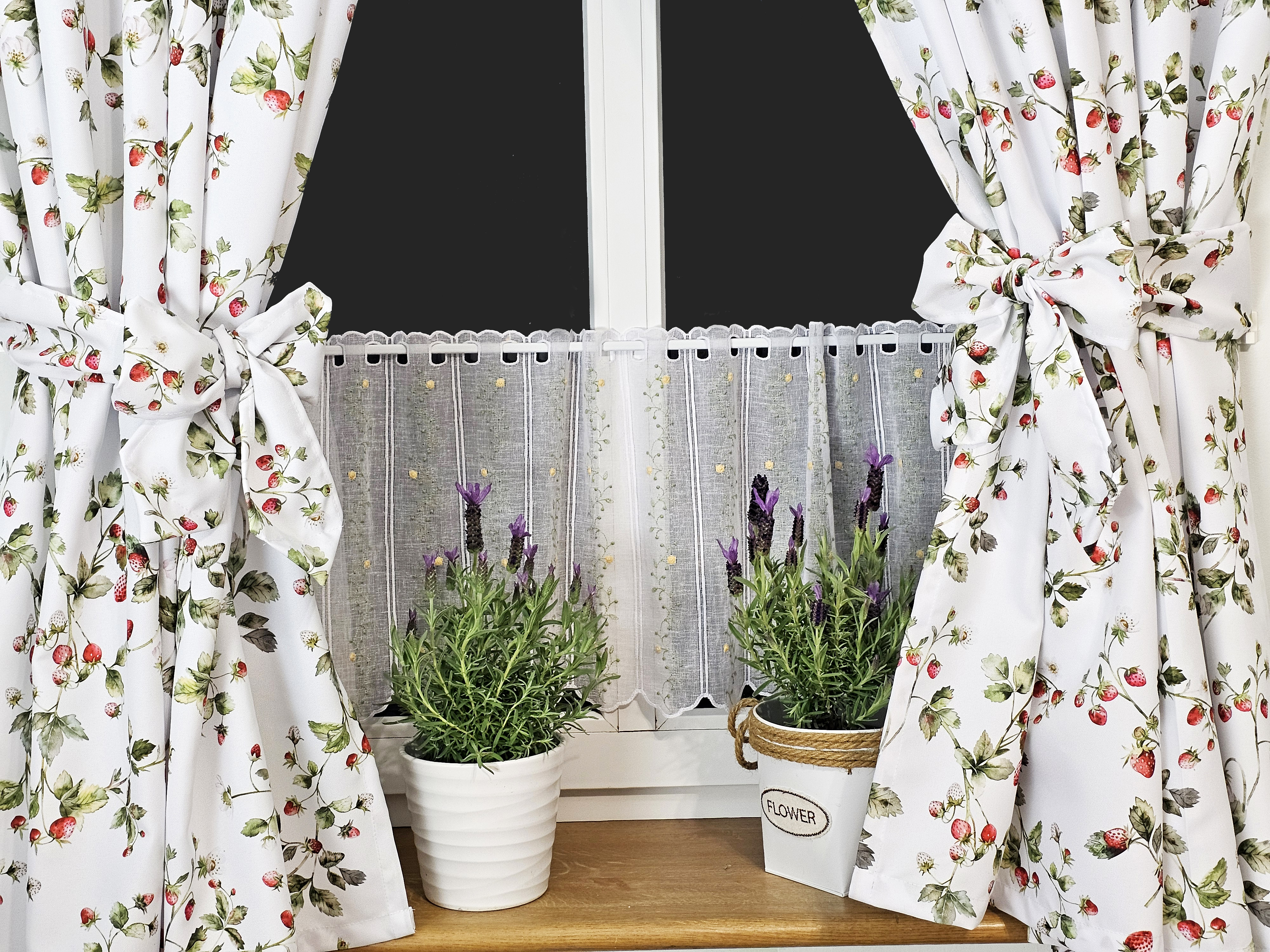 Zestaw zasłon+zazdrostka plamoodporny poziomki