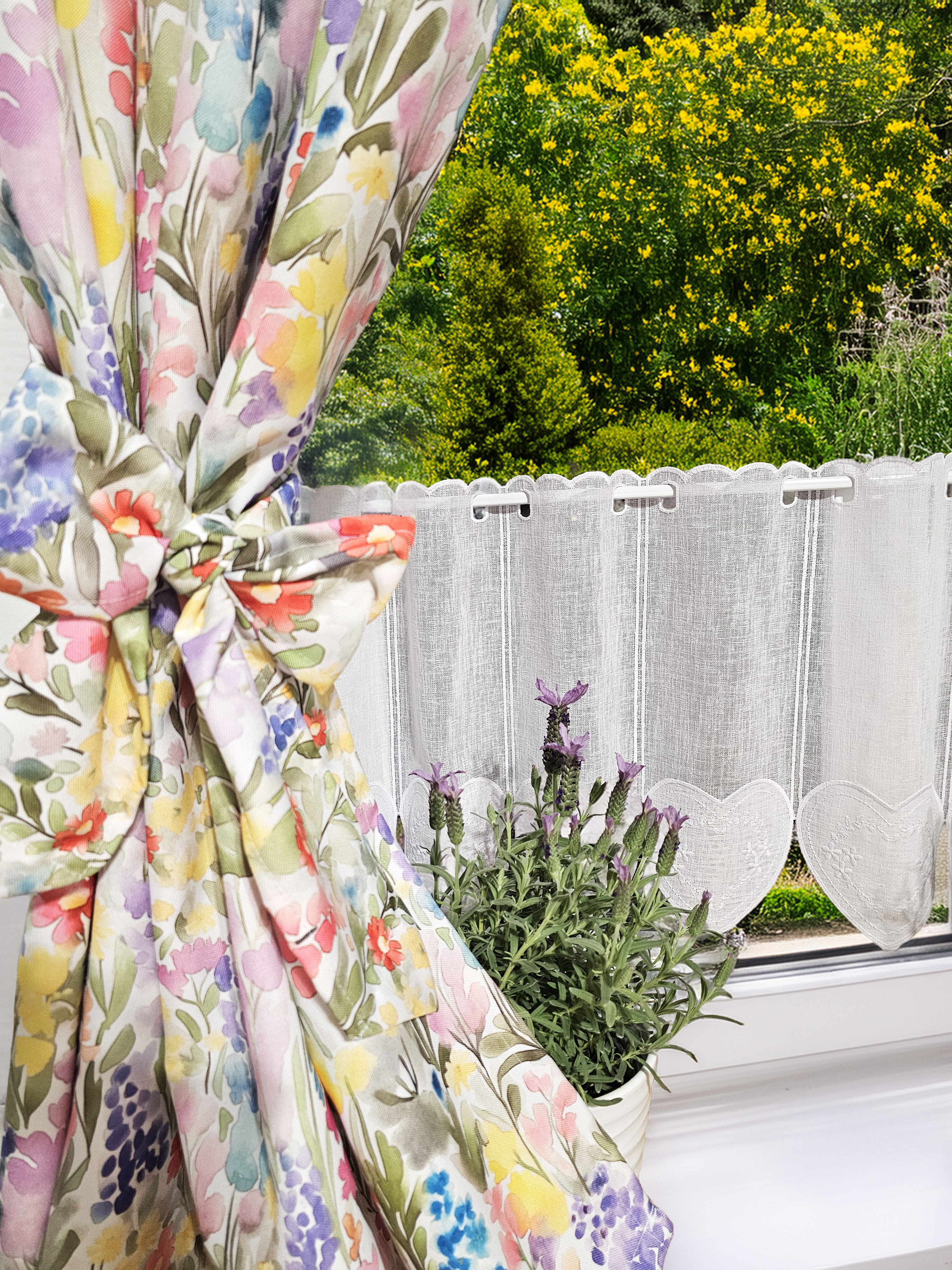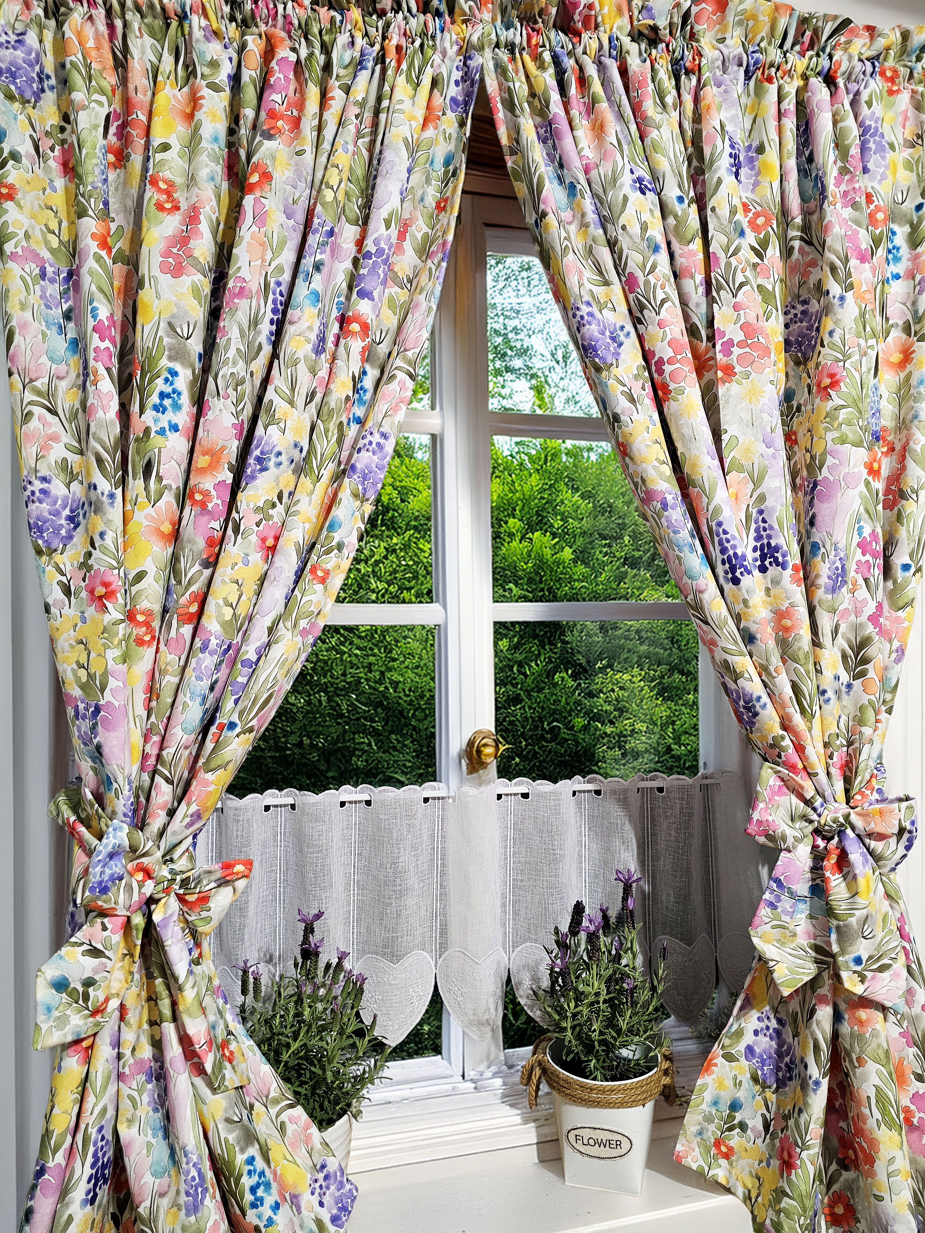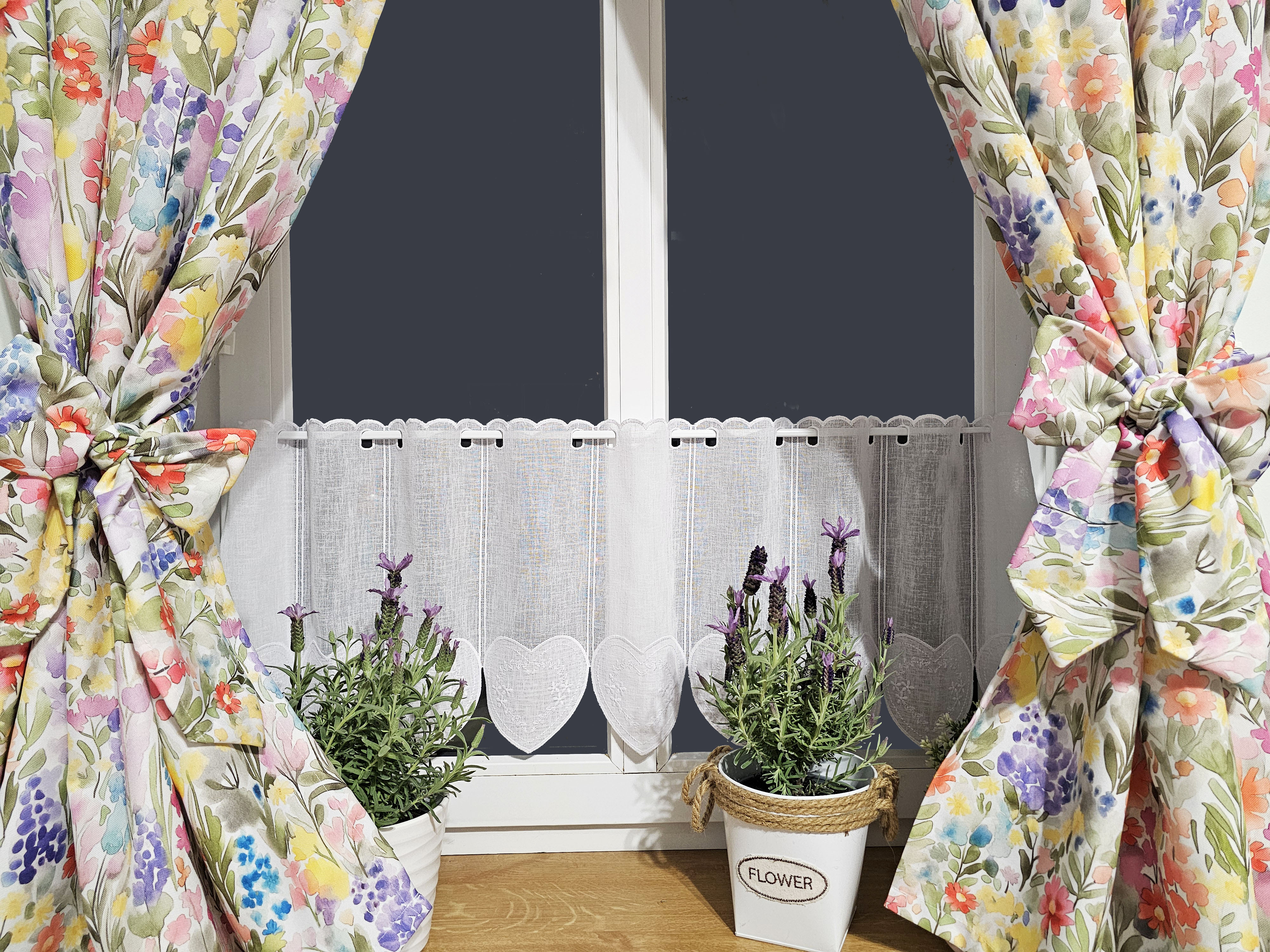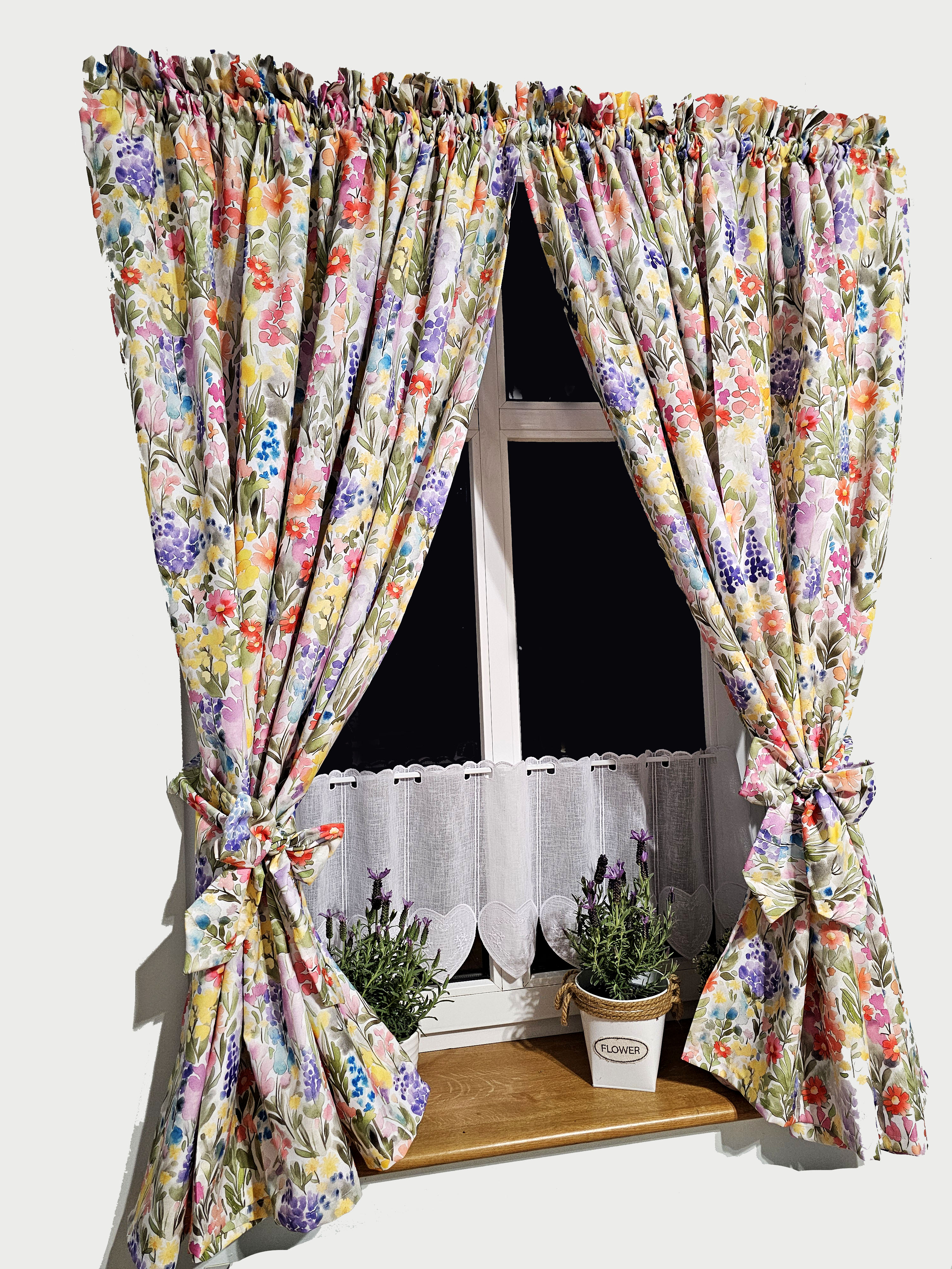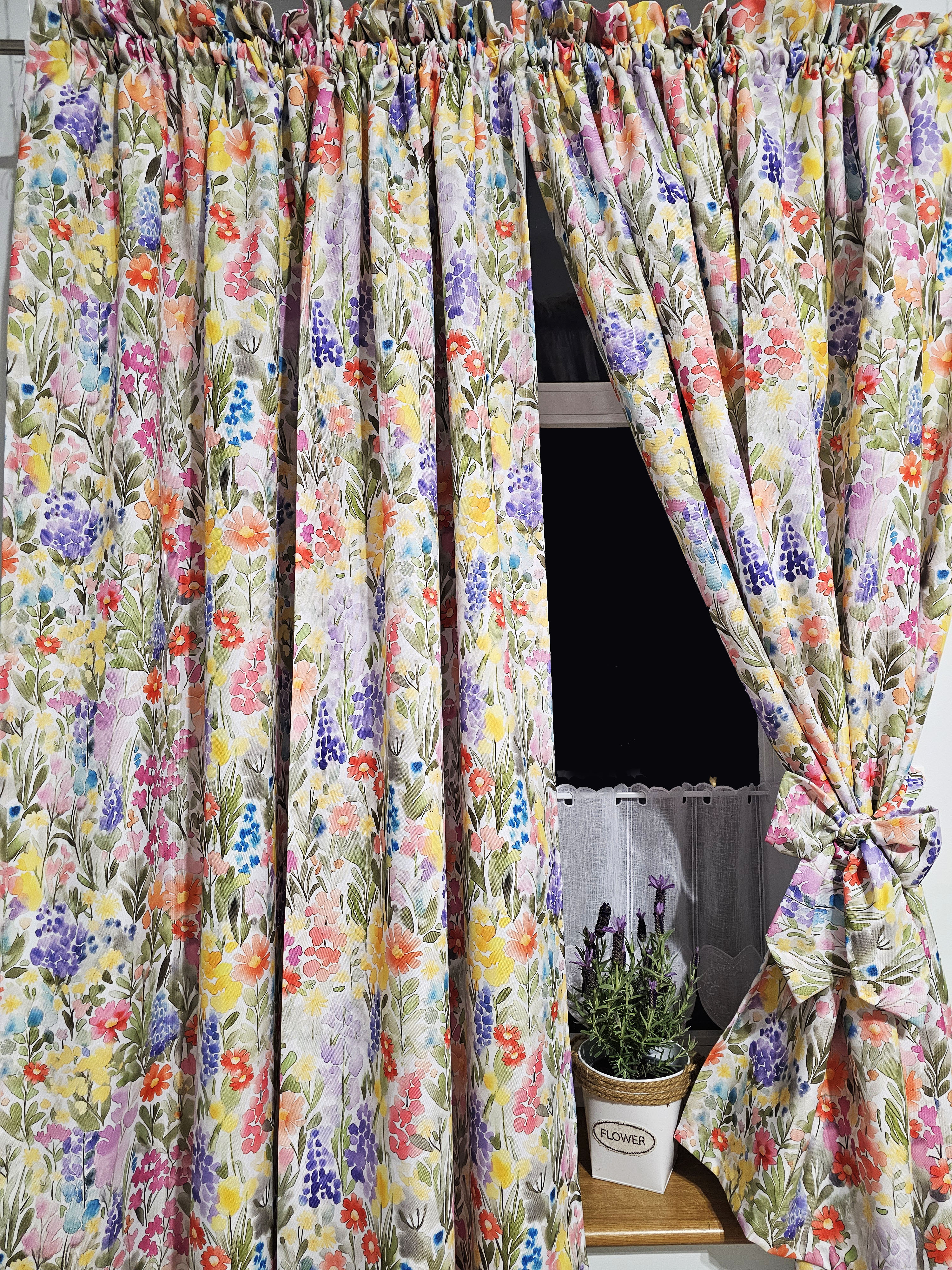 W cenie dwie sztuki zasłonek plus zazdrostka. Jest możliwość zakupienia do kompletu obrusów, poszewek.