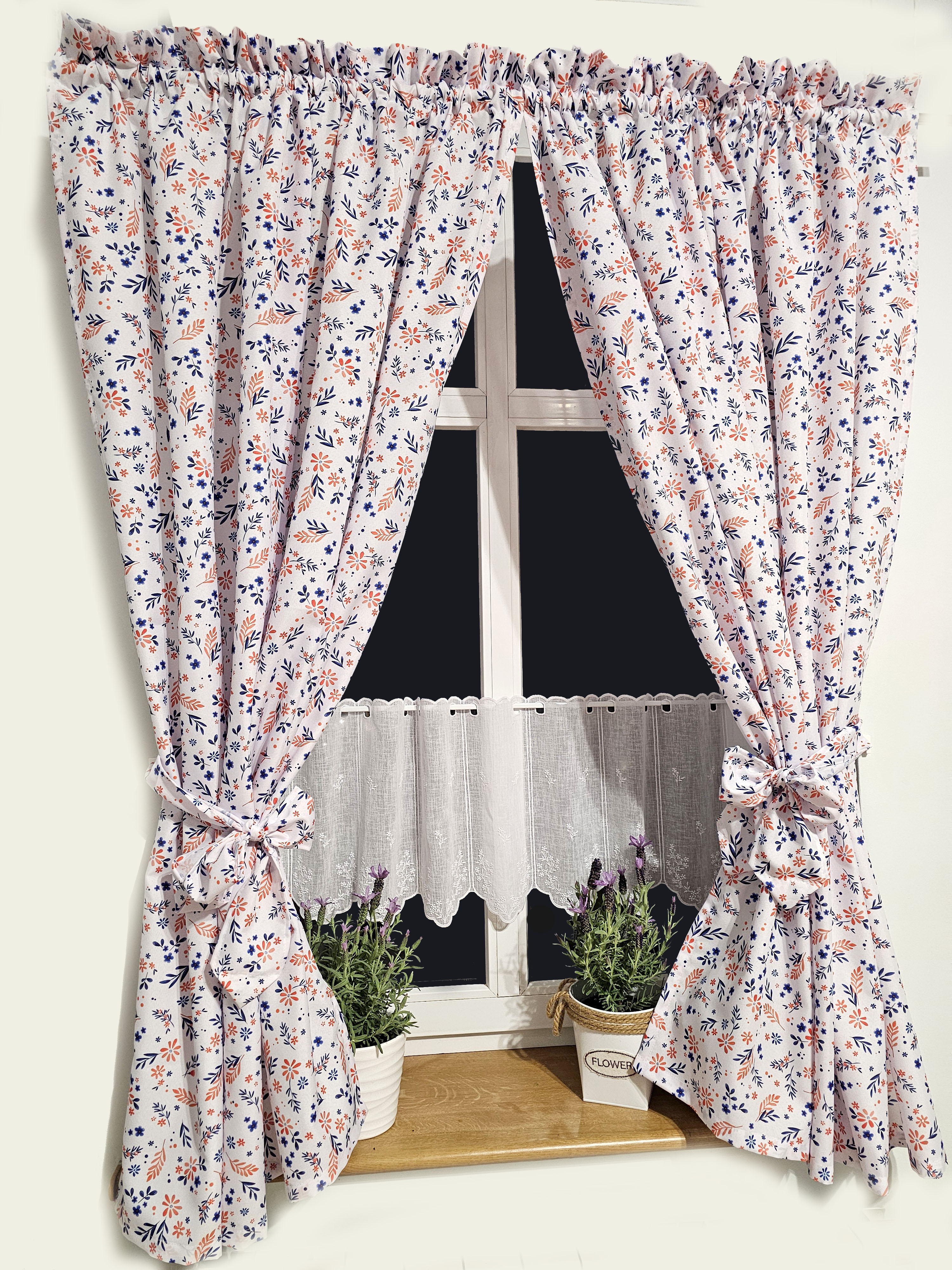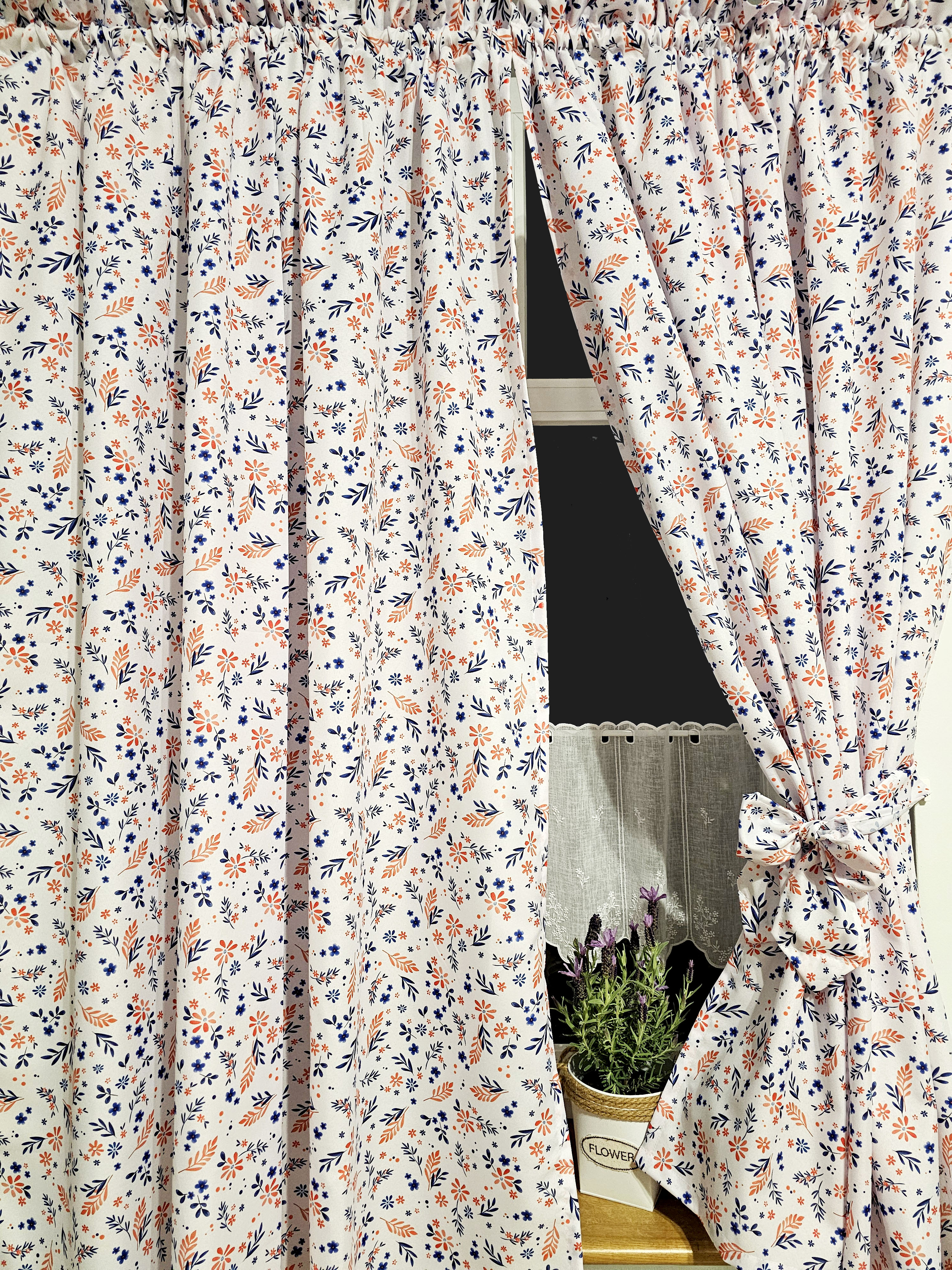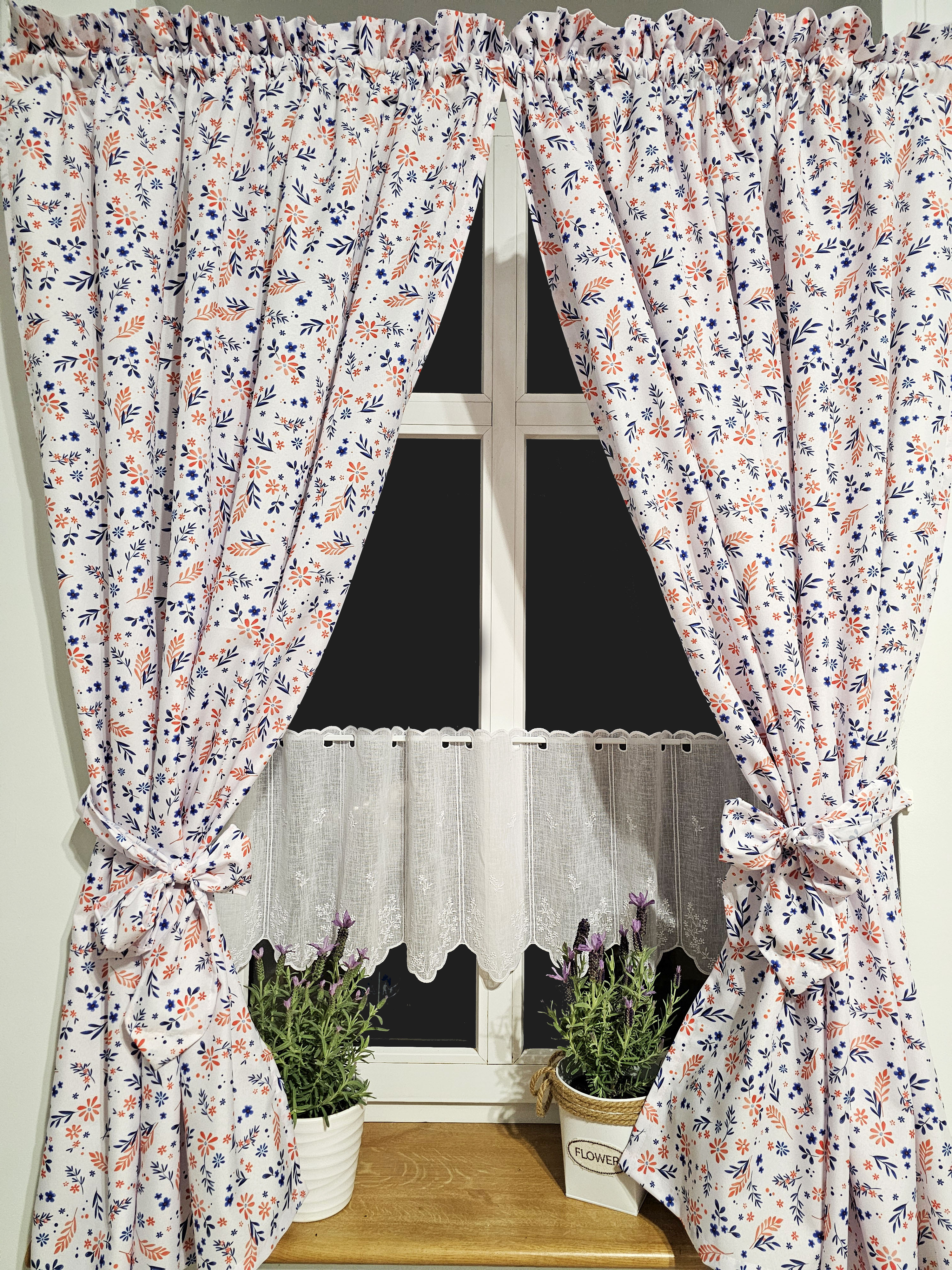 W cenie dwie sztuki zasłonek plus zazdrostka. Jest możliwość zakupienia do kompletu obrusów, poszewek.