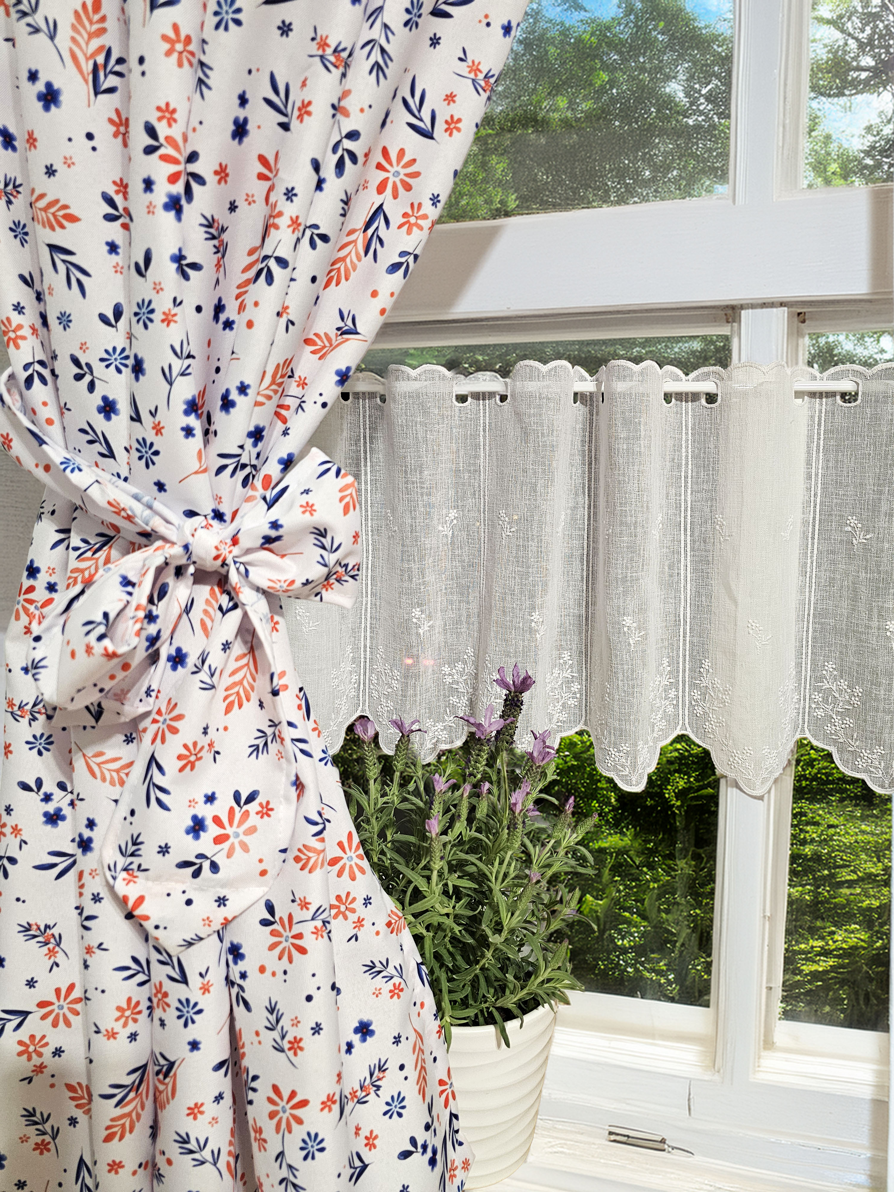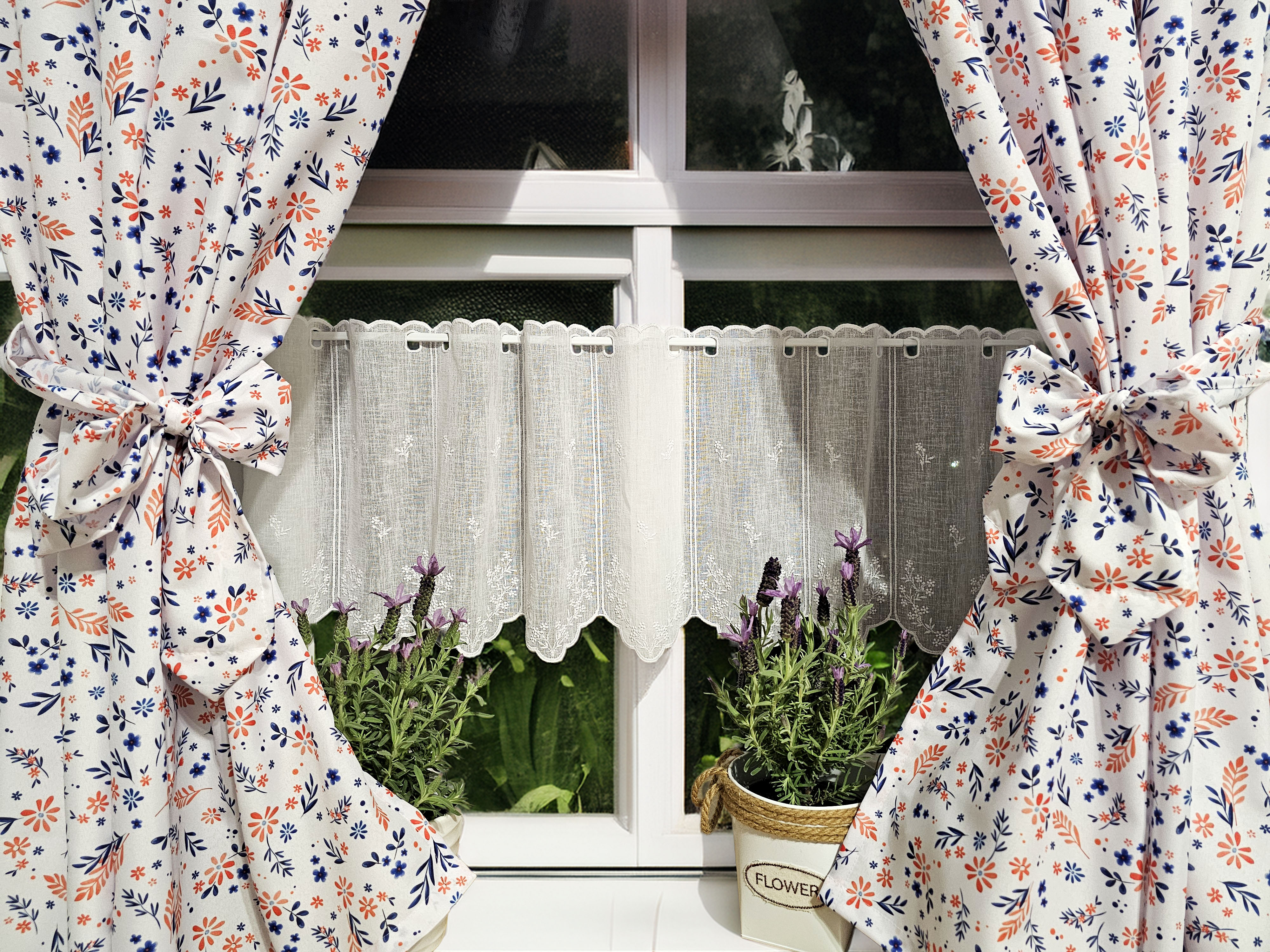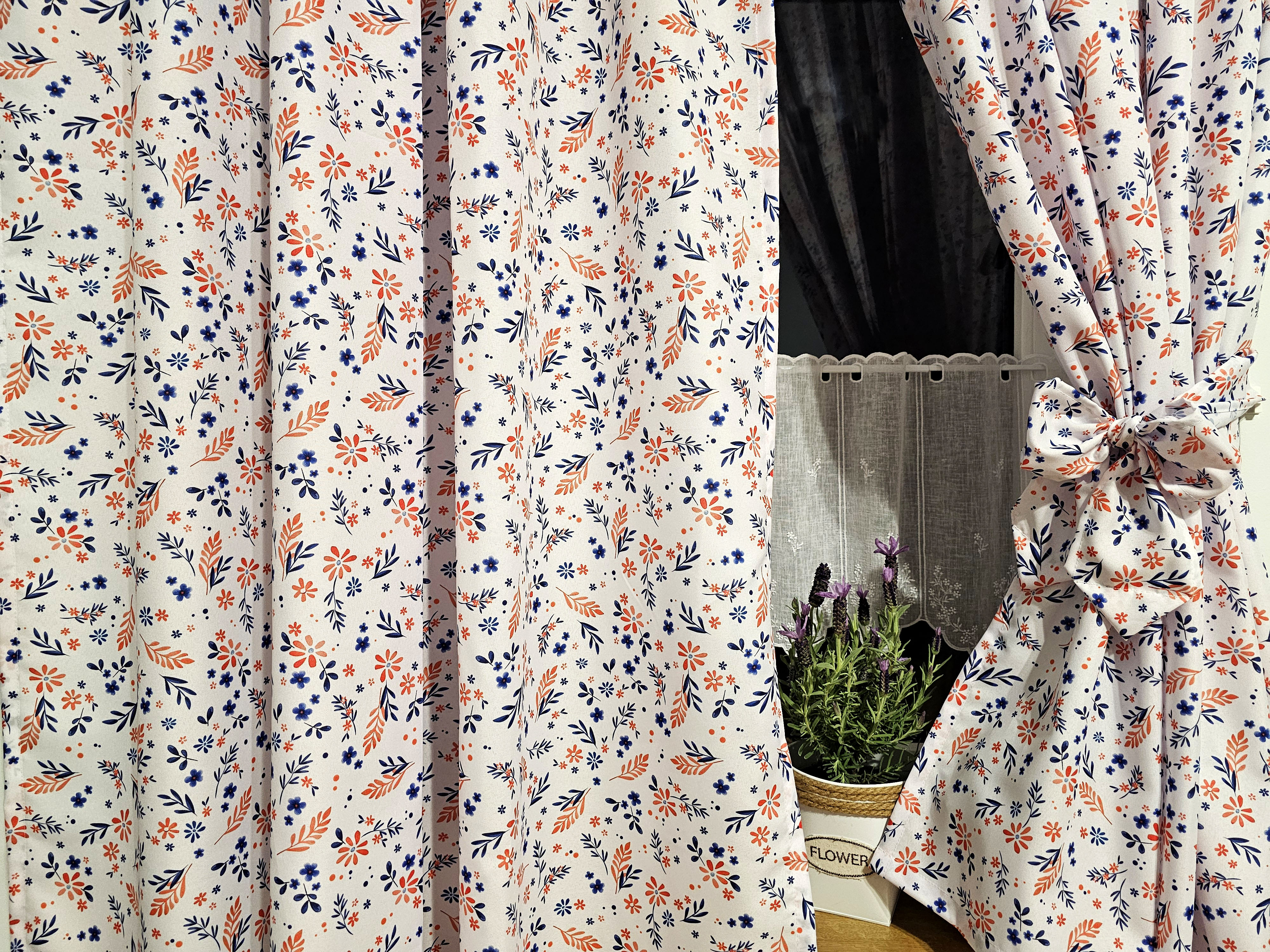 W cenie dwie sztuki zasłonek plus zazdrostka. Jest możliwość zakupienia do kompletu obrusów, poszewek.