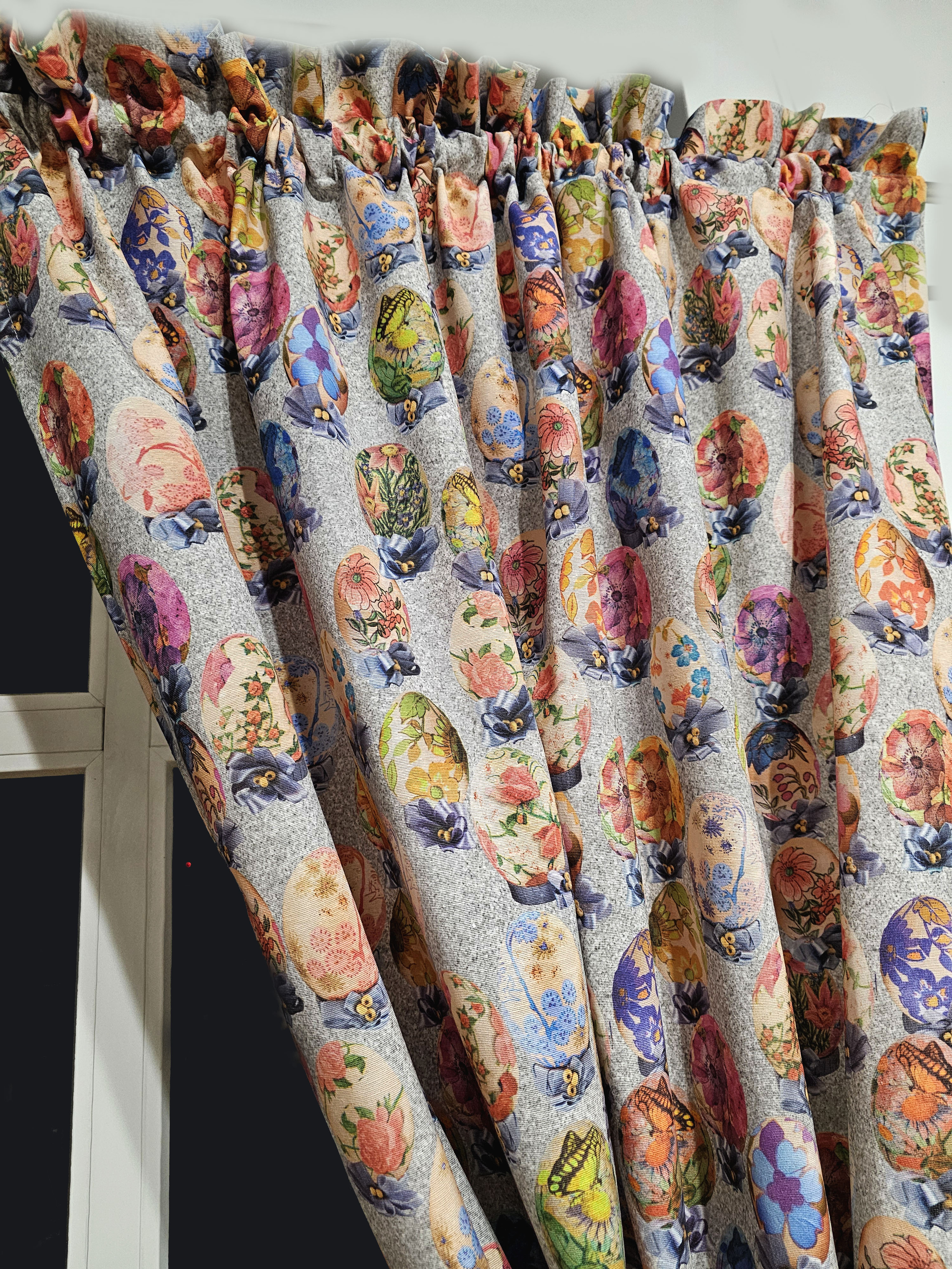 Rozmiar zasłony podajemy na płasko, czyli przed zmarszczeniem. Tkanina jest umarszczona w stosunku 1 : 2 co oznacza, że szerokość 140 cm po zmarszczeniu będzie wynosiła