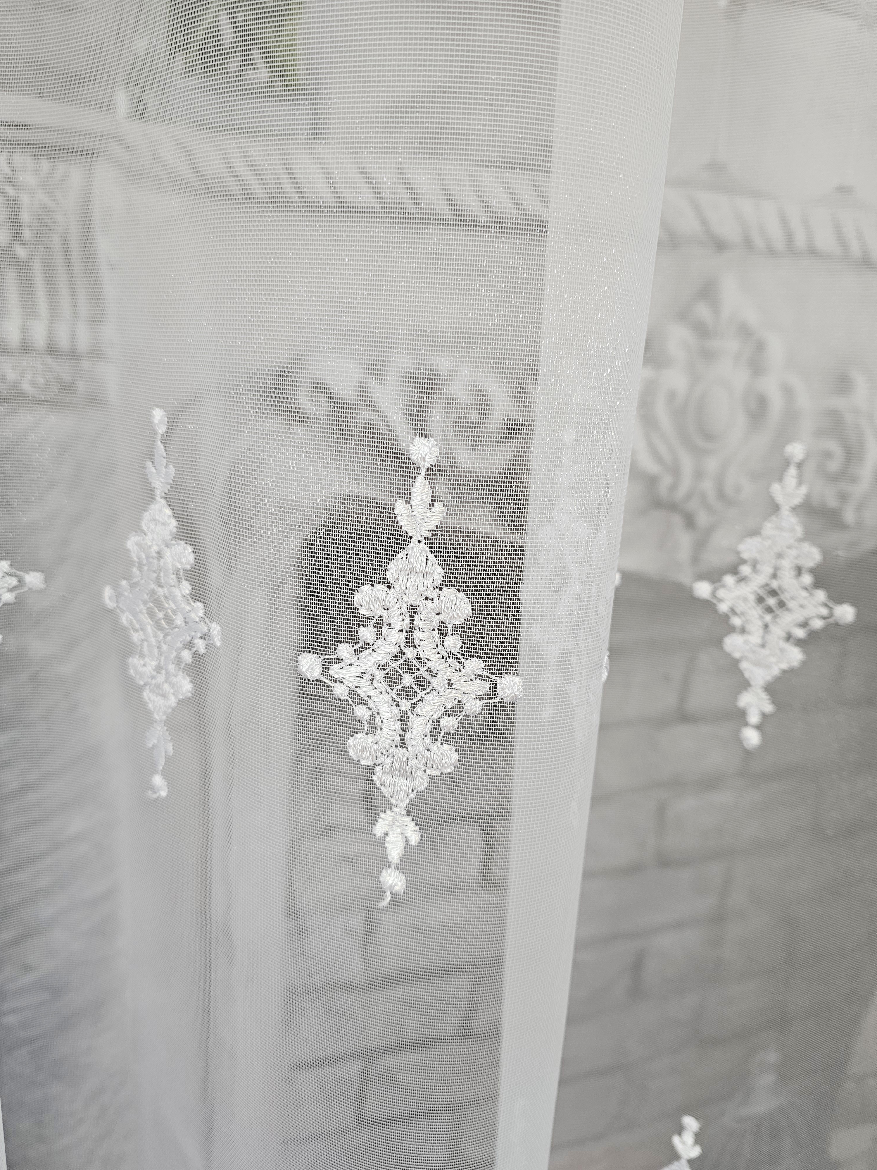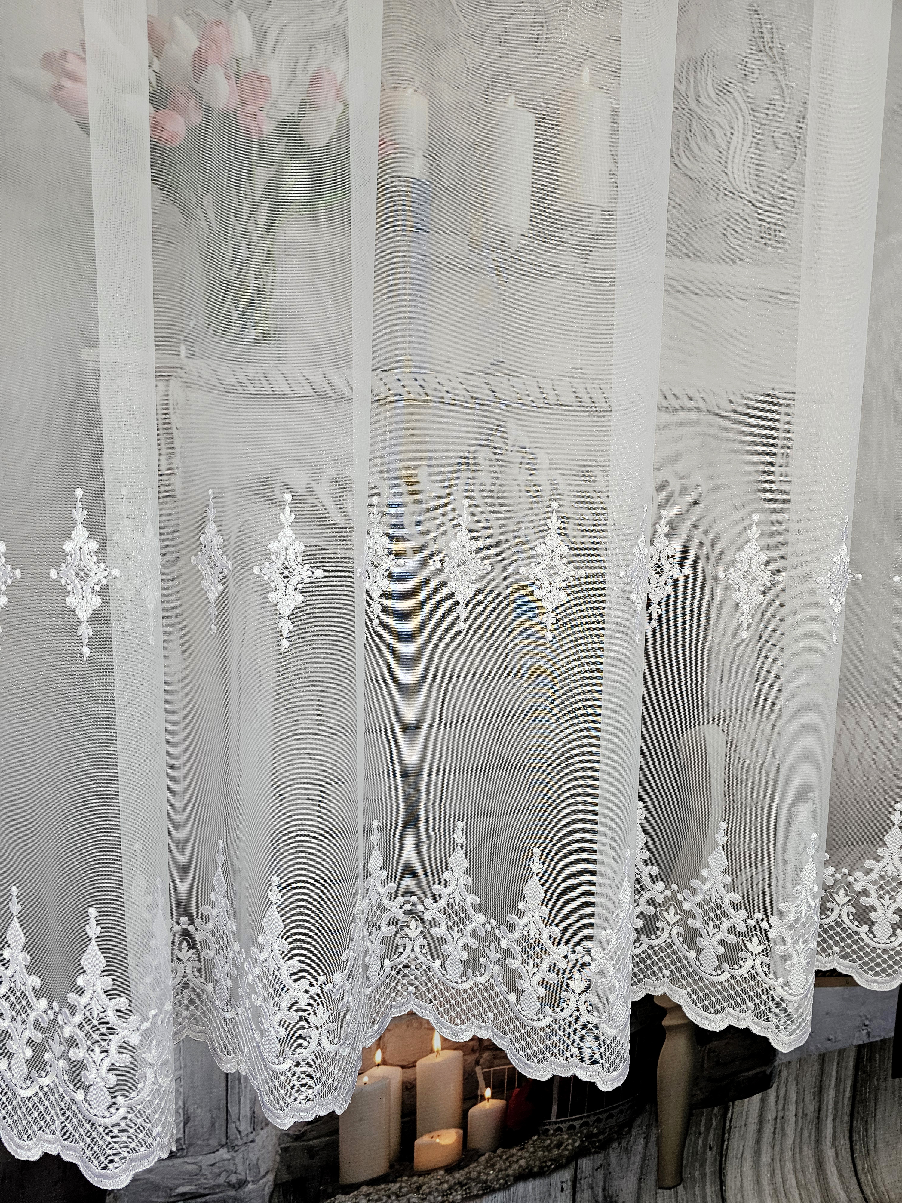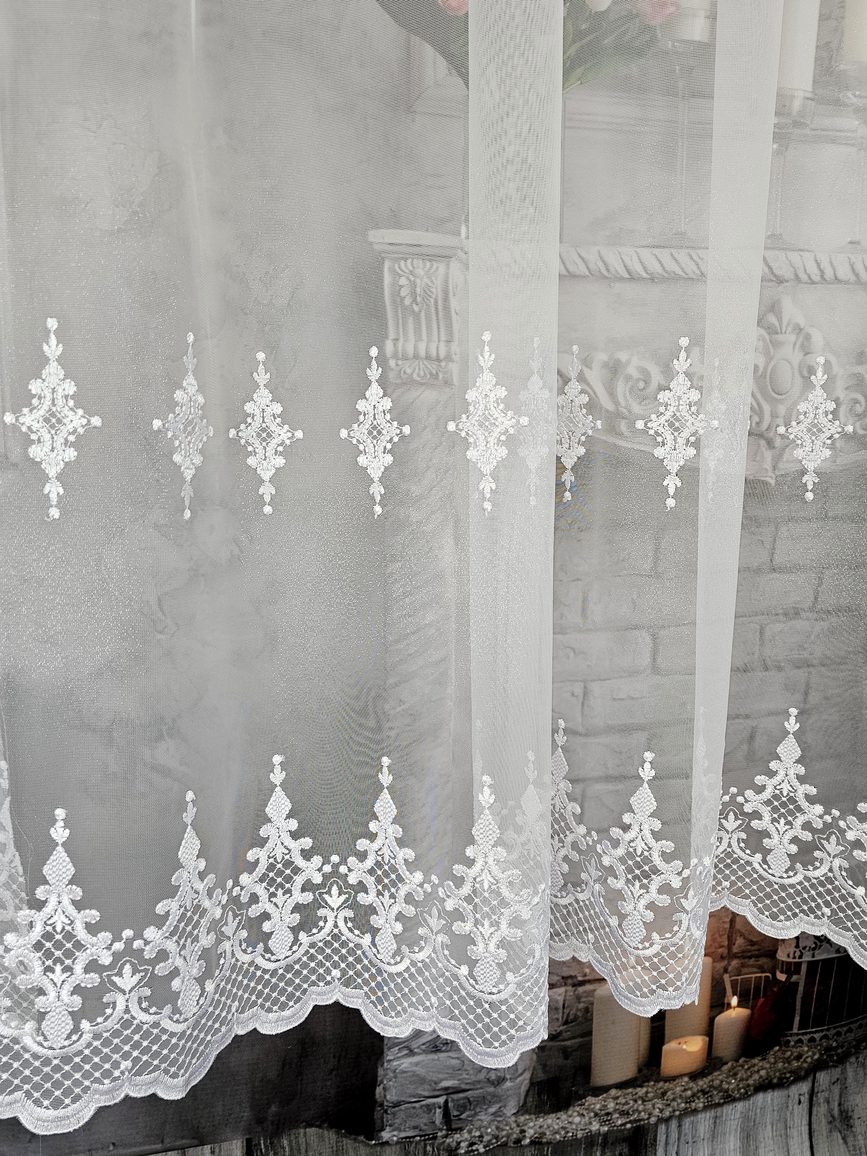 Cena za gotową firanę z pięknym grubym haftem.