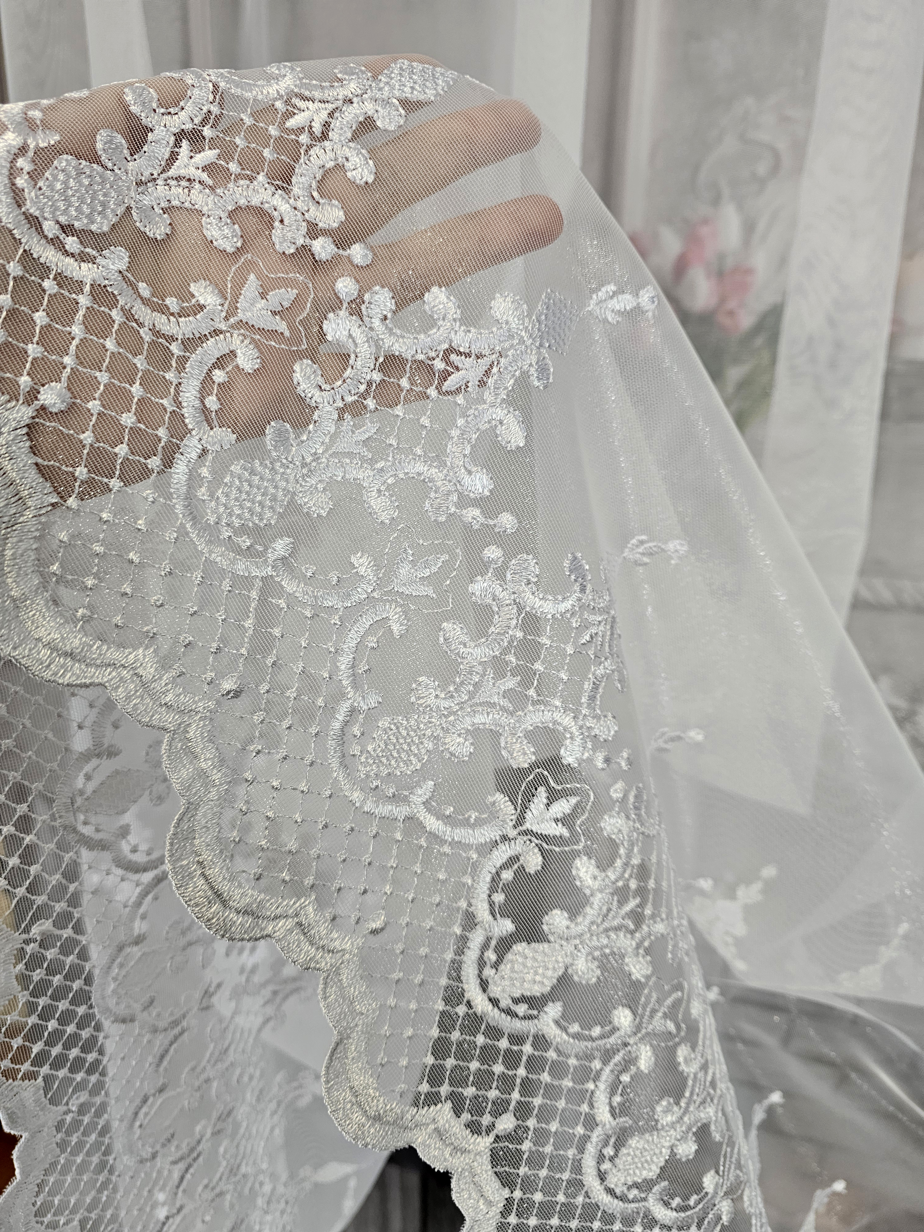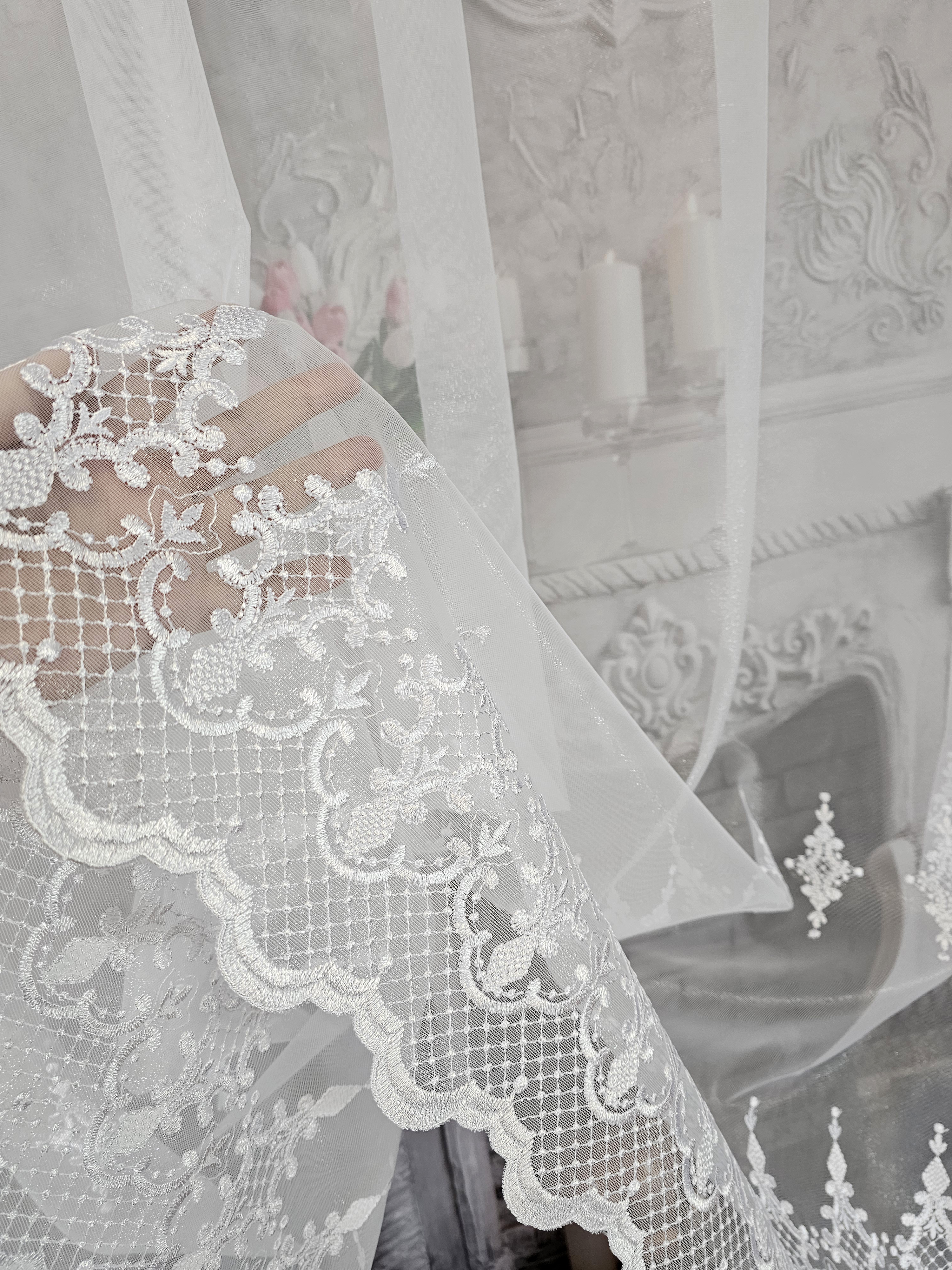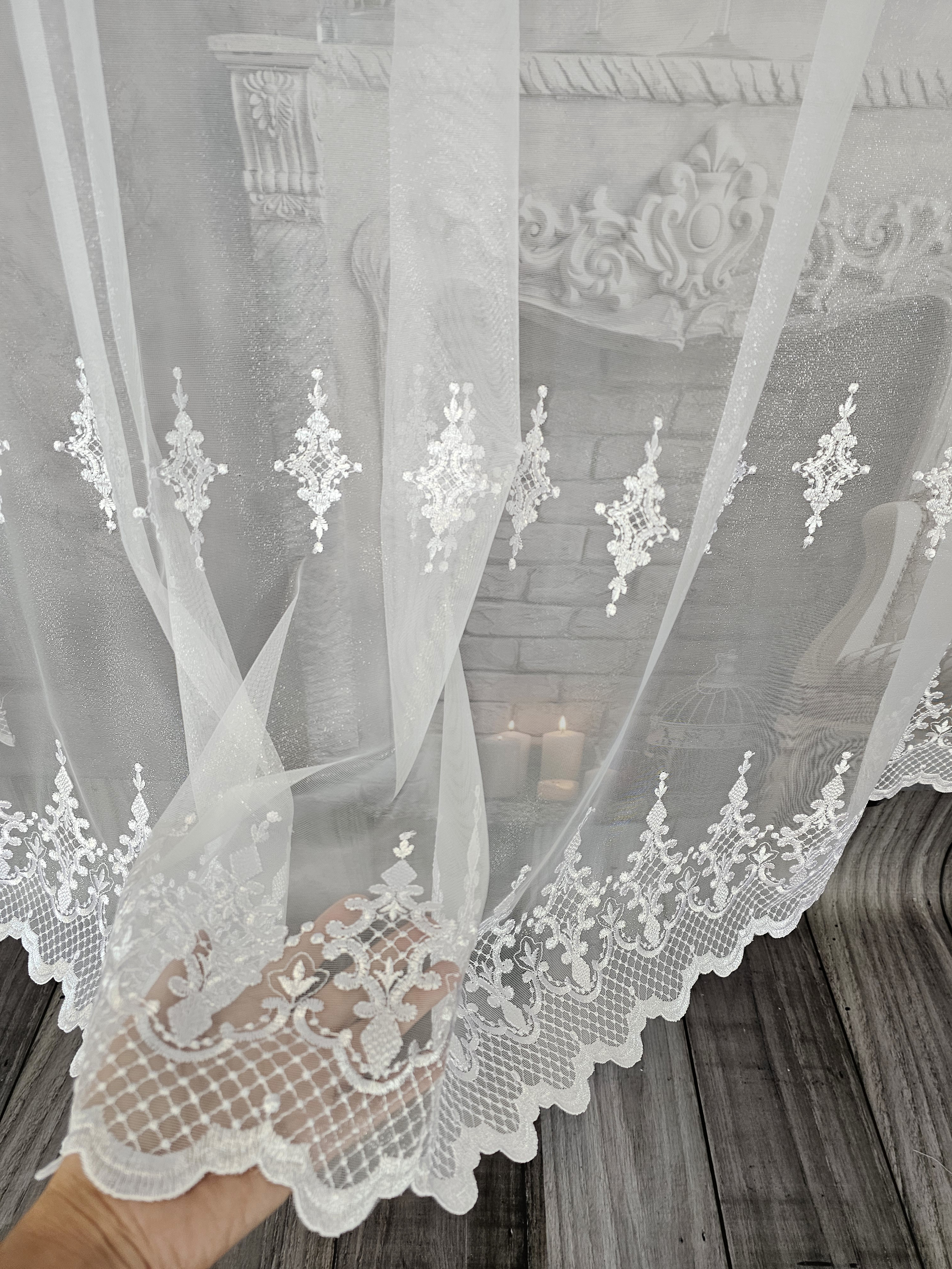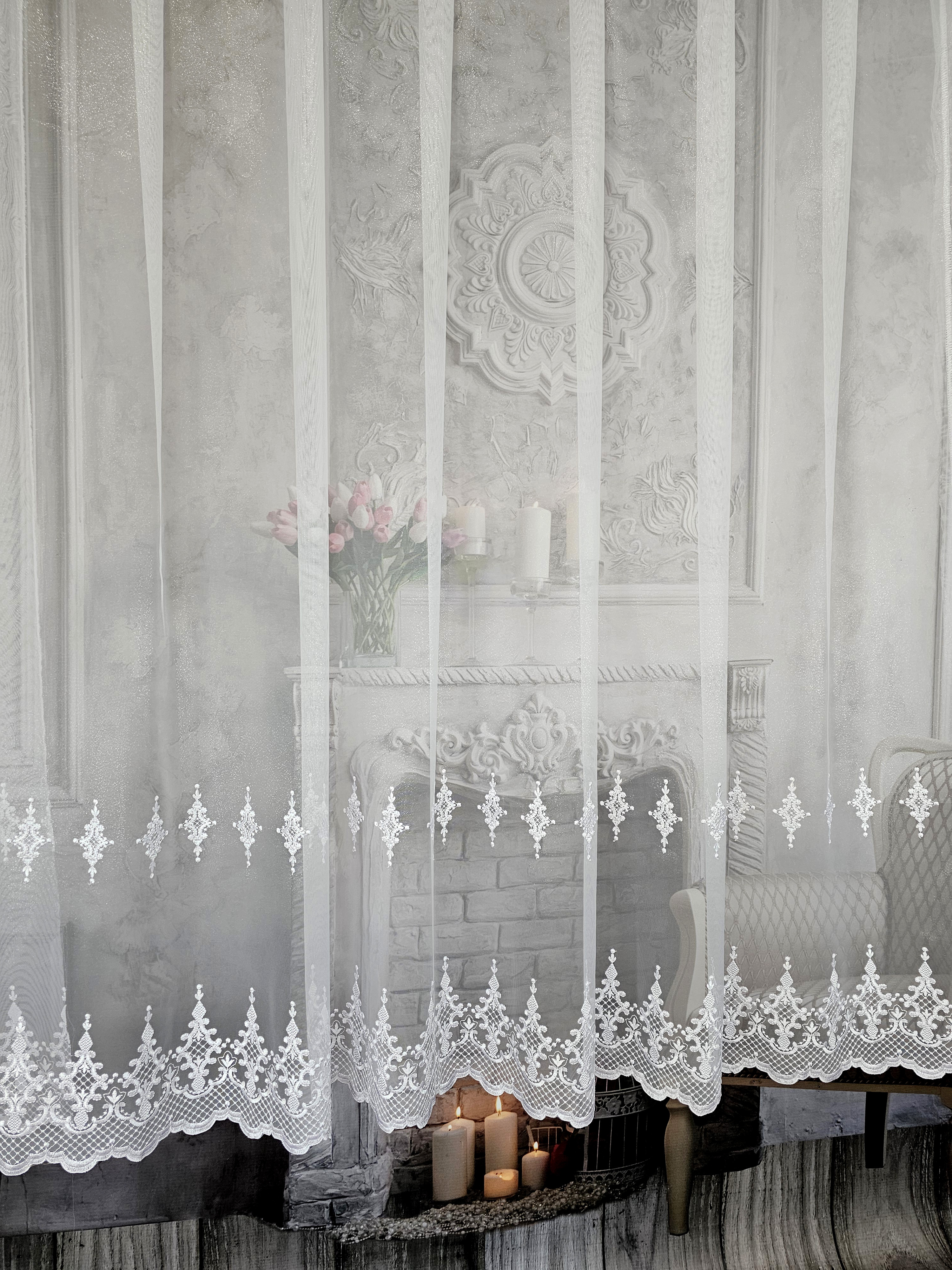 Cena za gotową firanę z pięknym grubym haftem.