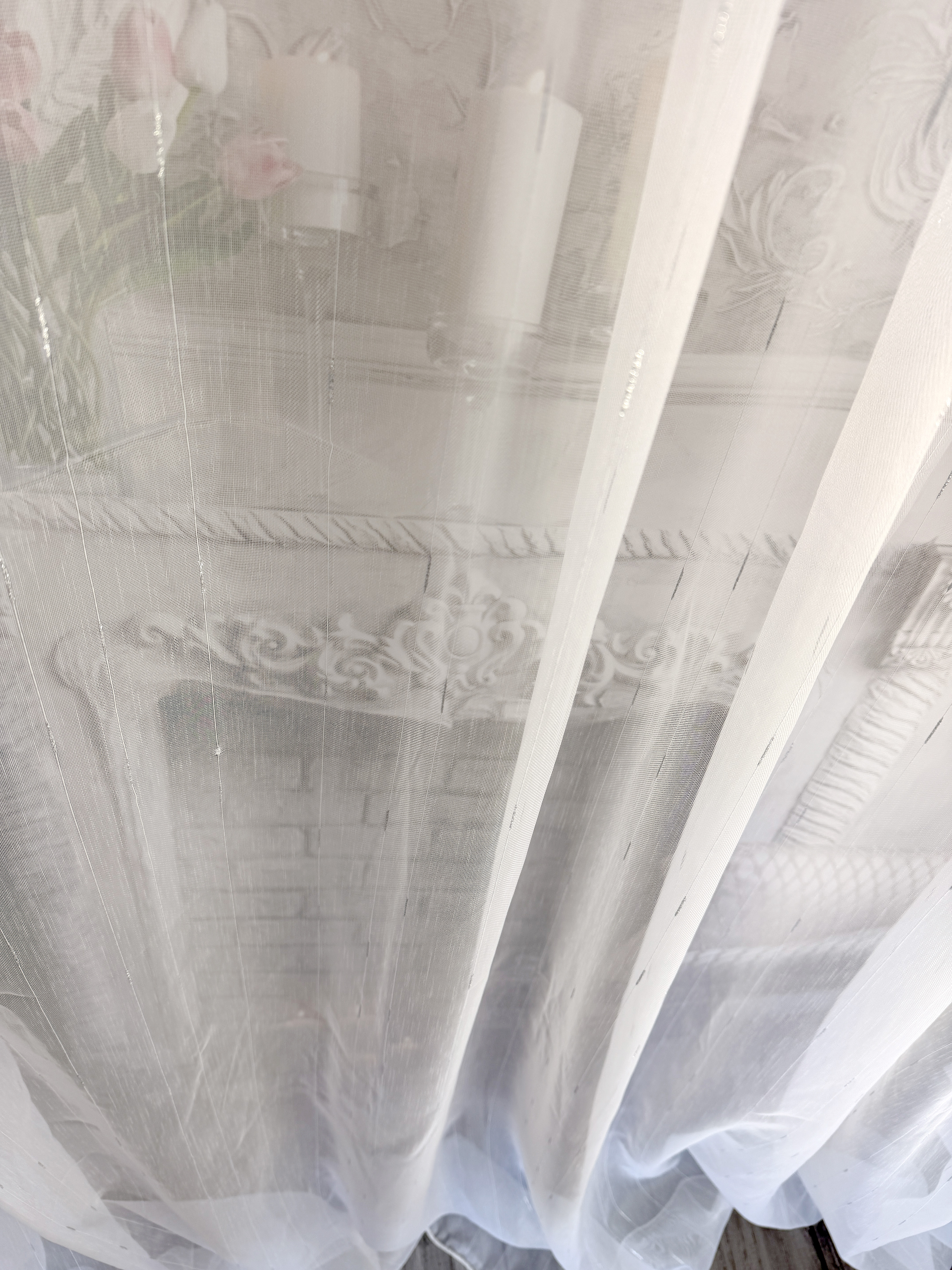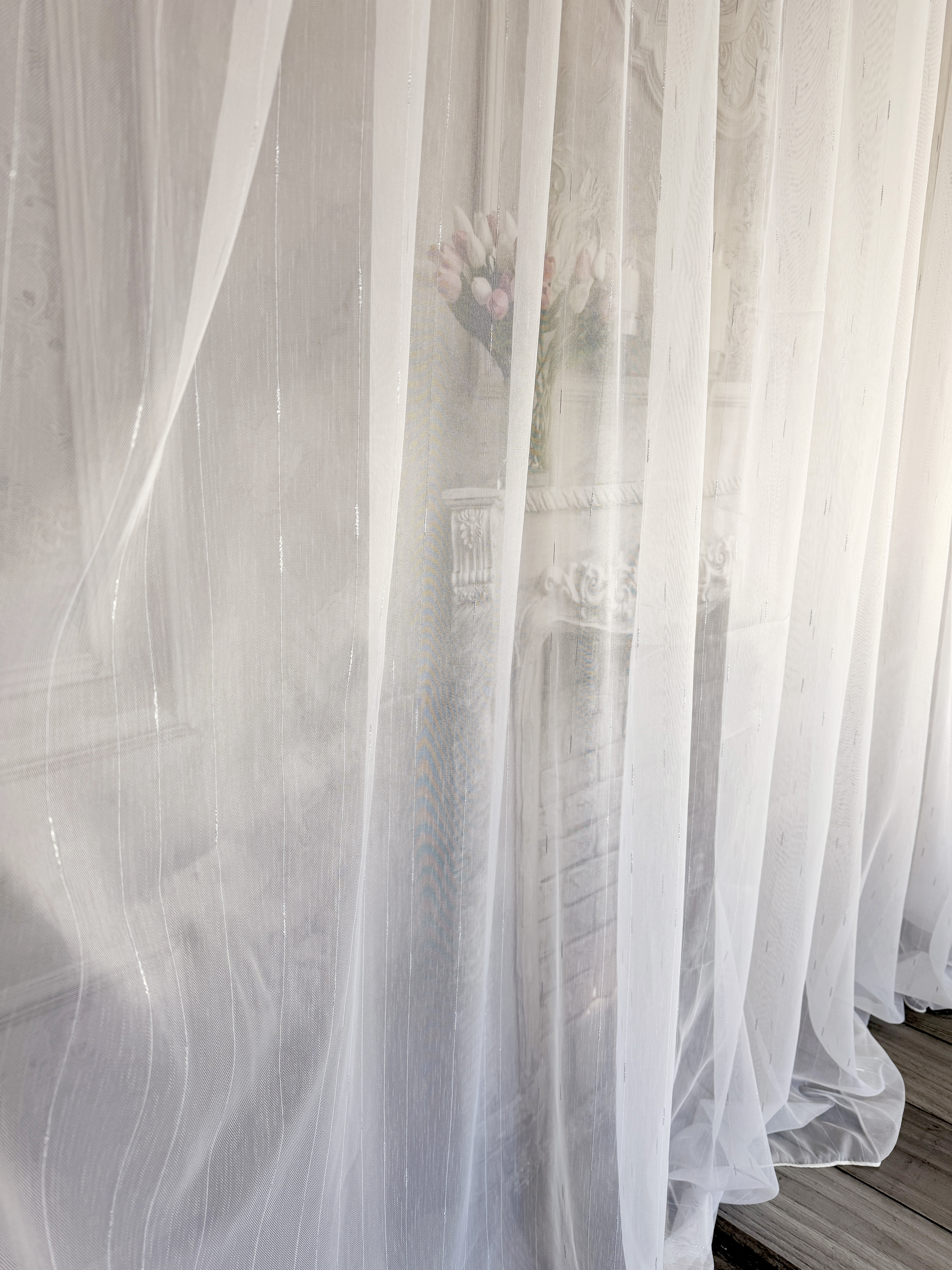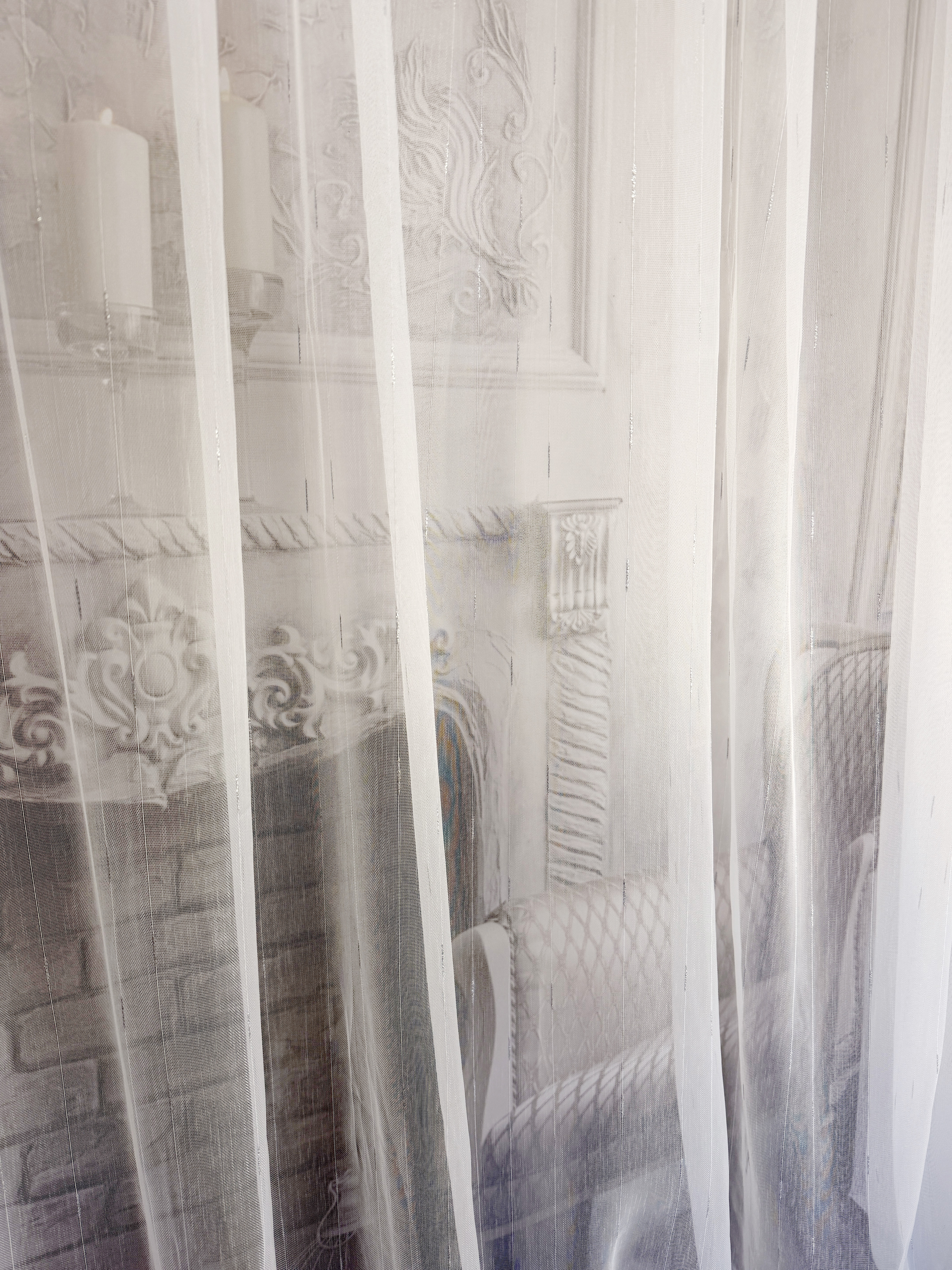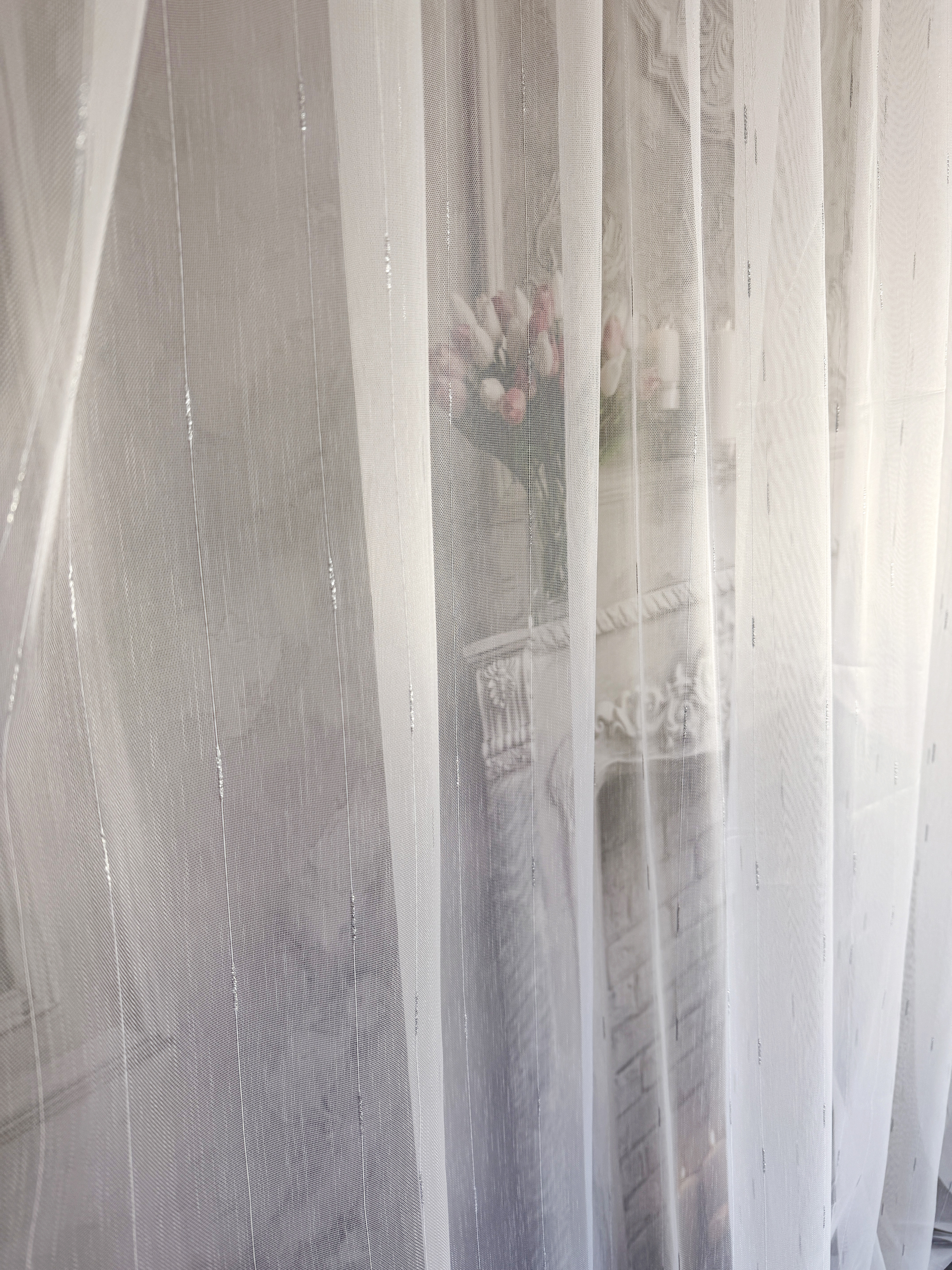 Cena za gotową firanę ze srebrną nitką i nopkami.