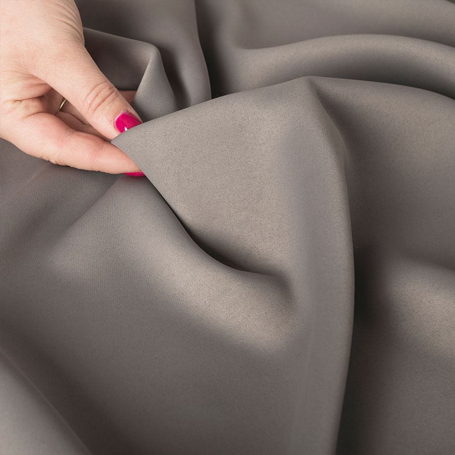 Zasłona z miękkiej tkaniny zaciemniającej. Tkanina jest dość ciężka przez co bardzo fajnie się układa, jej dodatkową zaletą jest to że prawie sie nie gniecie. Bardzo przyjemna w dotyku więc nadaje się też na poszewki i inne dekoracje.