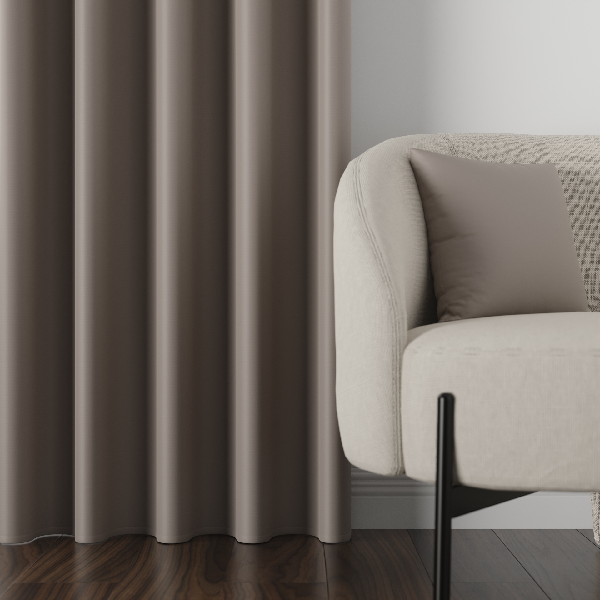 Zasłona z miękkiej tkaniny zaciemniającej. Tkanina jest dość ciężka przez co bardzo fajnie się układa, jej dodatkową zaletą jest to że prawie sie nie gniecie. Bardzo przyjemna w dotyku więc nadaje się też na poszewki i inne dekoracje.