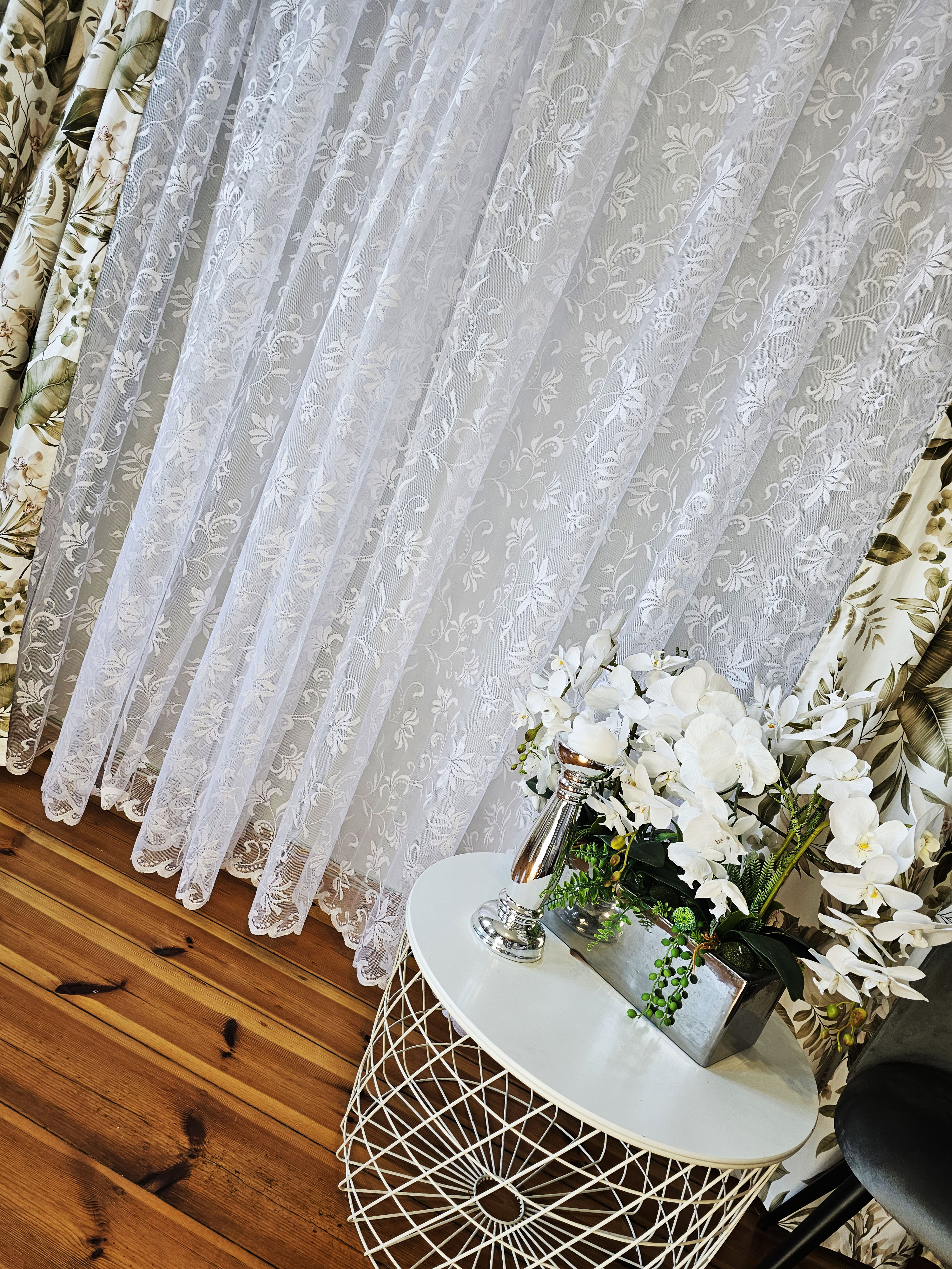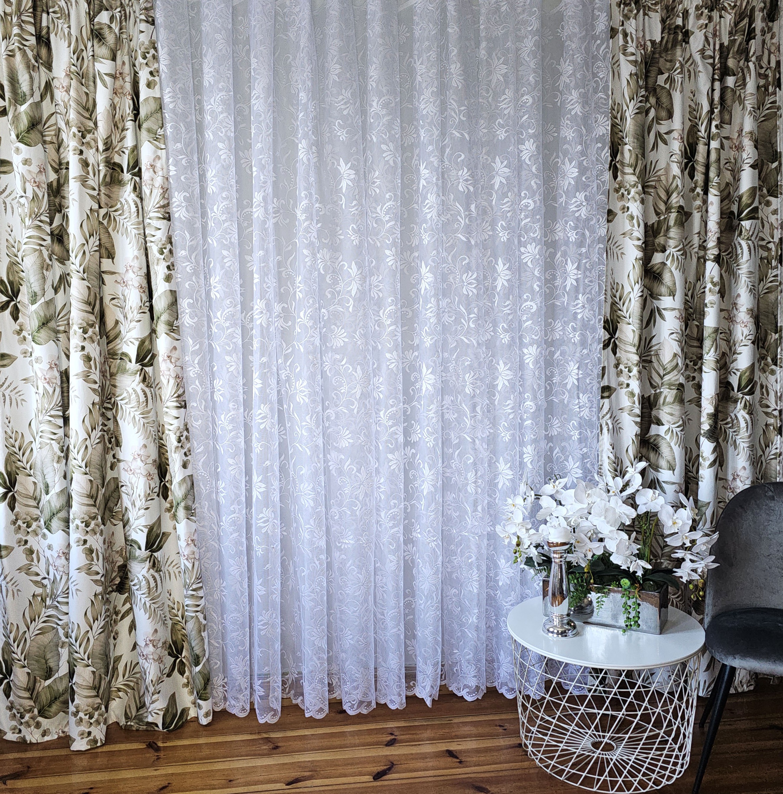 Cena wstępna to cena podana za metr firany bez szycia. Szerokość tkaniny do 250cm.