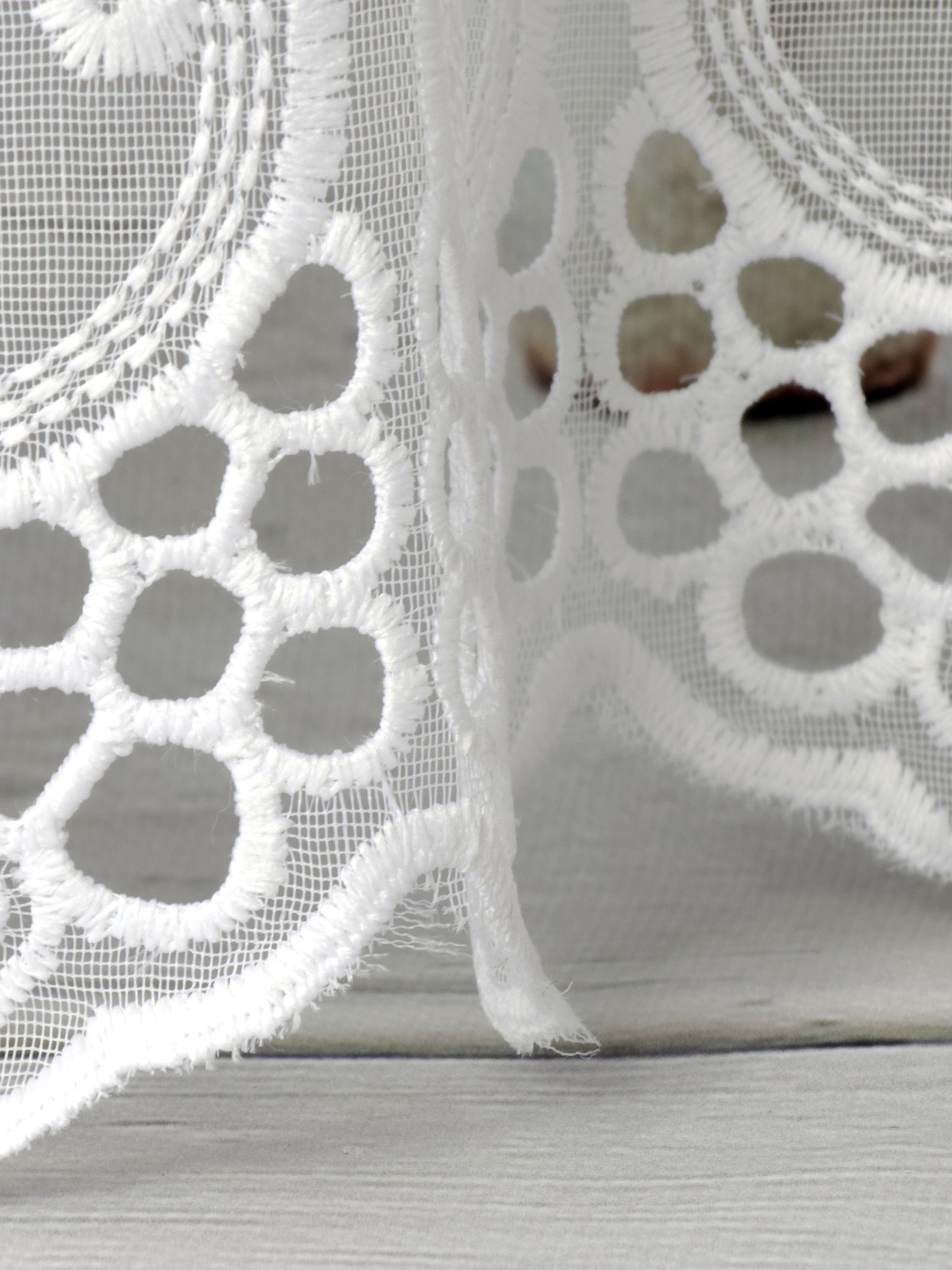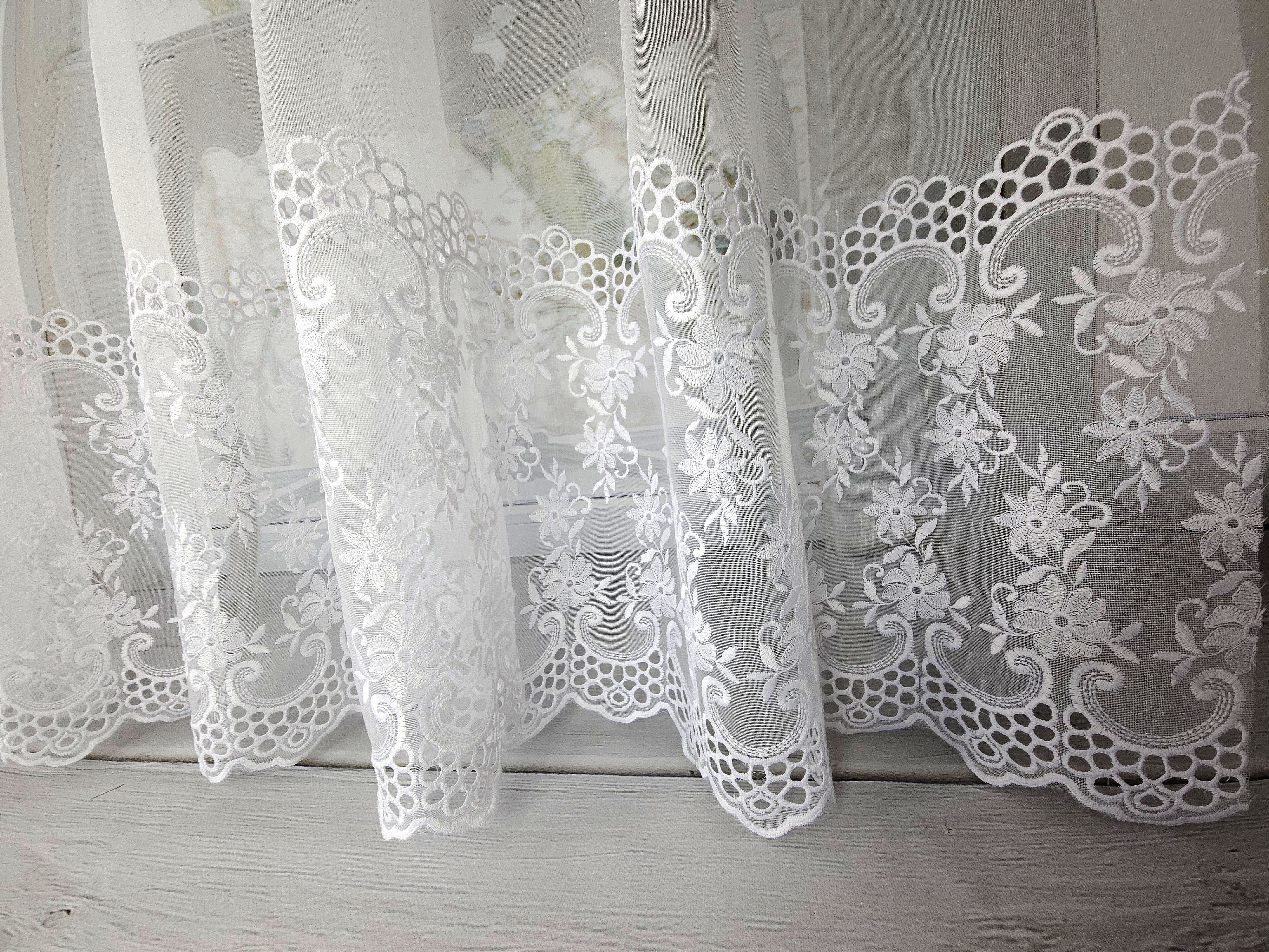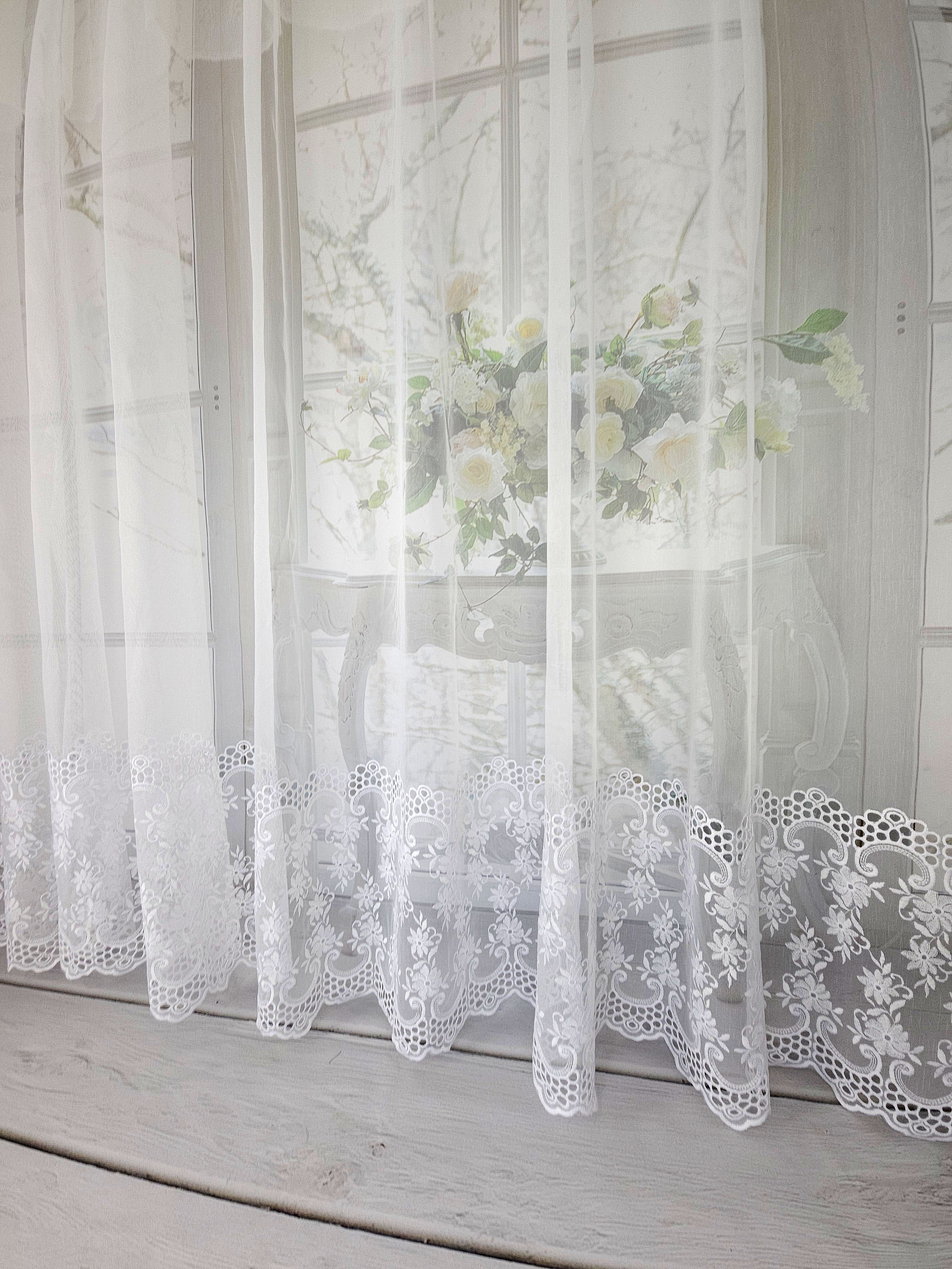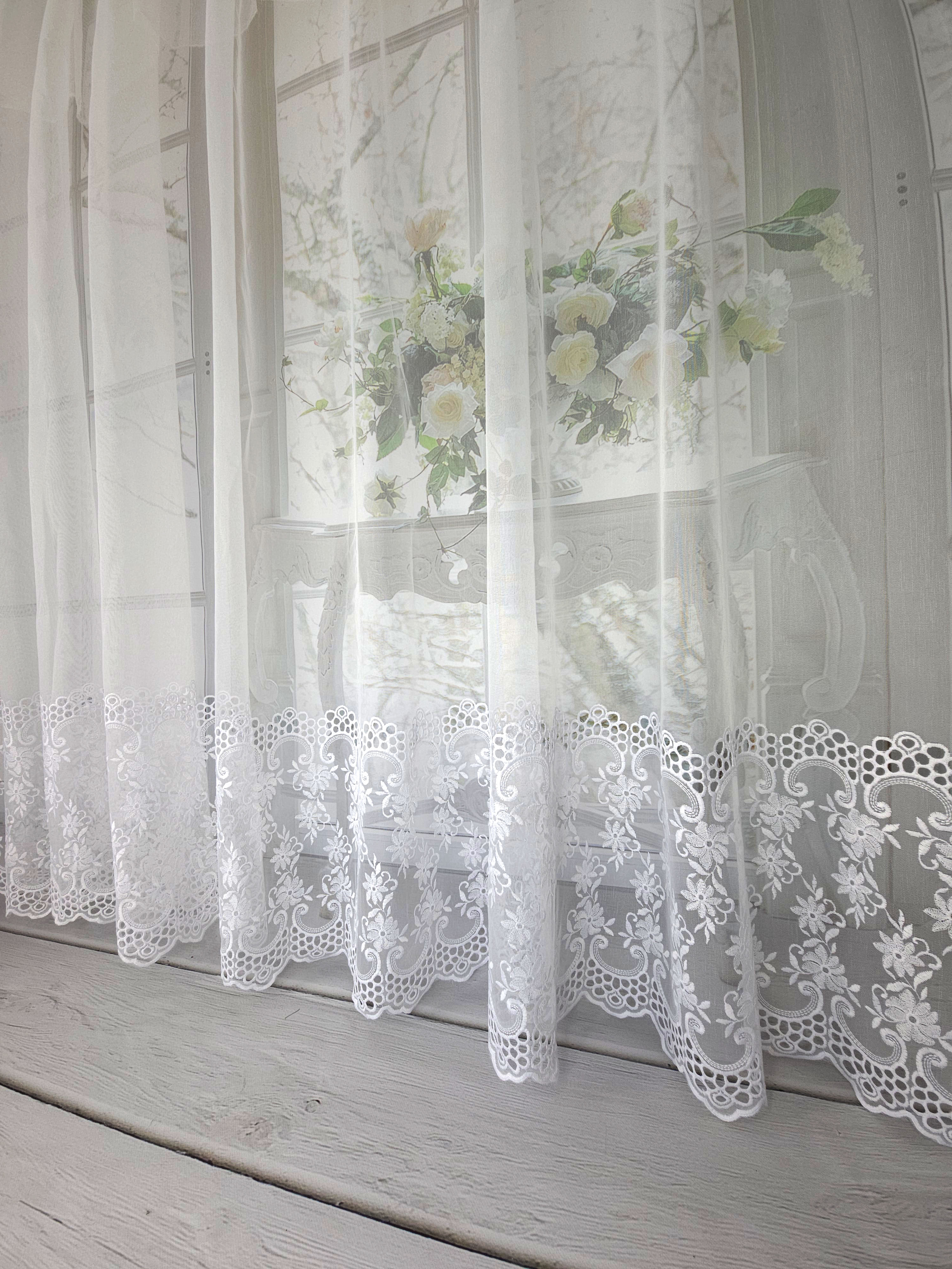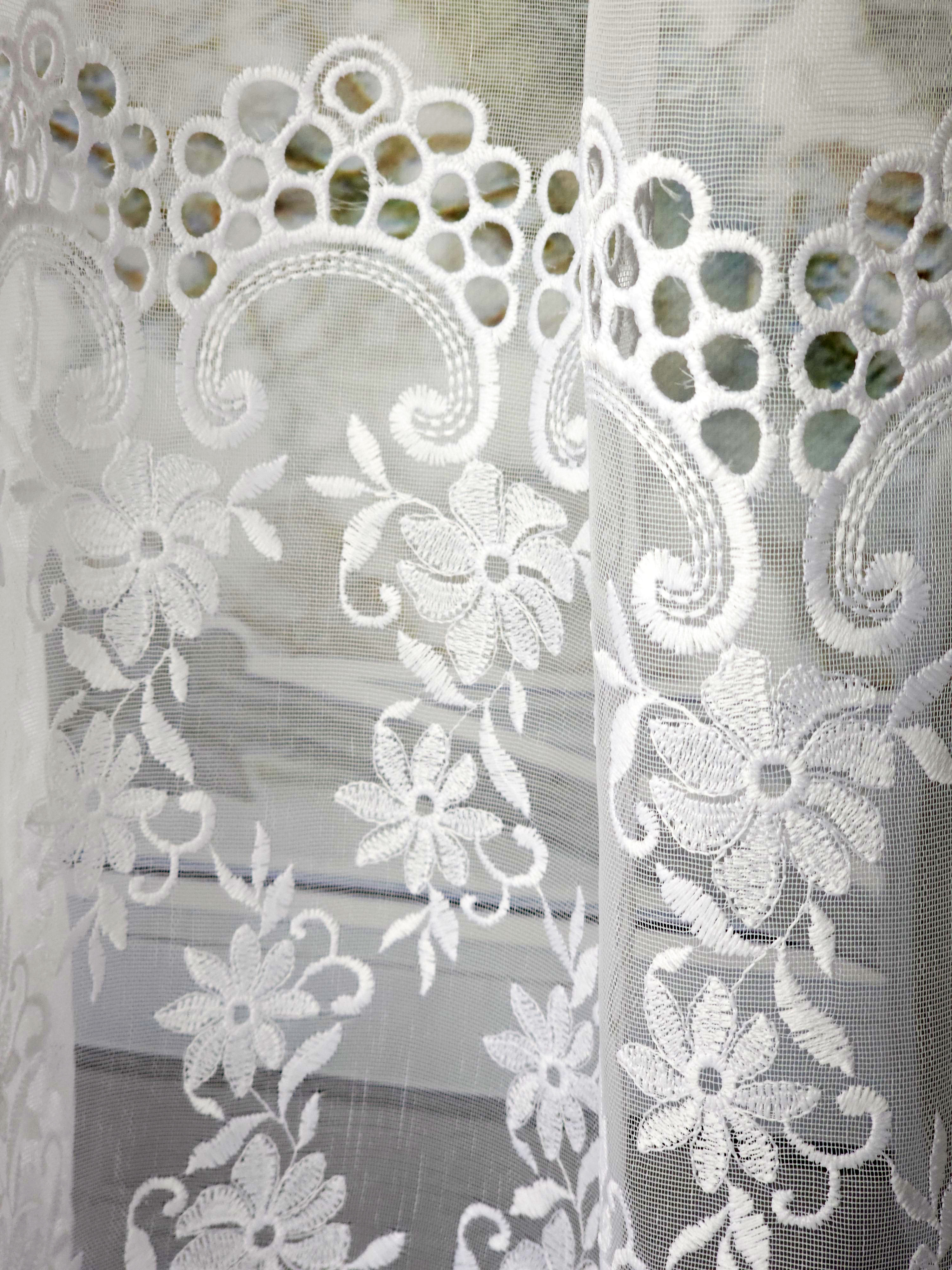 Firana przezroczysta z haftem na dole .