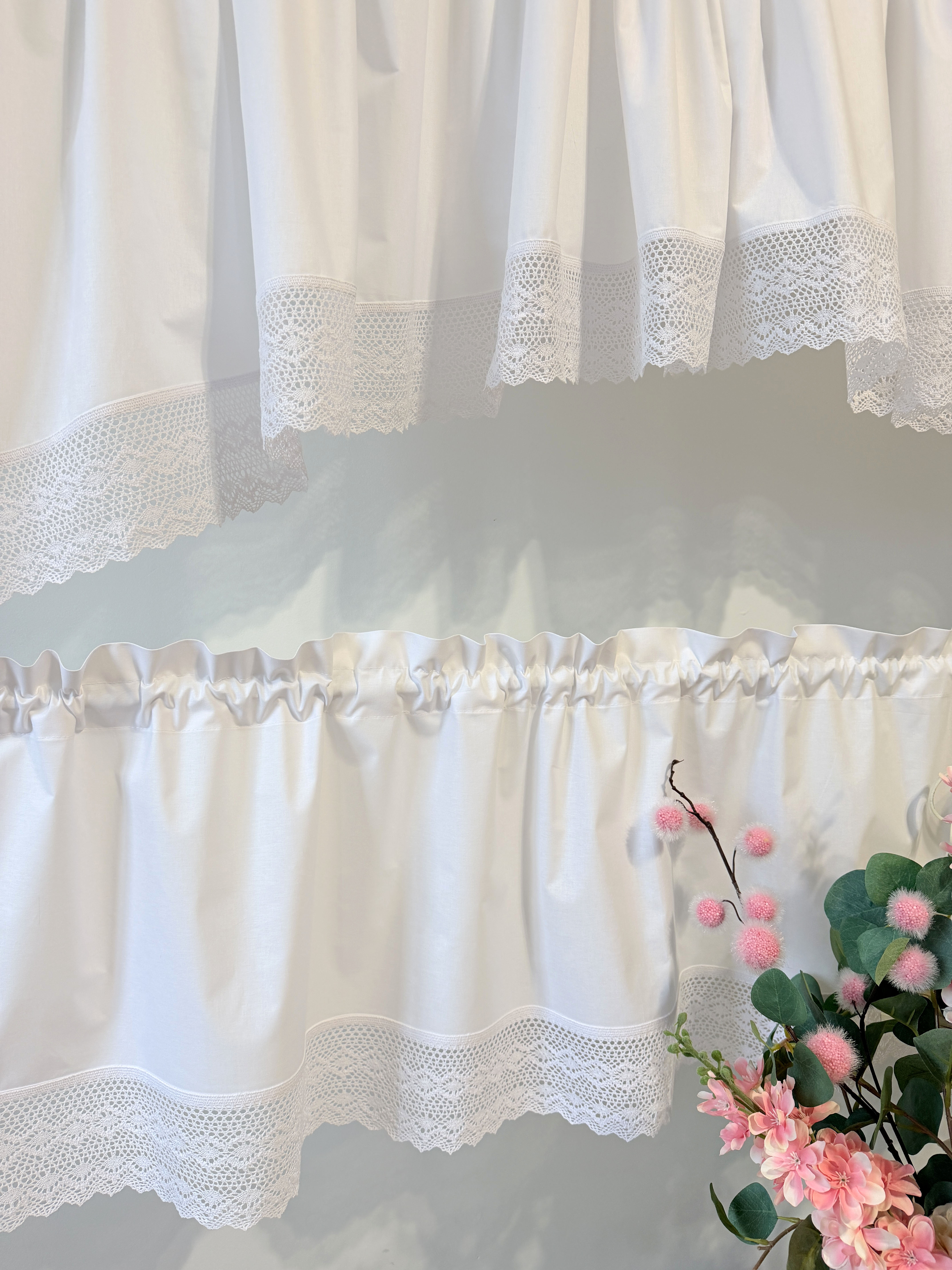 Szerokość: ustal szerokość, zmierz karnisz - okno i dodaj około 100%.