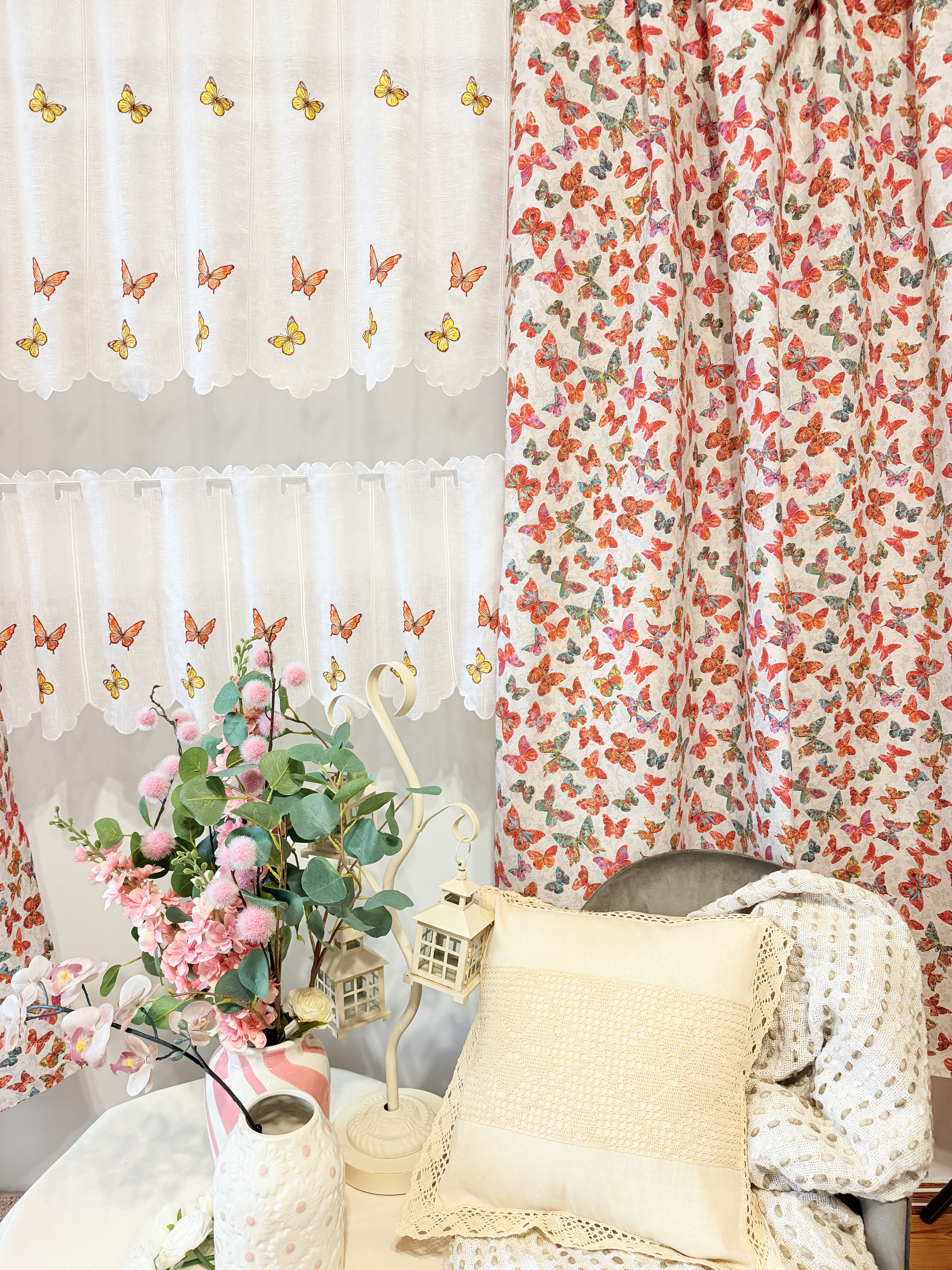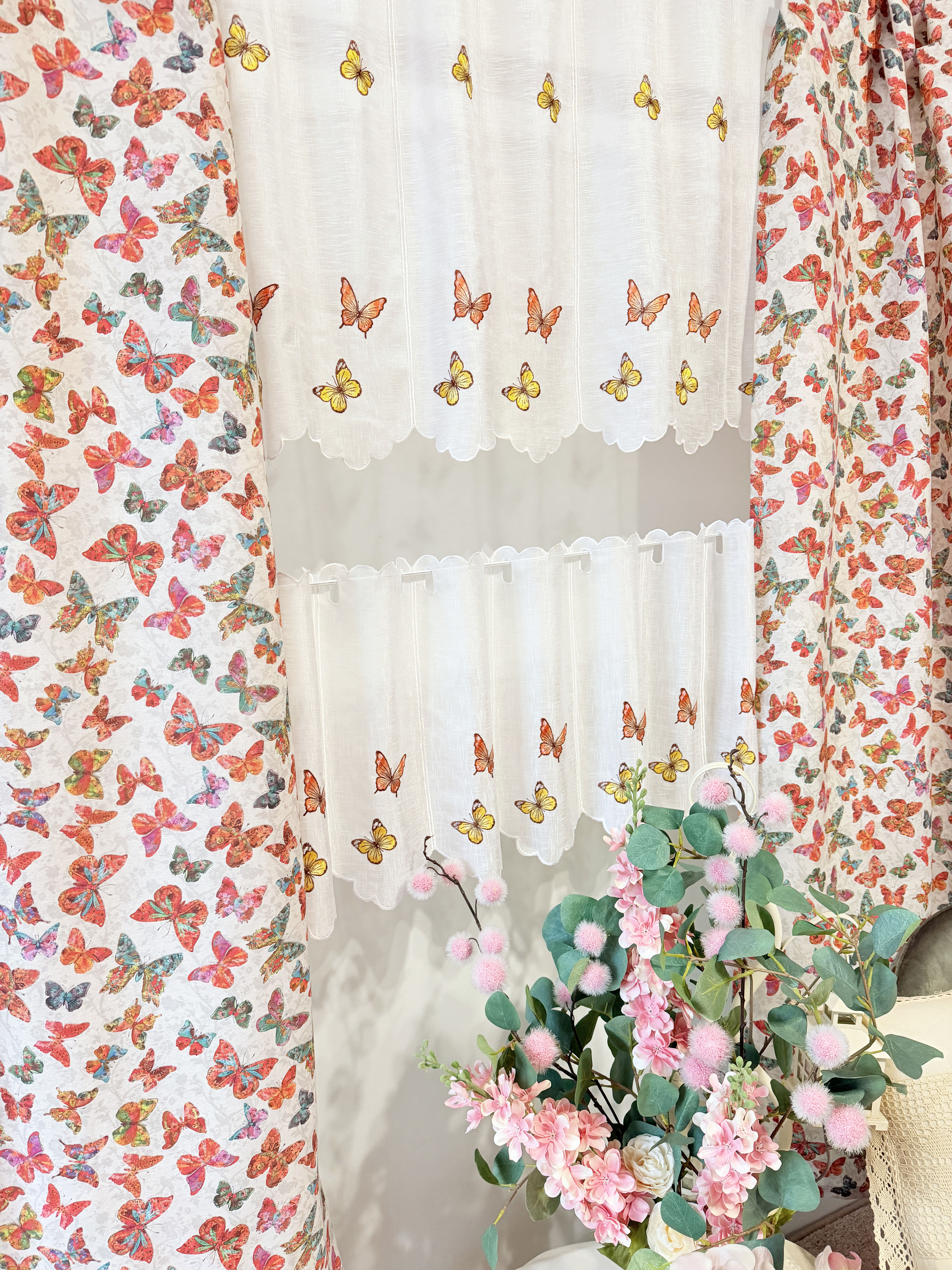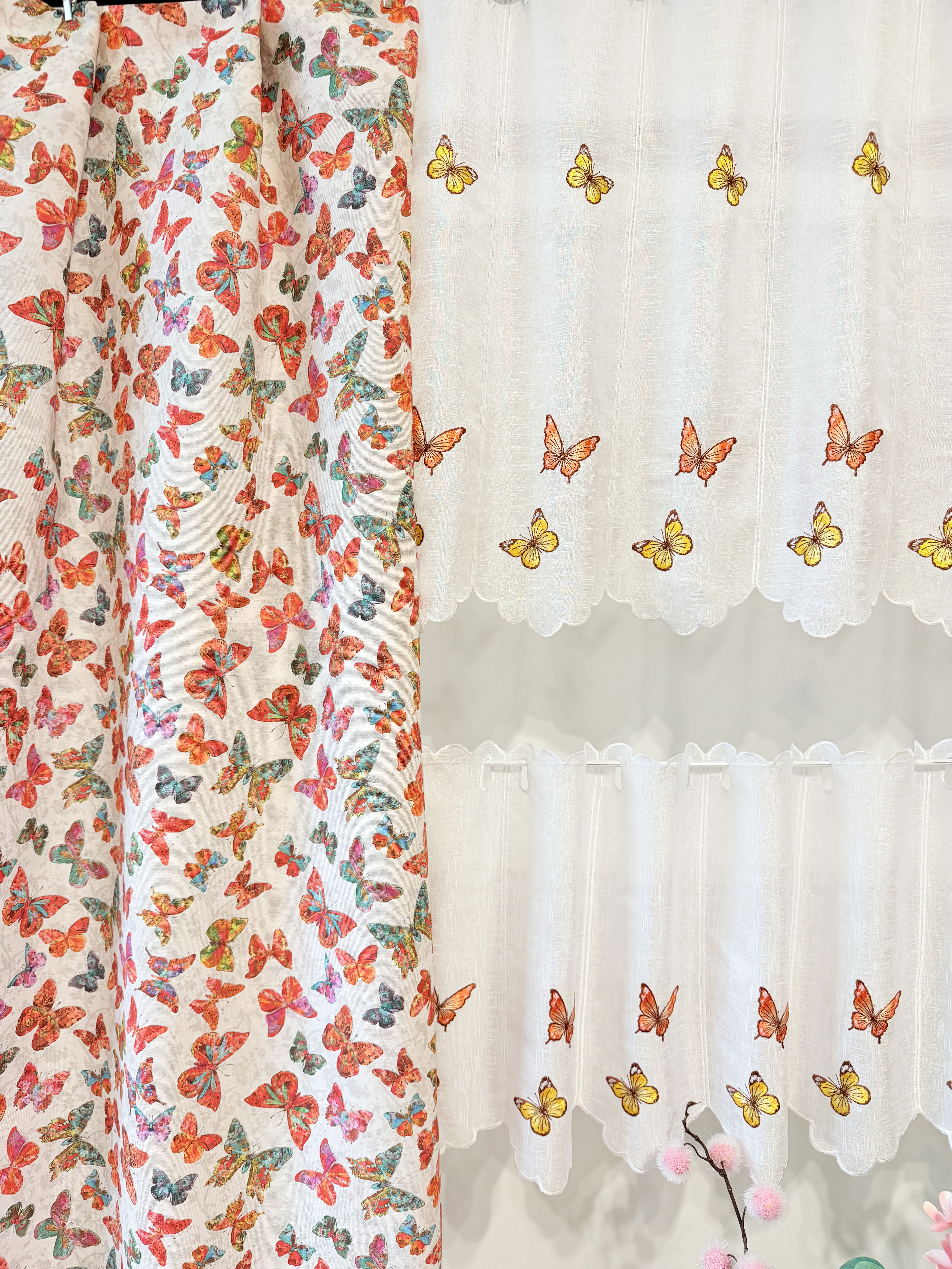 W cenie dwie sztuki zasłonek plus zazdrostka. Jest możliwość zakupienia do kompletu obrusów, poszewek.