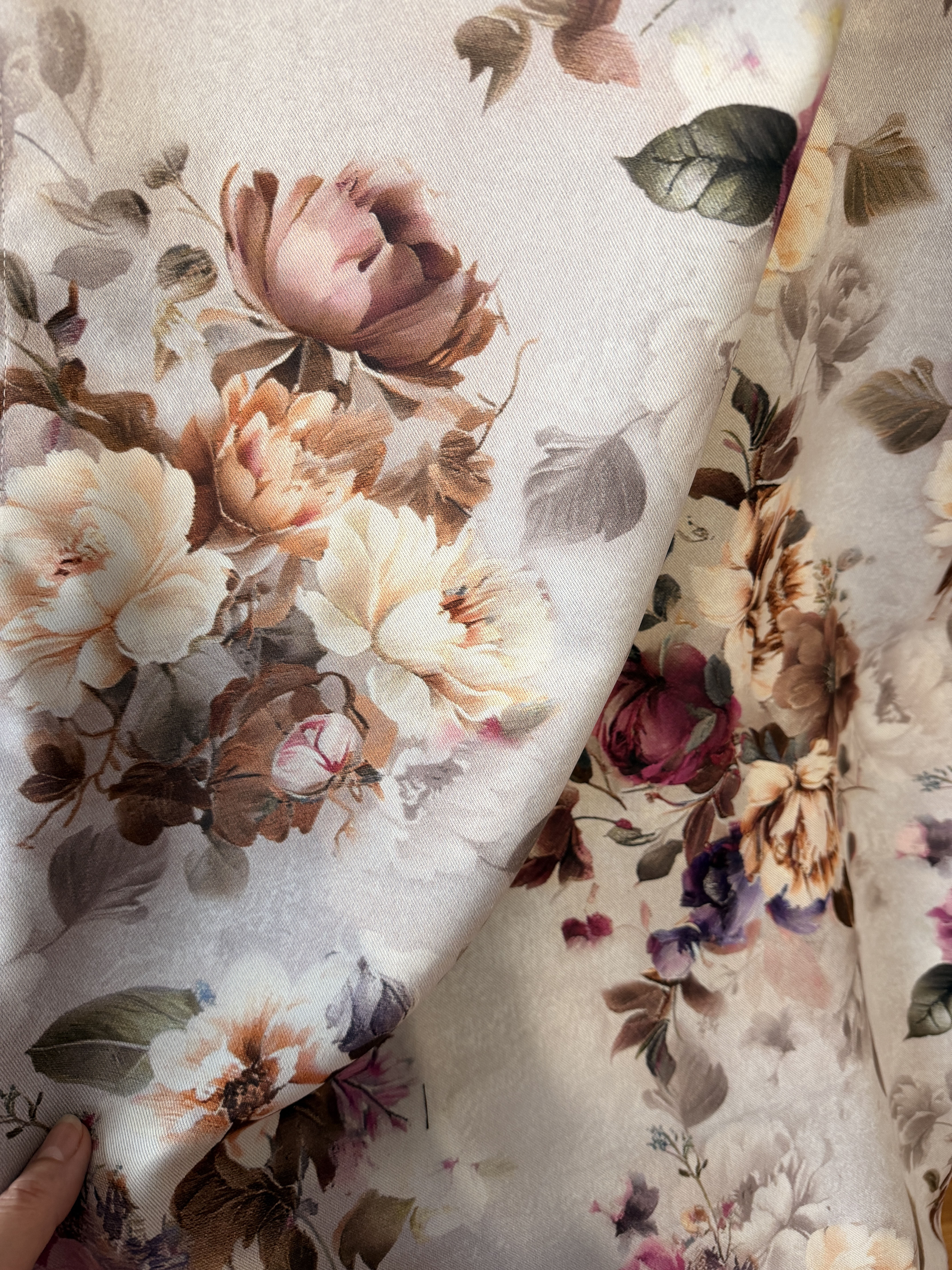 Prasowanie: Tkaninę prasujemy po lewej stronie materiału z podłożonym ręcznikiem, lekko rozgrzanym żelazkiem z użyciem pary.