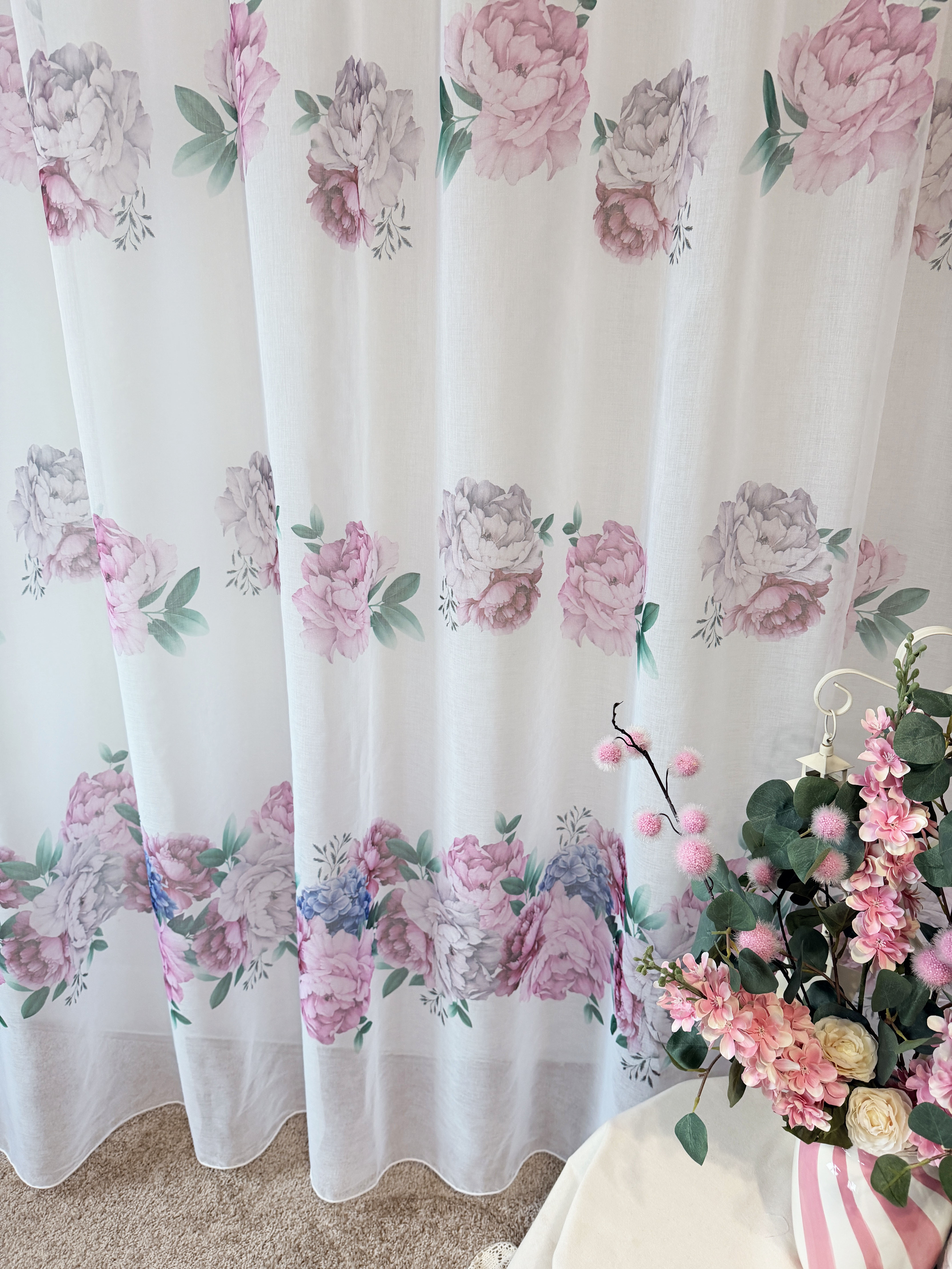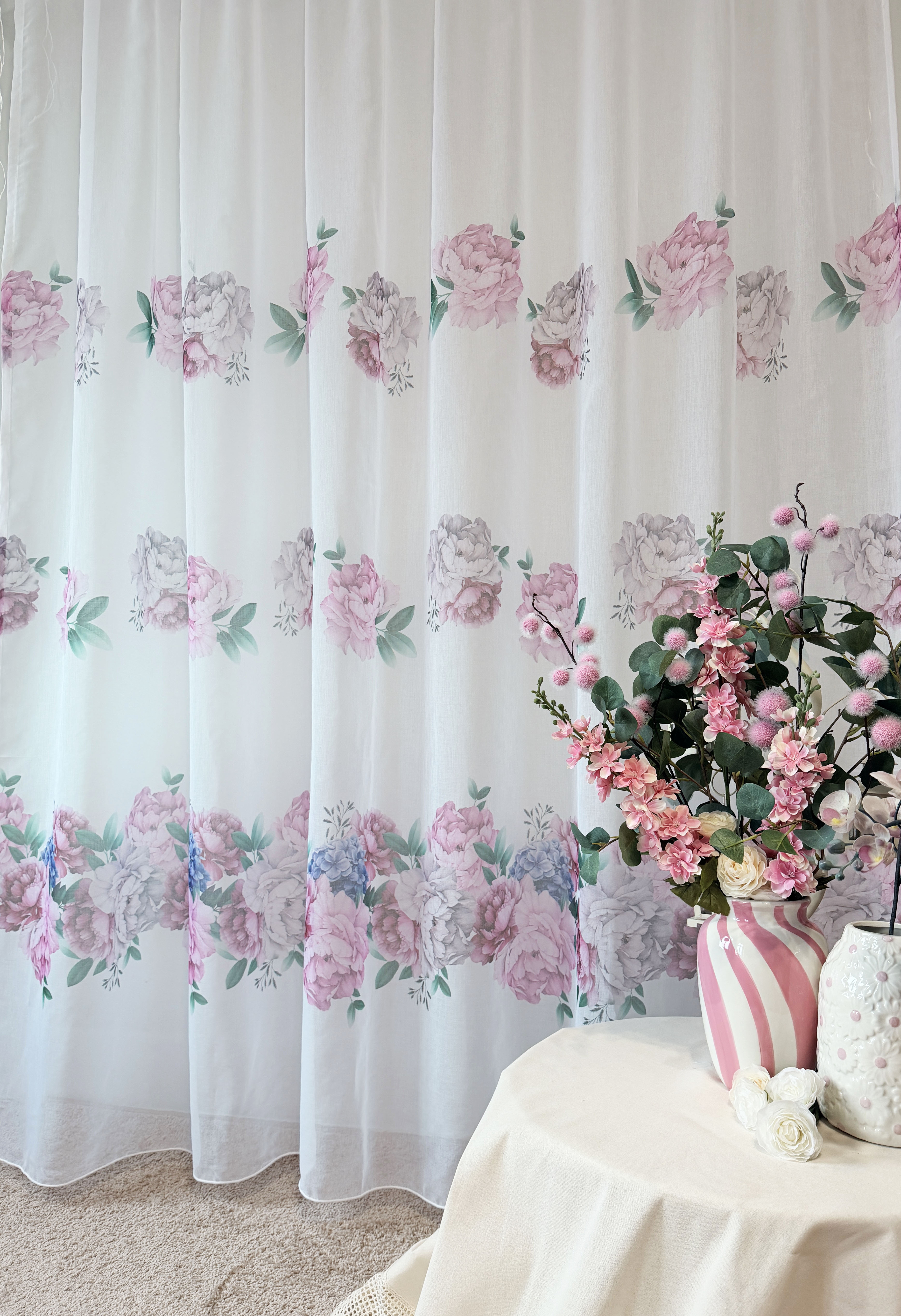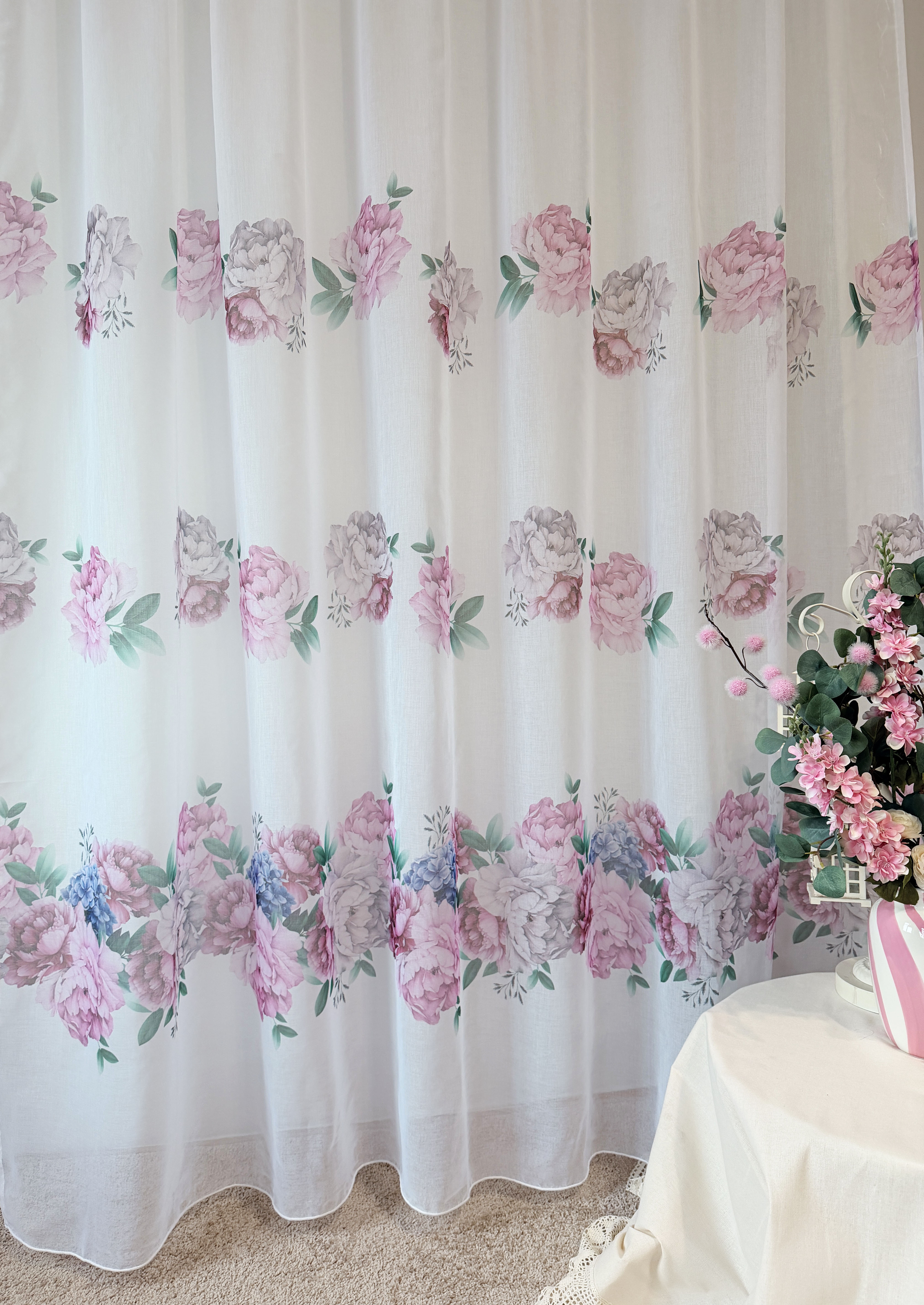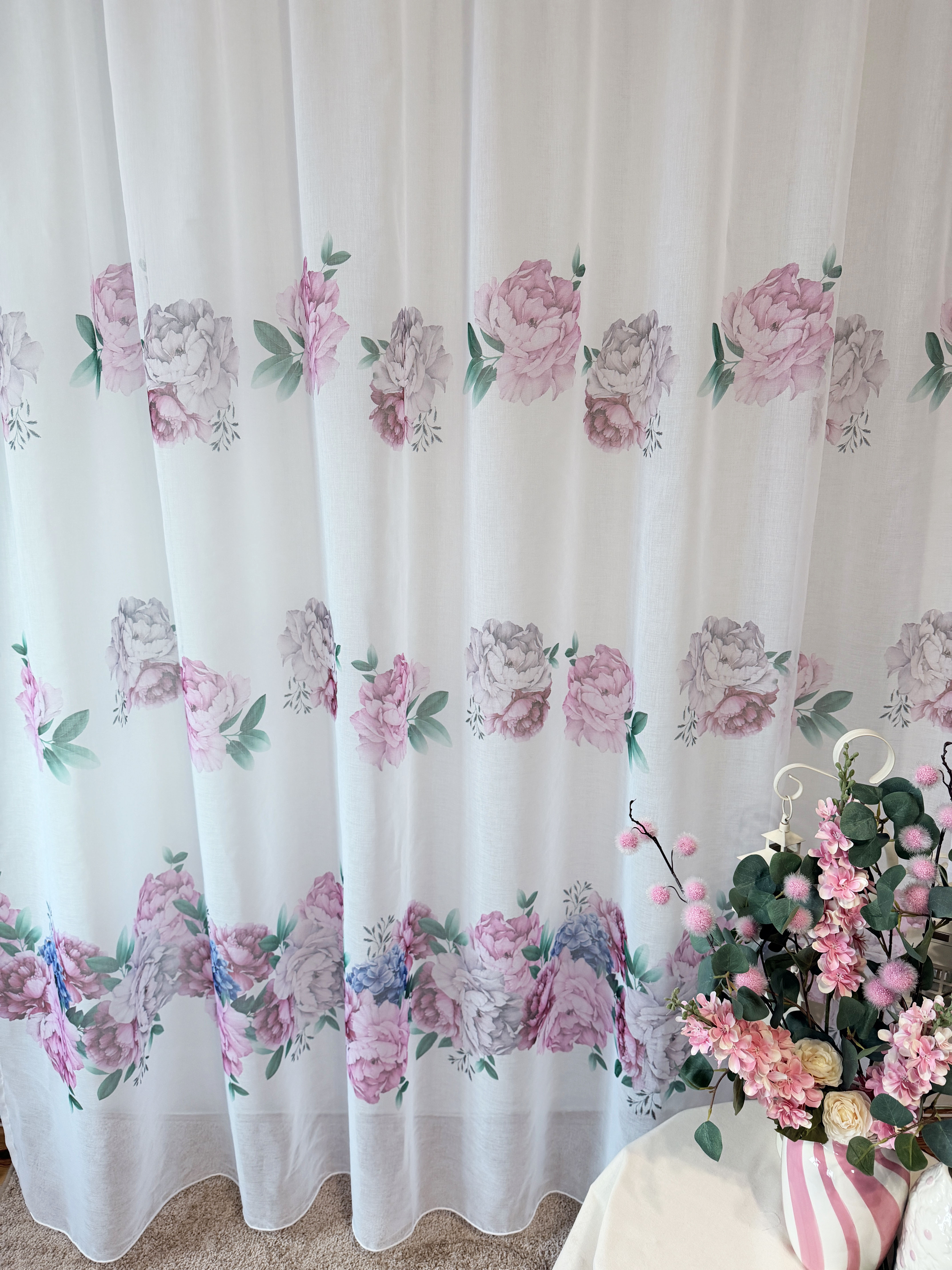 Firana przezroczysta etamina z kolorowym wzorem na dole.